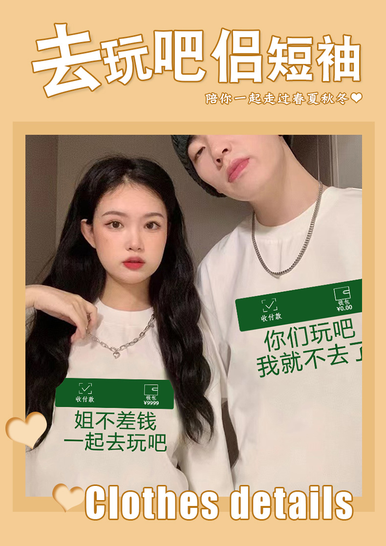 不一樣痞帥情侶裝夏季裝2023新款潮troora一起去玩吧超火短袖