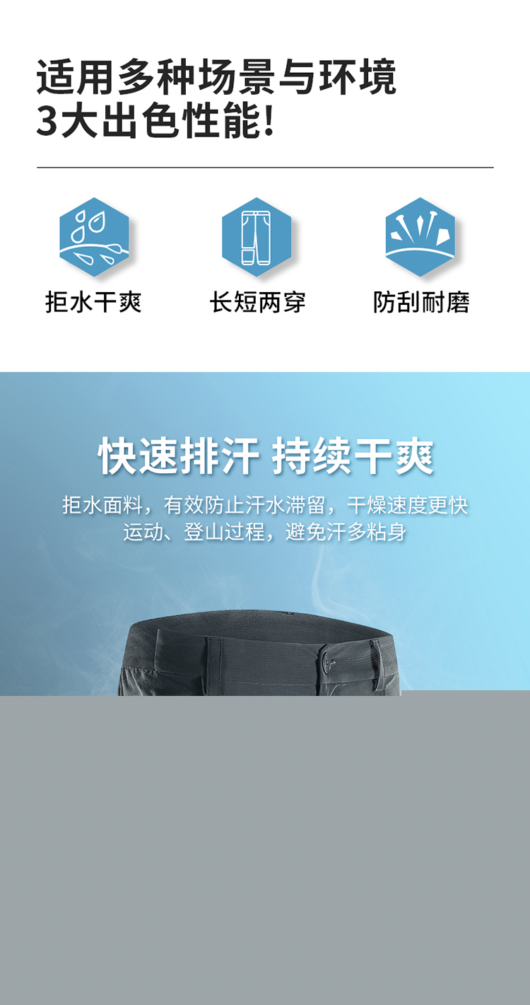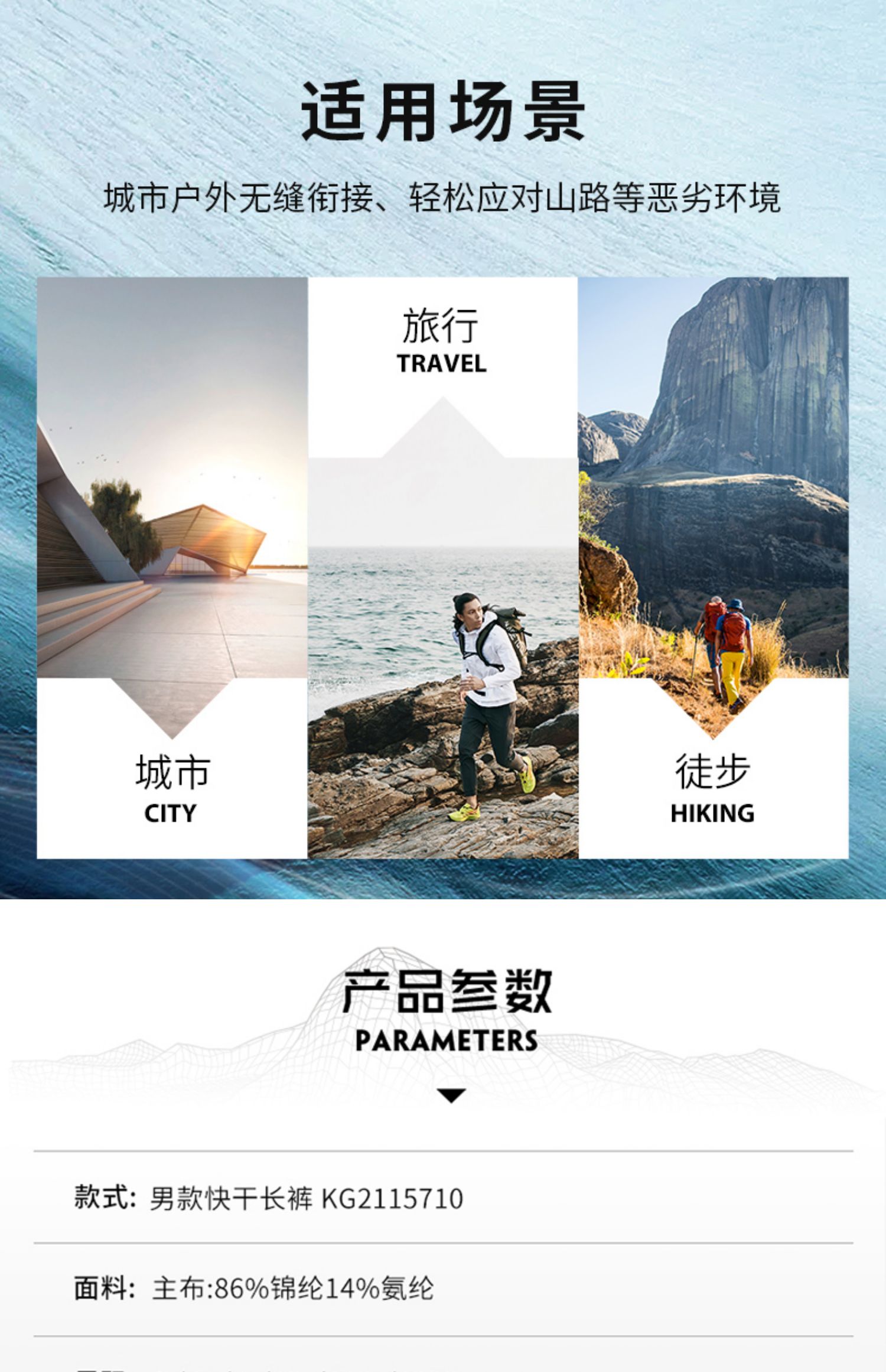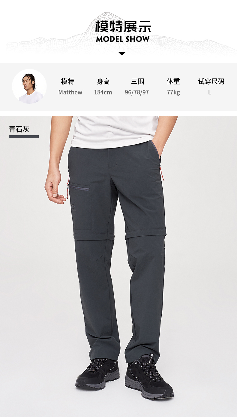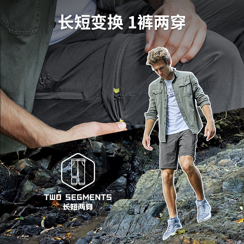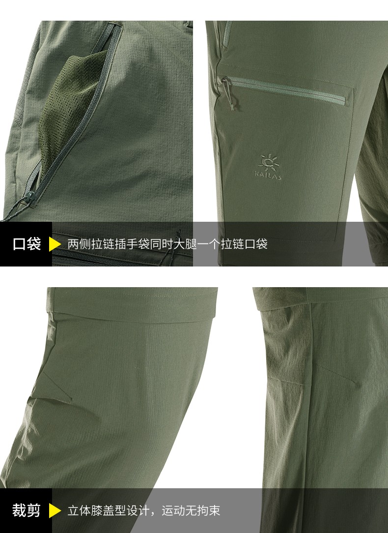 KAILAS凱樂石戶外運動男款徒步穿越快乾兩節褲透氣耐磨速乾長褲