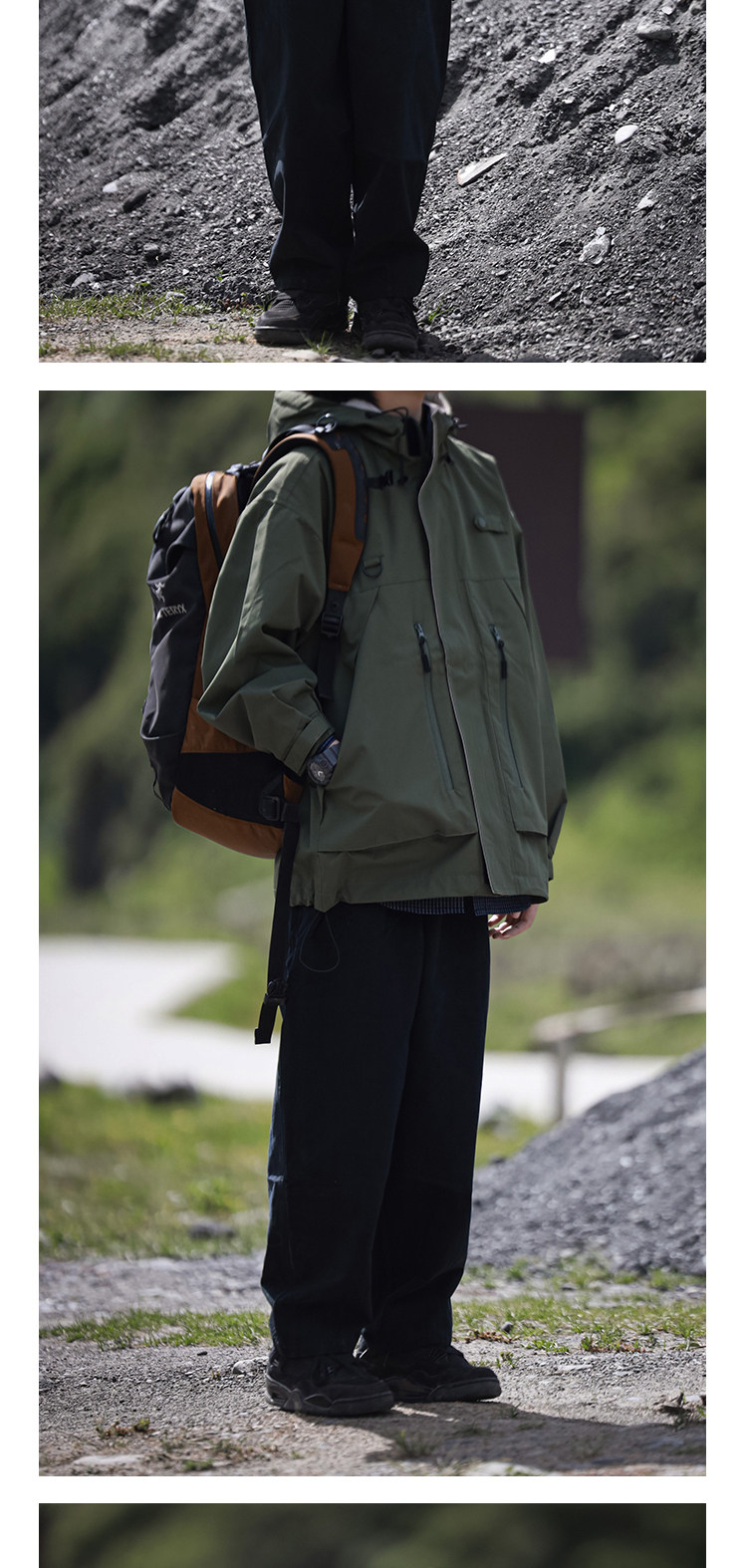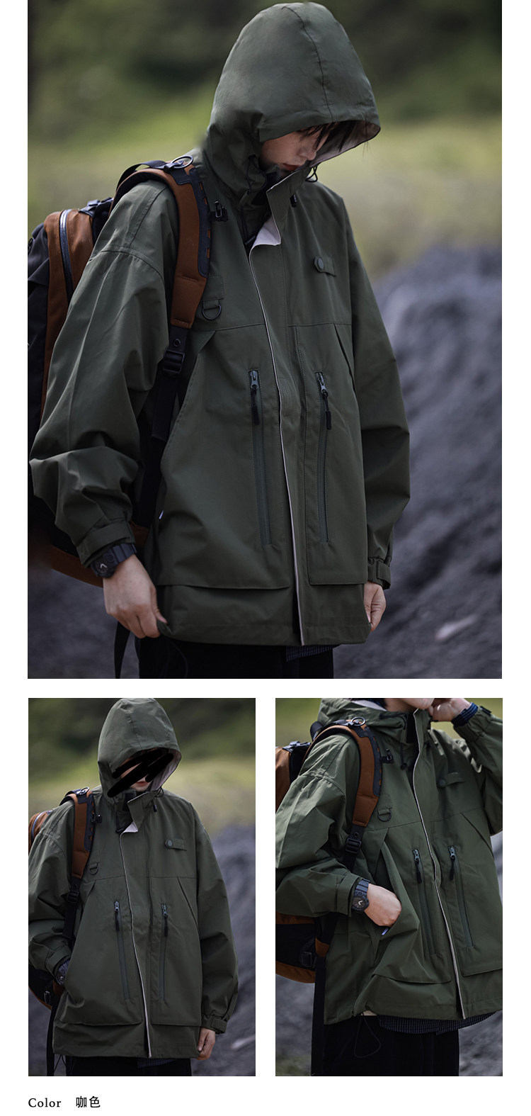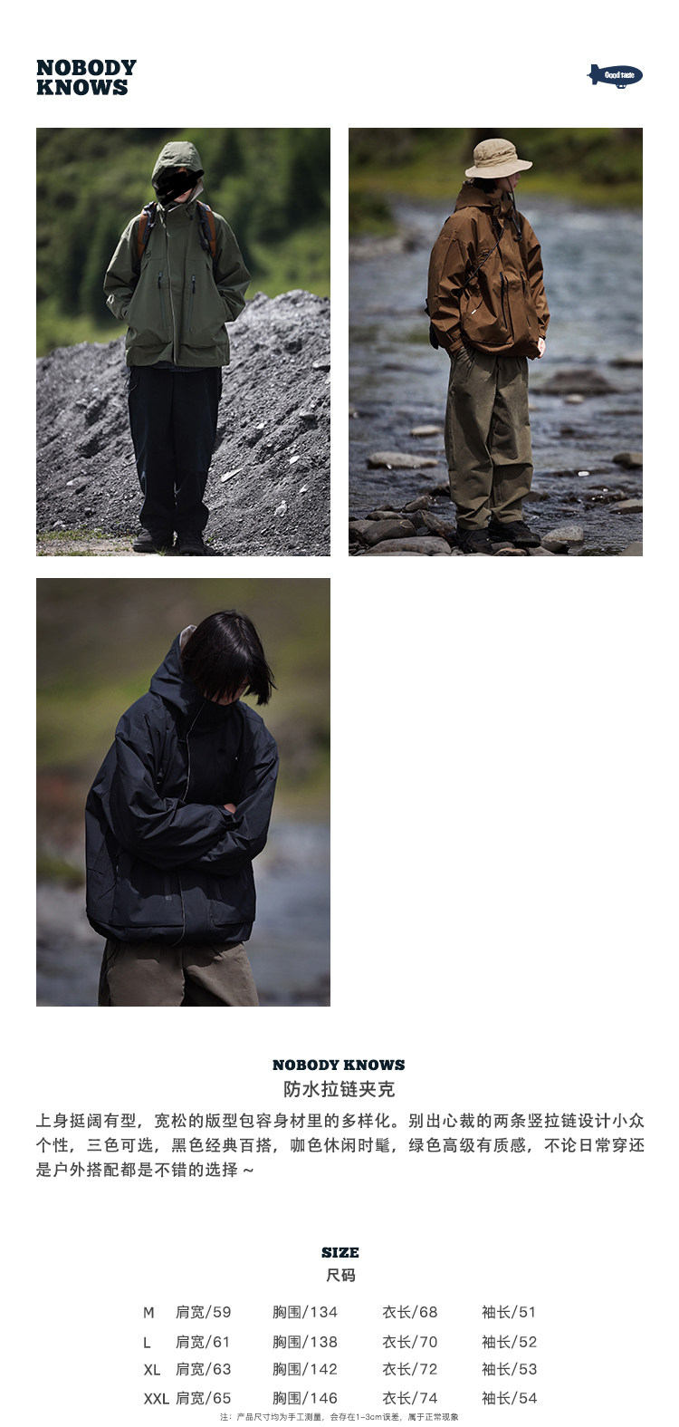 Nobodyknows 山系戶外多口袋基礎多色百搭工裝連帽夾克衝鋒衣外套