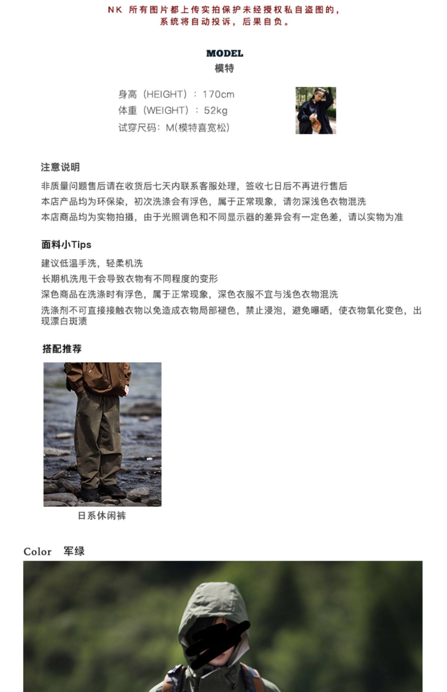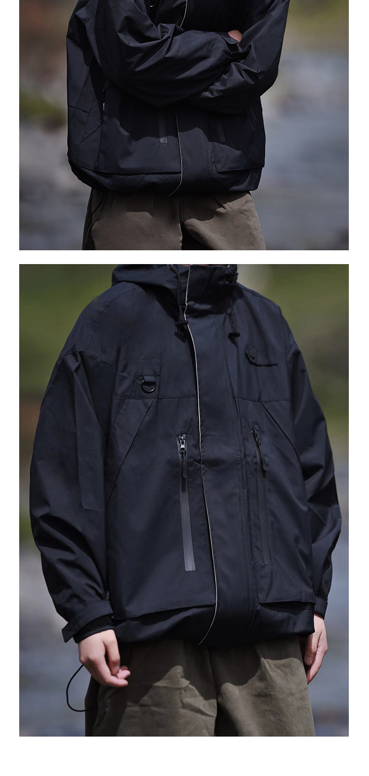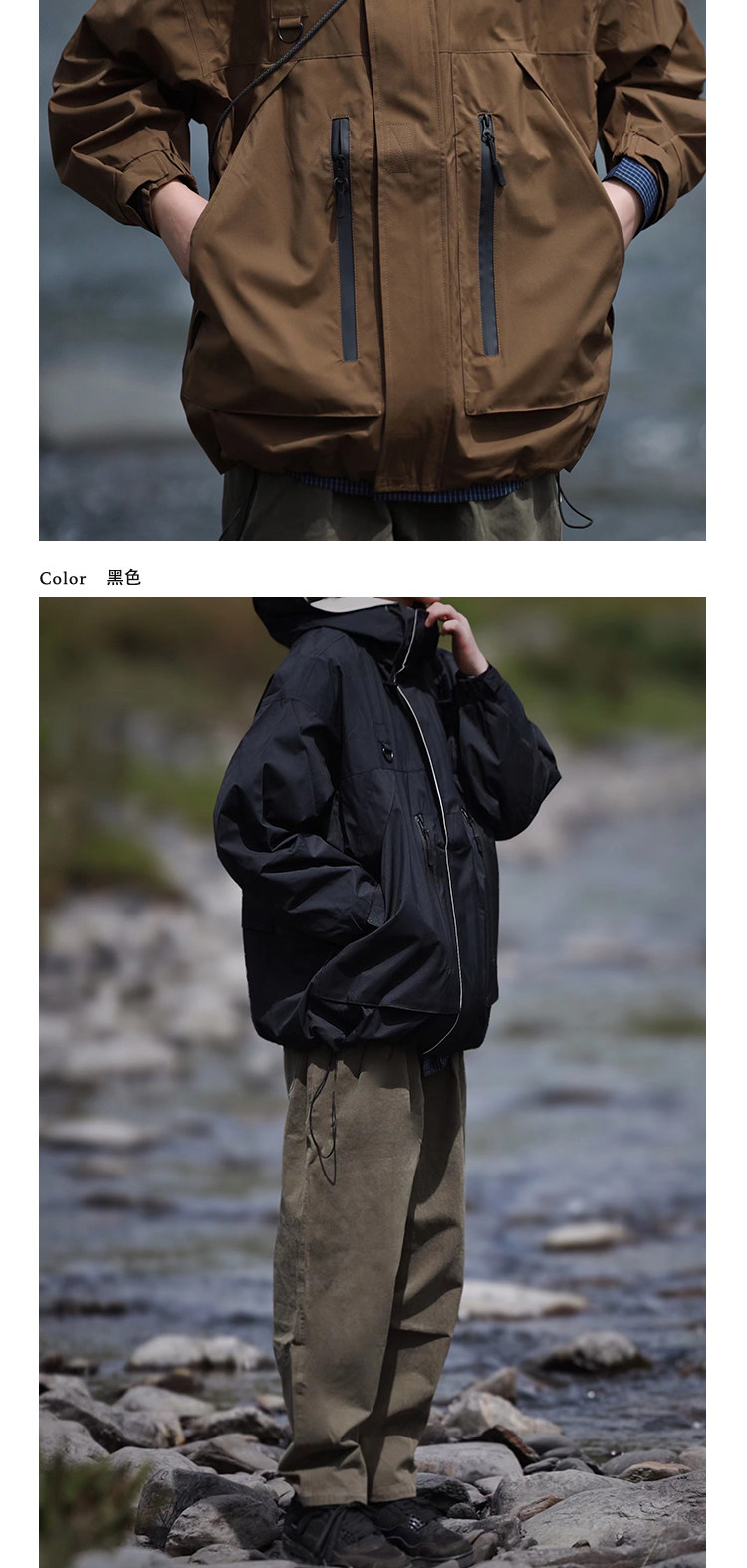 Nobodyknows 山系戶外多口袋基礎多色百搭工裝連帽夾克衝鋒衣外套