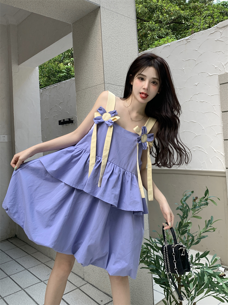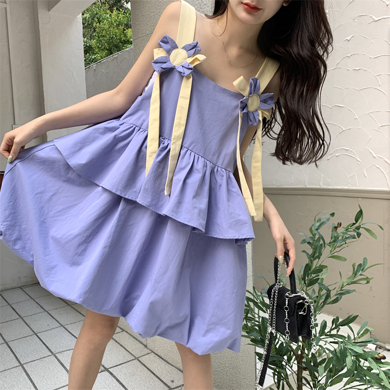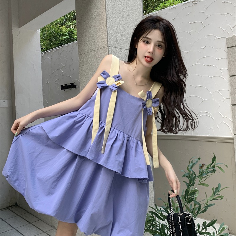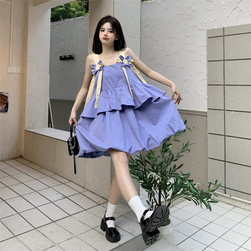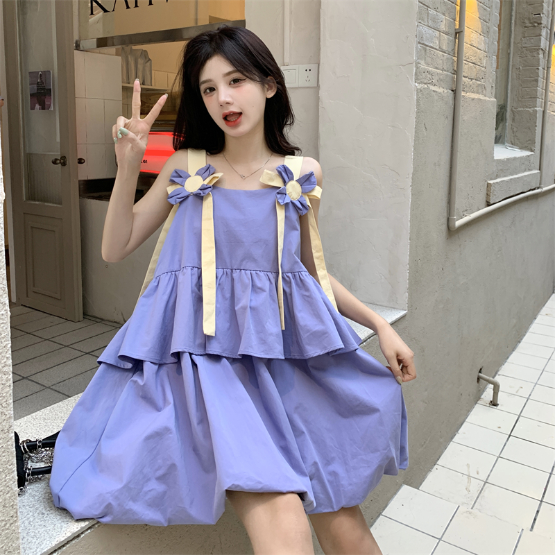 甜辣妹蓬蓬吊帶洋裝女夏季法式溫柔風初戀奶甜裙子荷葉邊蛋糕裙