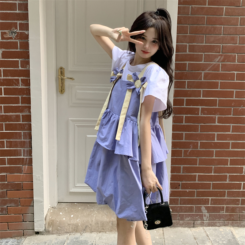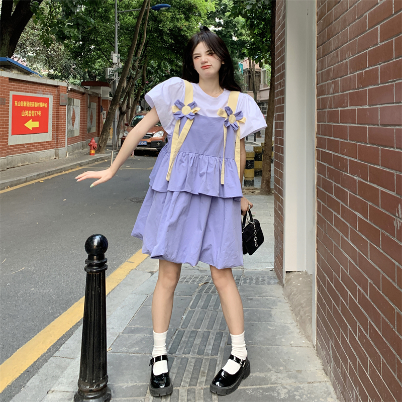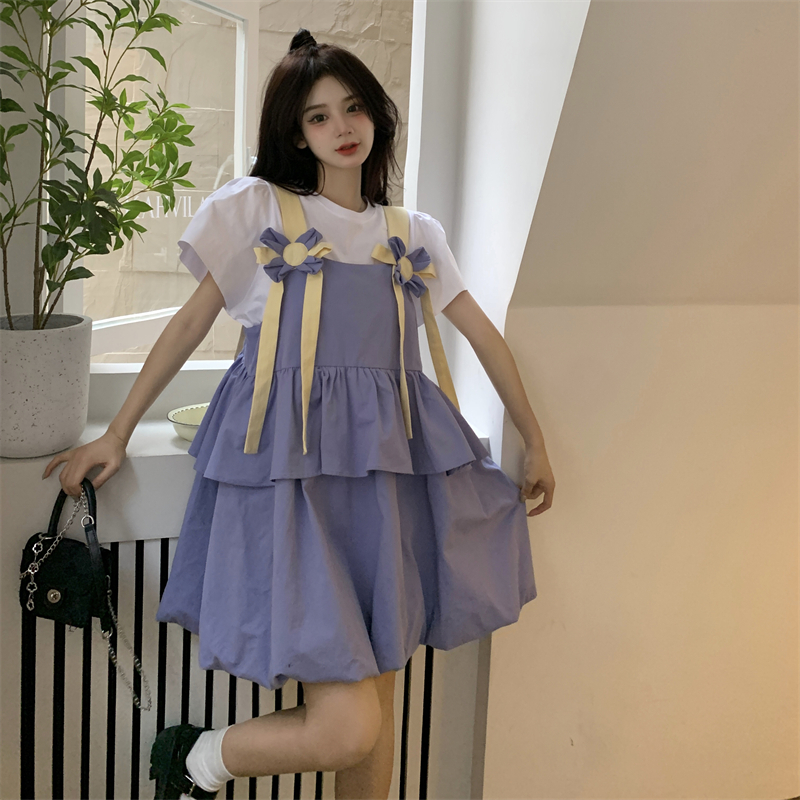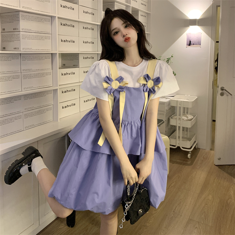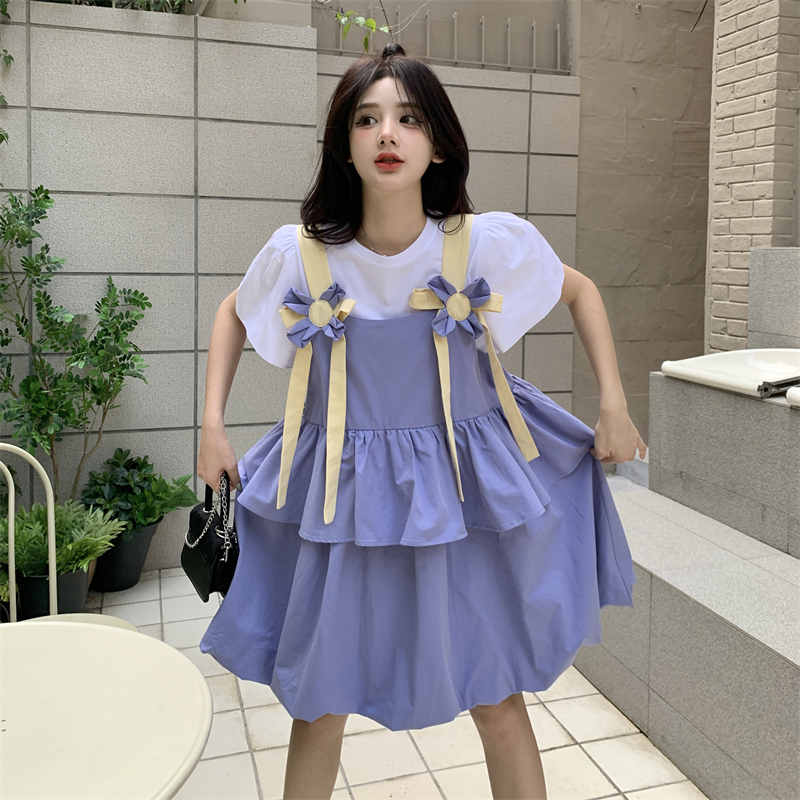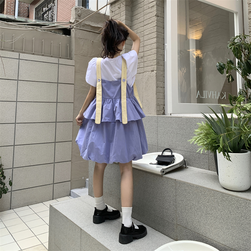 甜辣妹蓬蓬吊帶洋裝女夏季法式溫柔風初戀奶甜裙子荷葉邊蛋糕裙