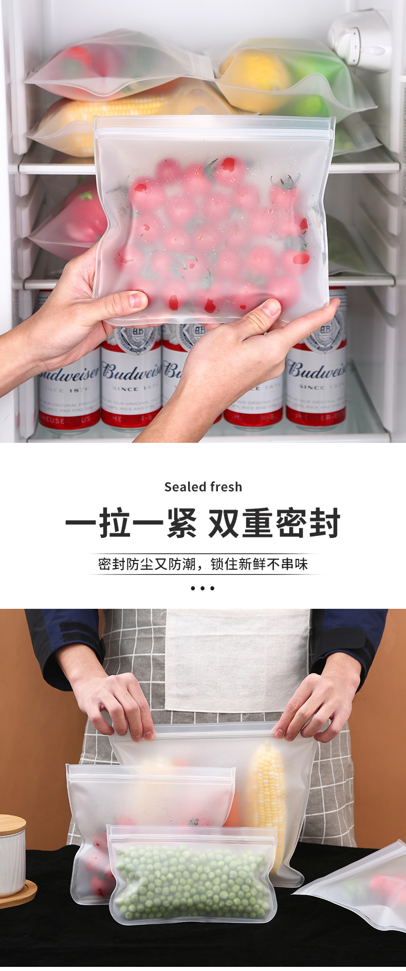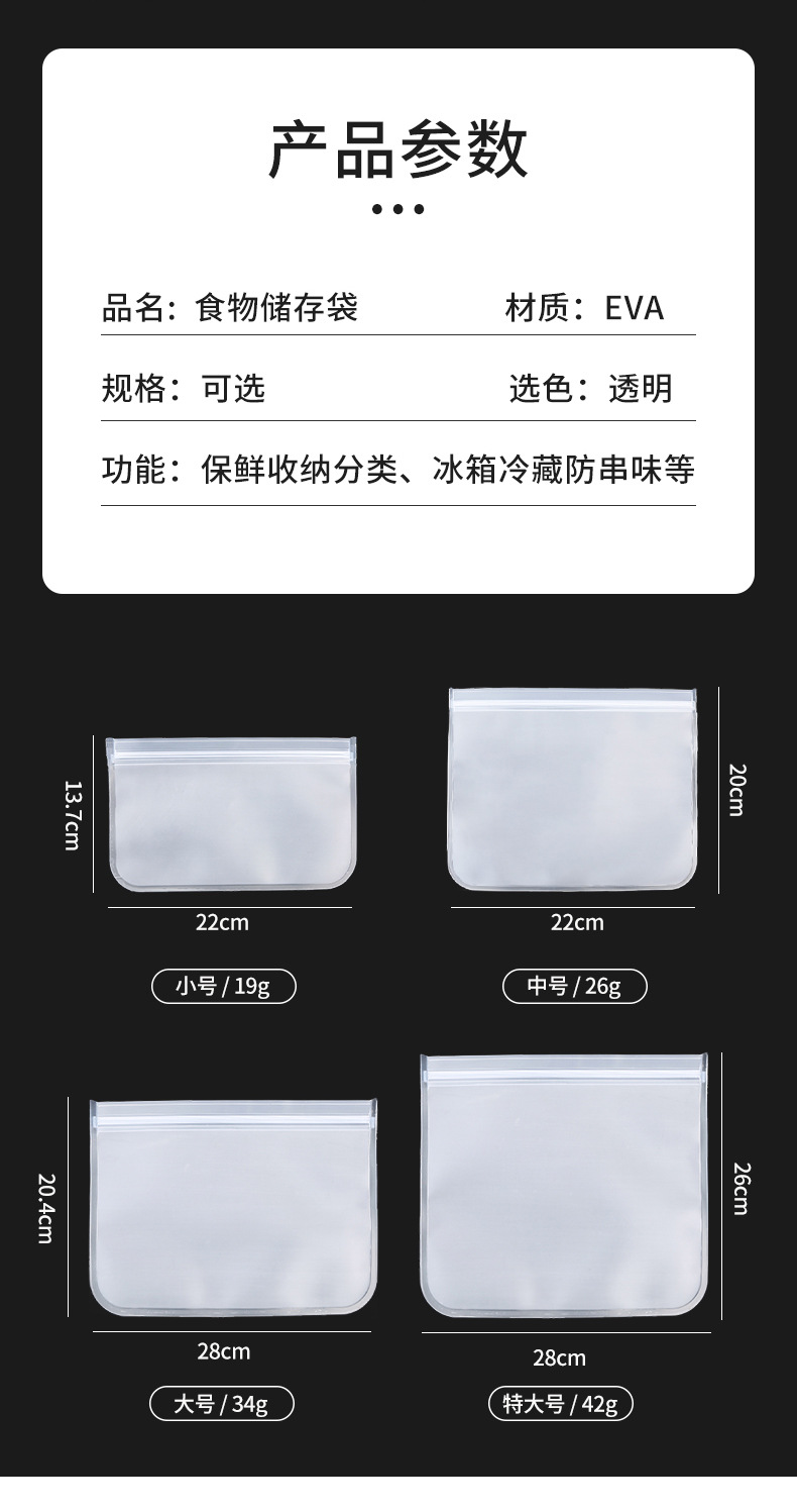 EVA食品保鲜袋冰箱食品储存自封袋水果蔬菜食物密封袋可重复使用