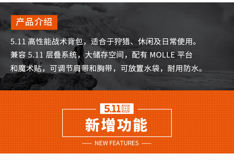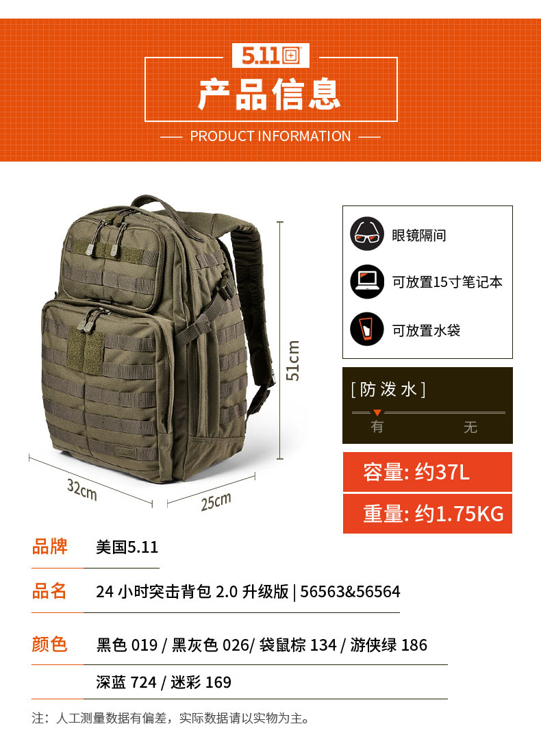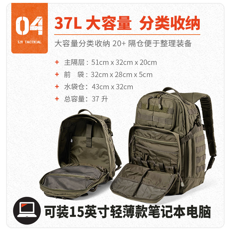 美國5.11戰術揹包rush24小時突擊包511突擊防潑水雙肩包37L56563