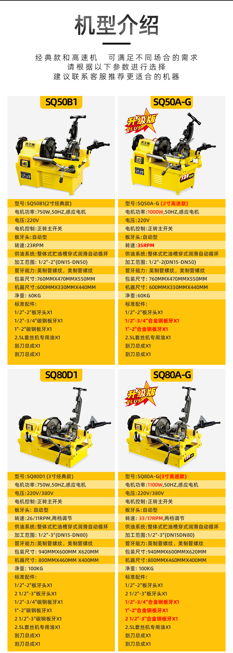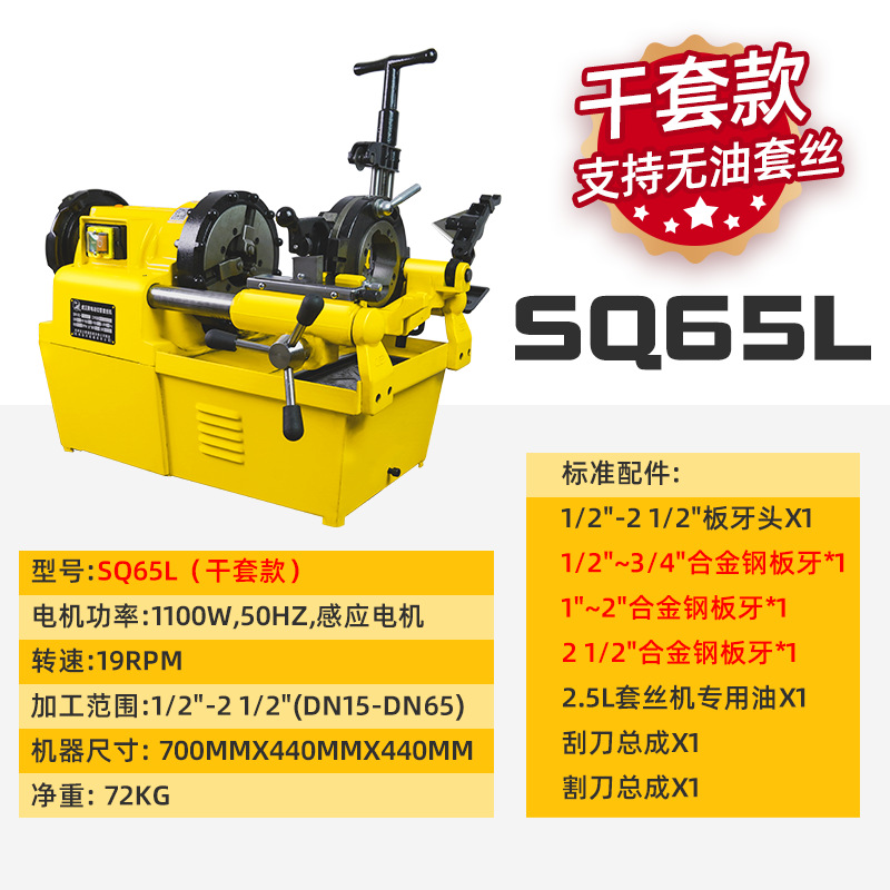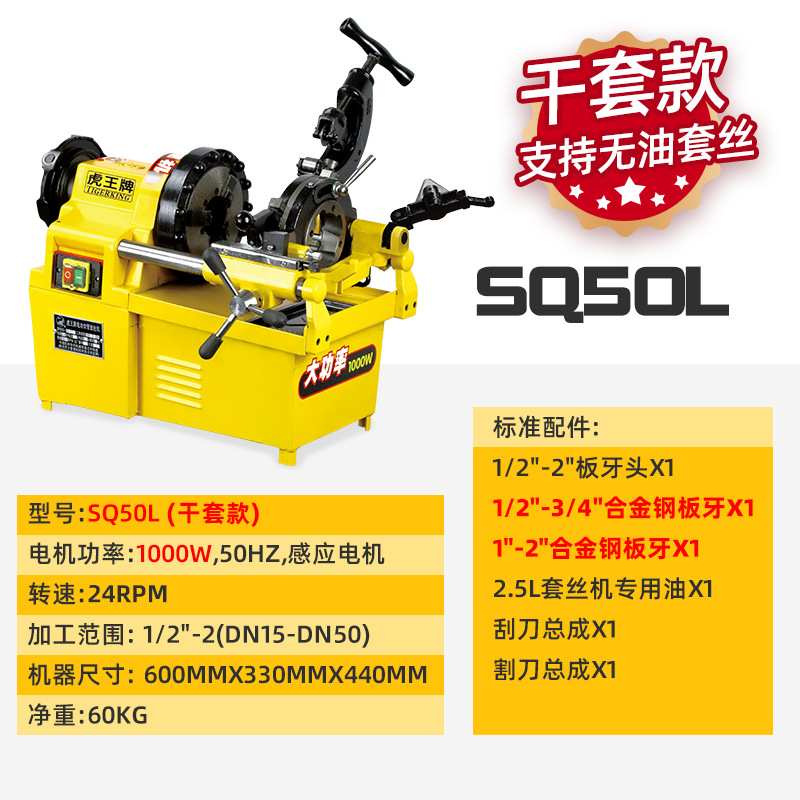 虎王干套无油套丝消防水管镀锌钢管大功率电动套丝机SQ65L SQ50L