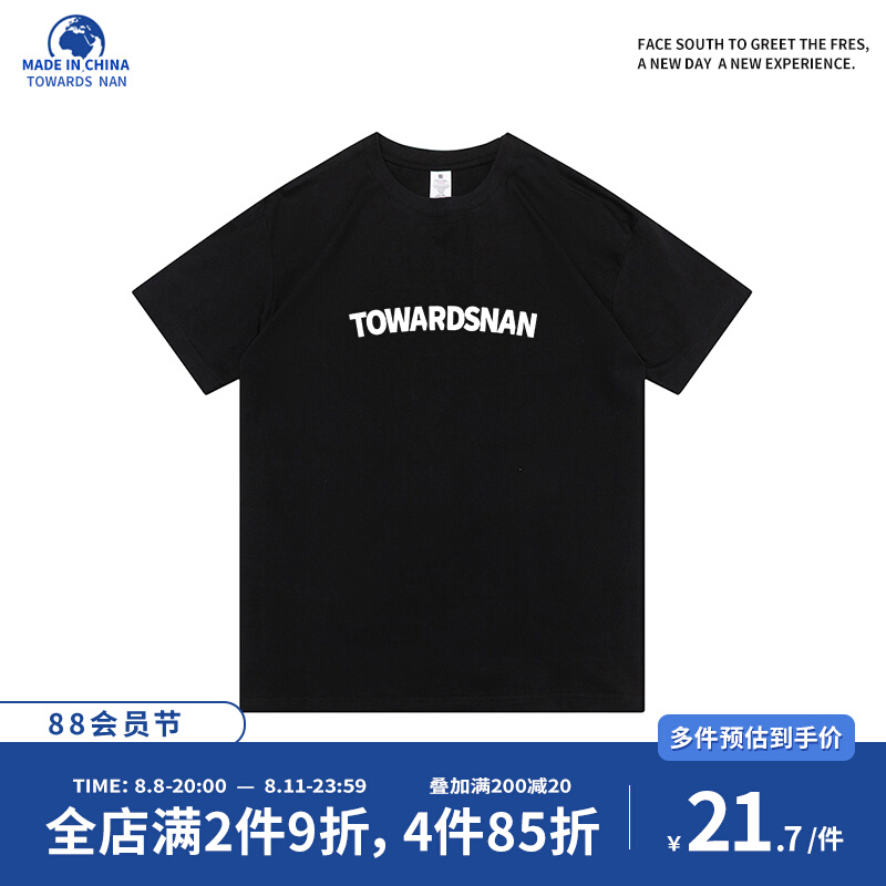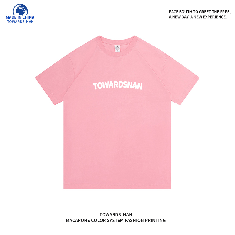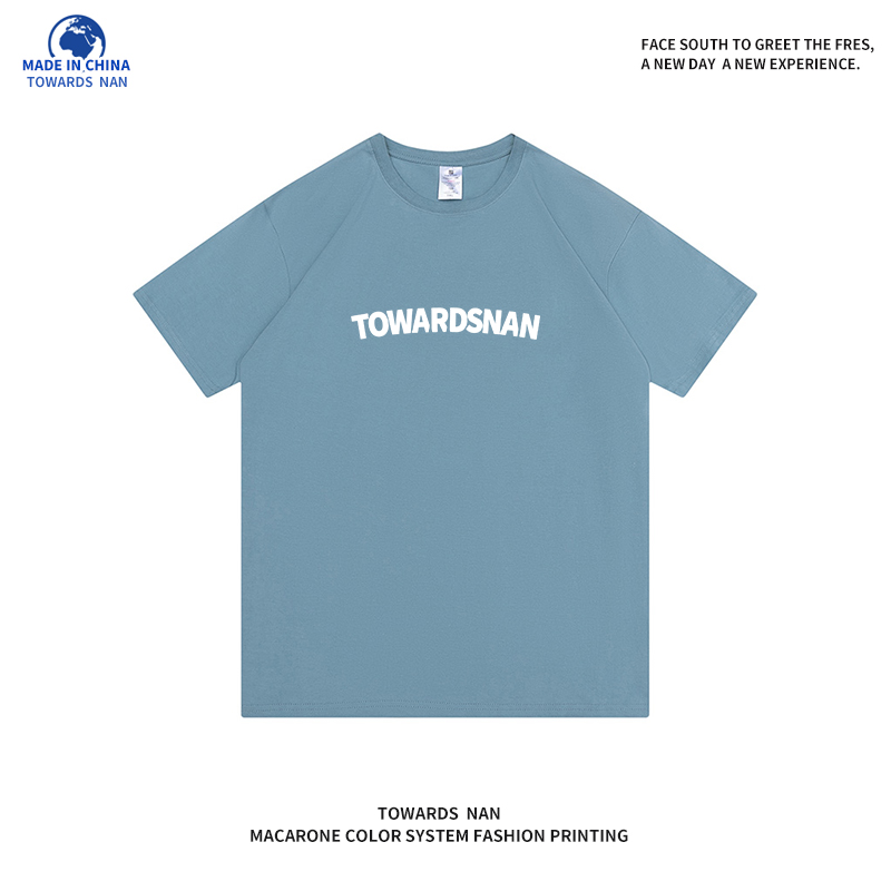 朝南工作室 2023新款男女短袖t恤簡約印花港風情侶純棉正肩T恤夏
