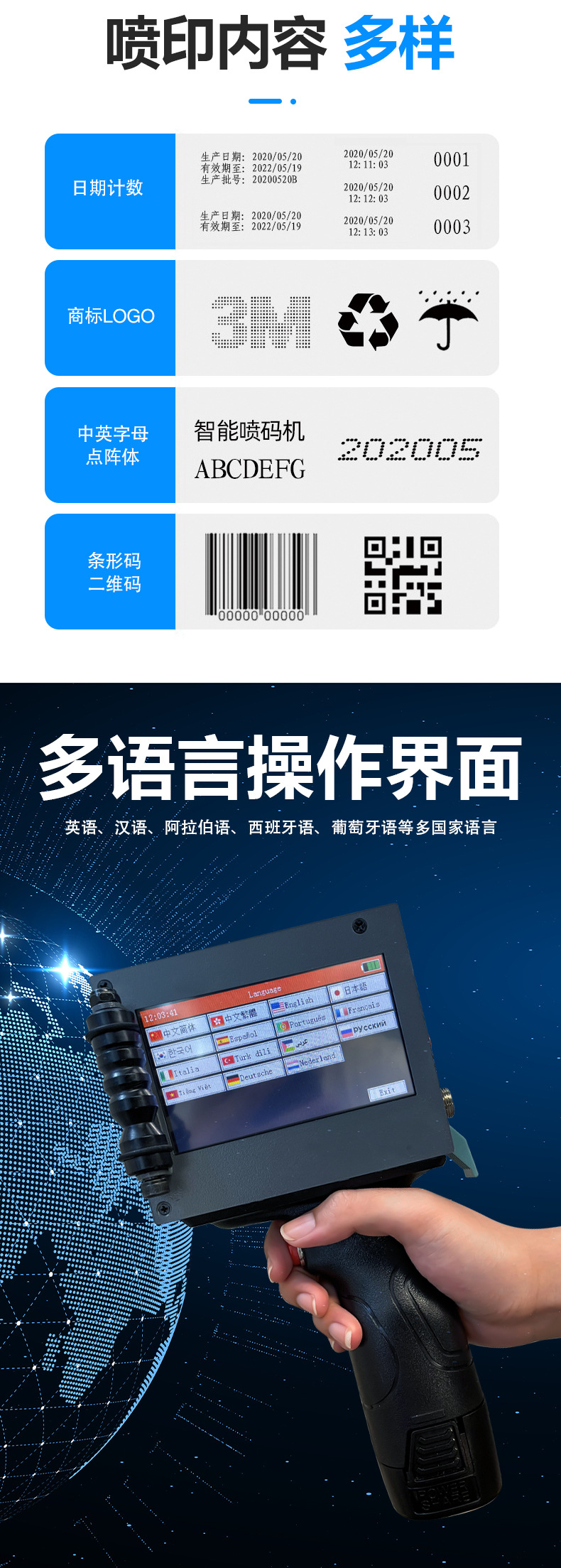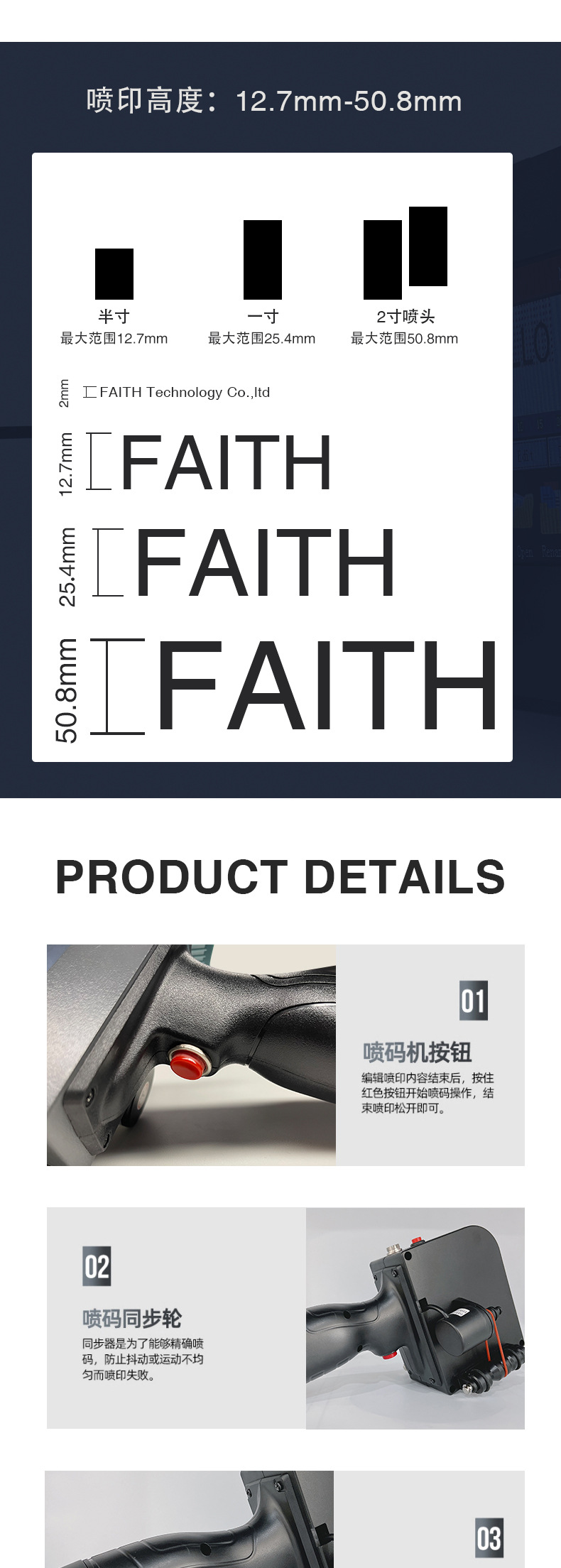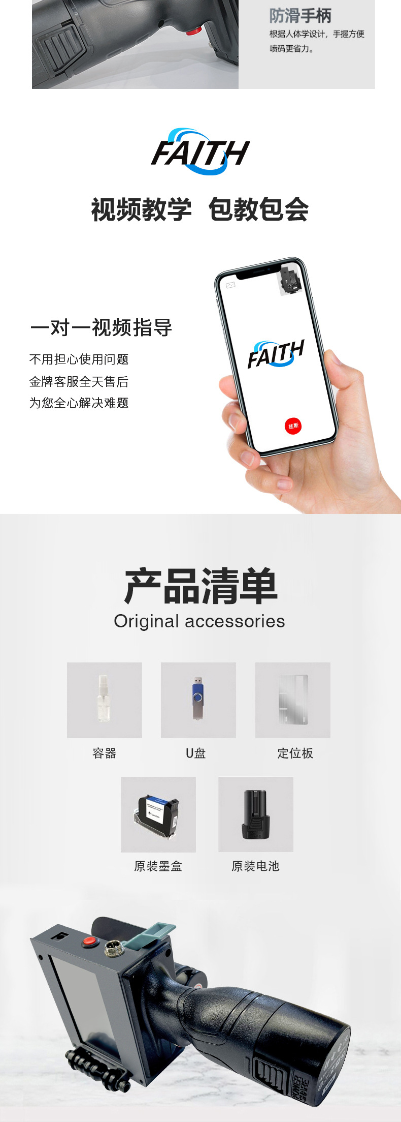 FAITH 智能手持喷码机50.8mm小型日期喷墨金属纸箱二维码 打码机