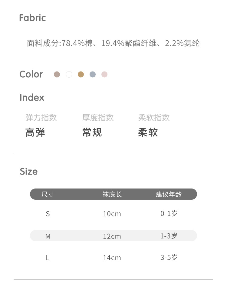 童袜尺码 S码0-1岁,M码1-3岁,L码3-5岁