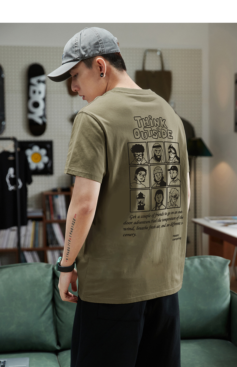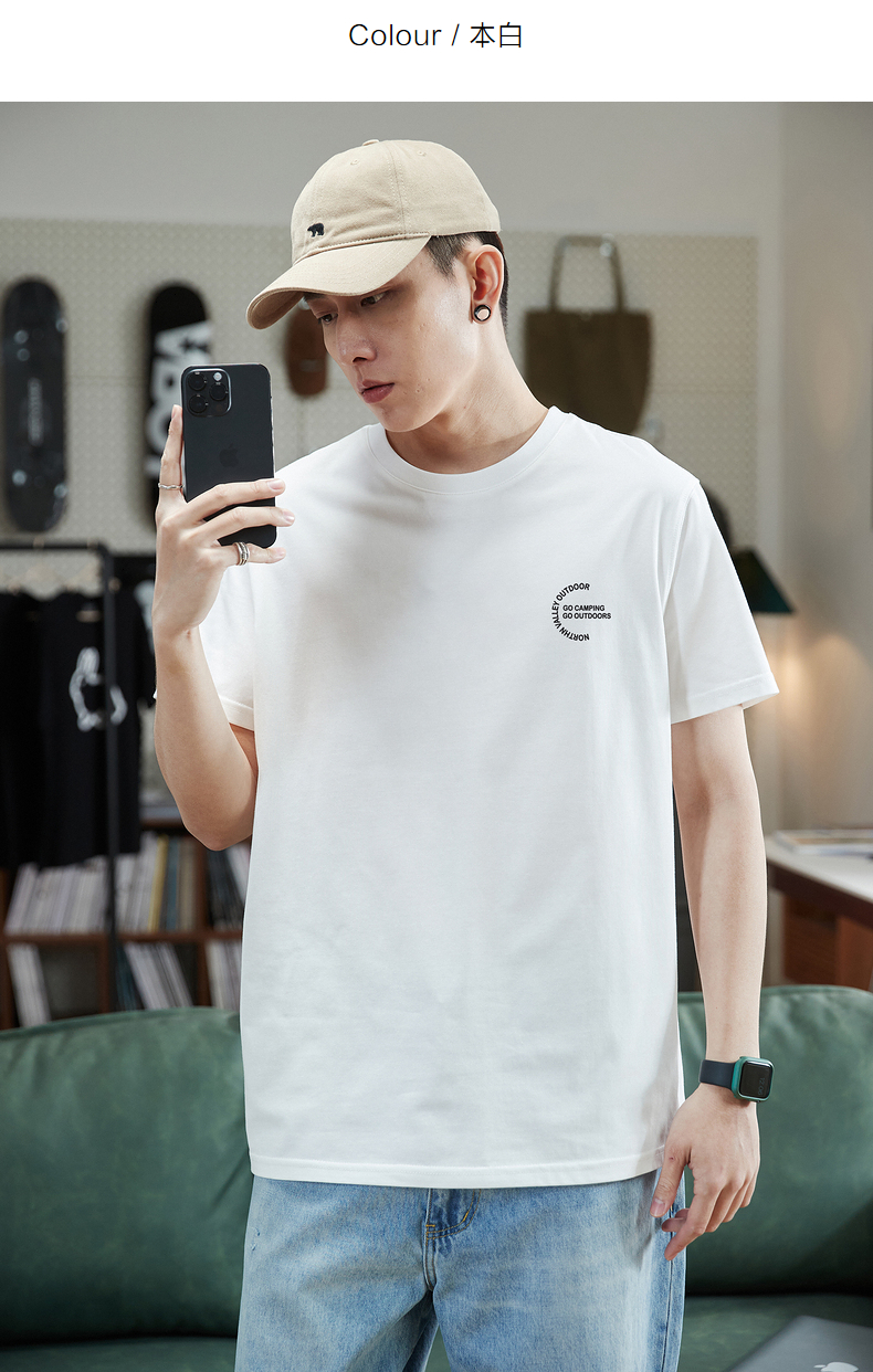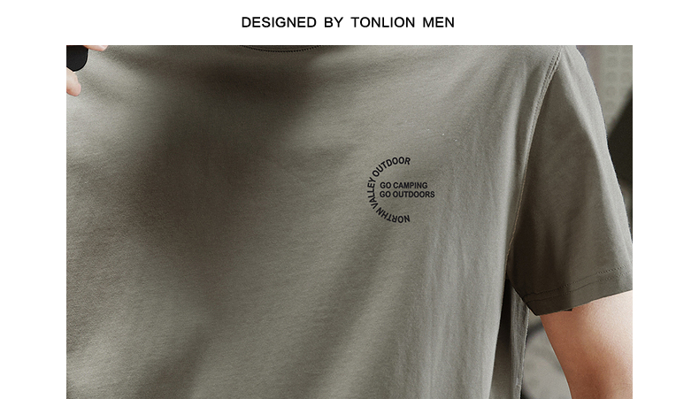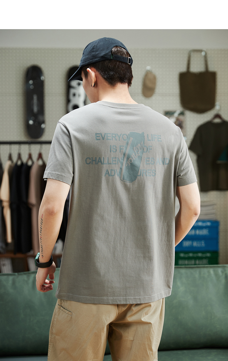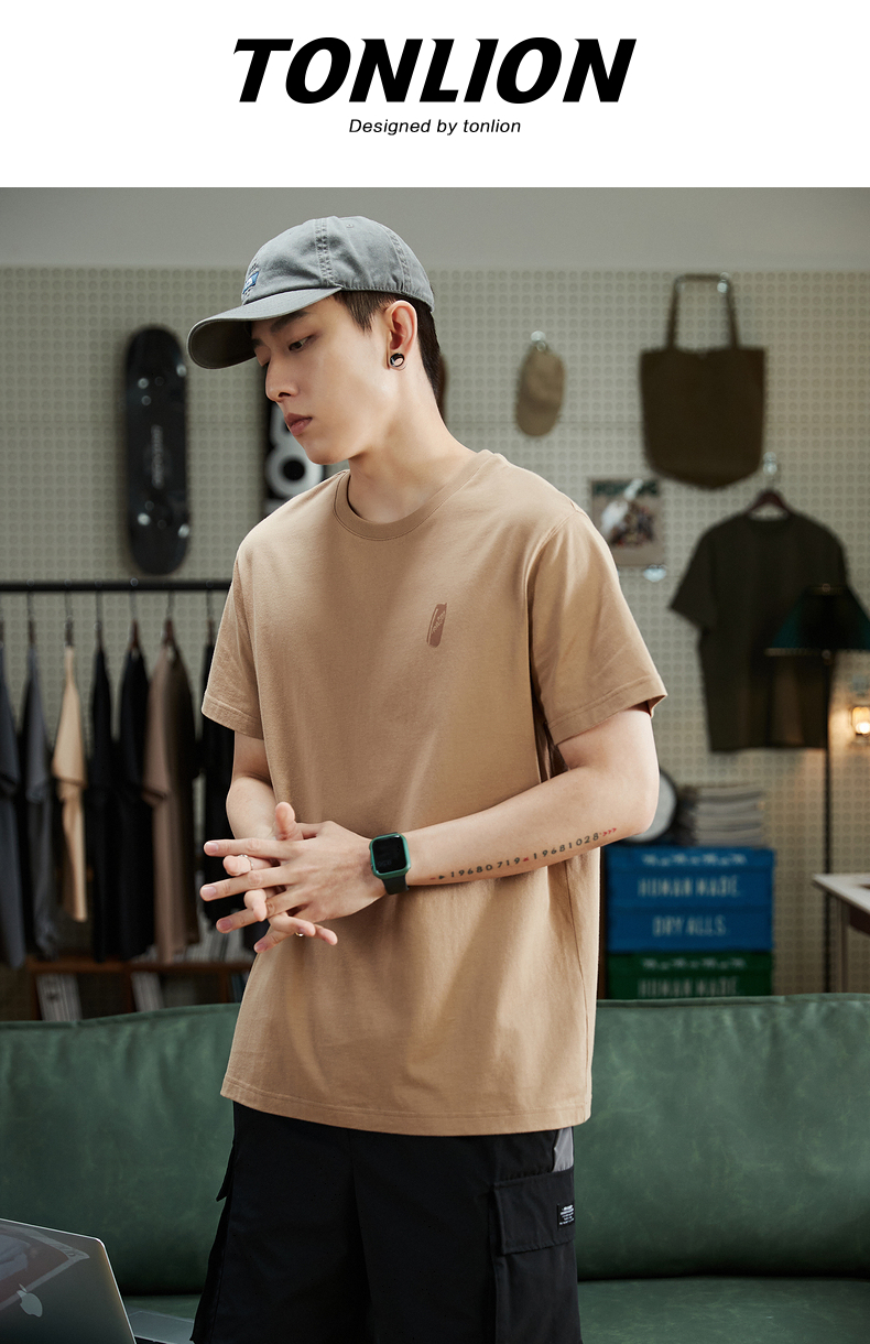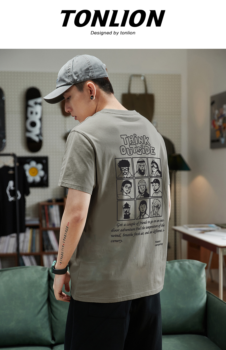 唐獅2023年夏季新款純棉短袖t恤男潮後背印花休閒夏裝上衣T恤