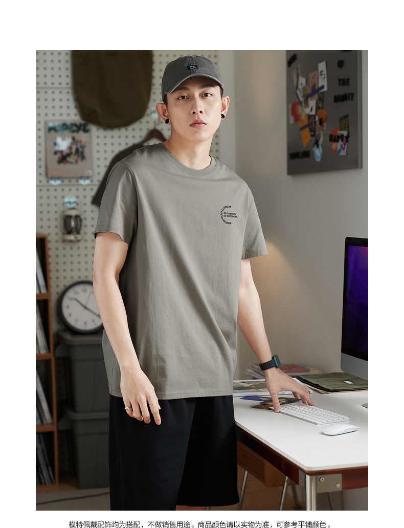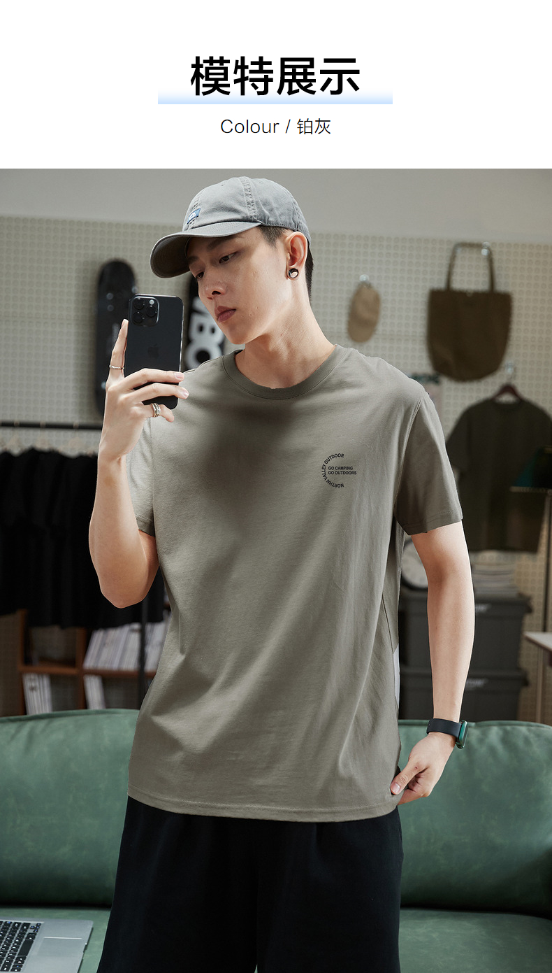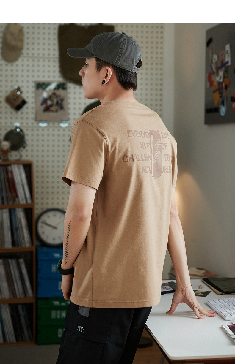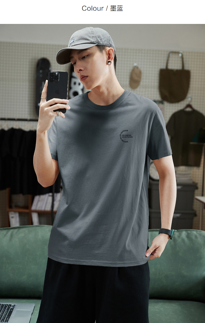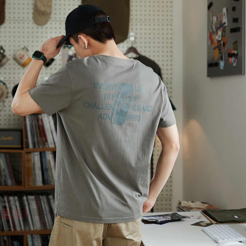 唐獅2023年夏季新款純棉短袖t恤男潮後背印花休閒夏裝上衣T恤