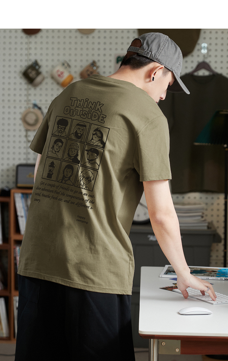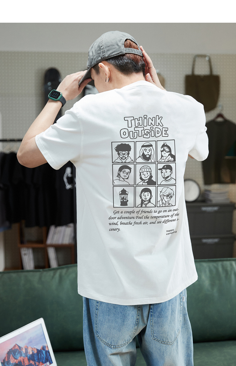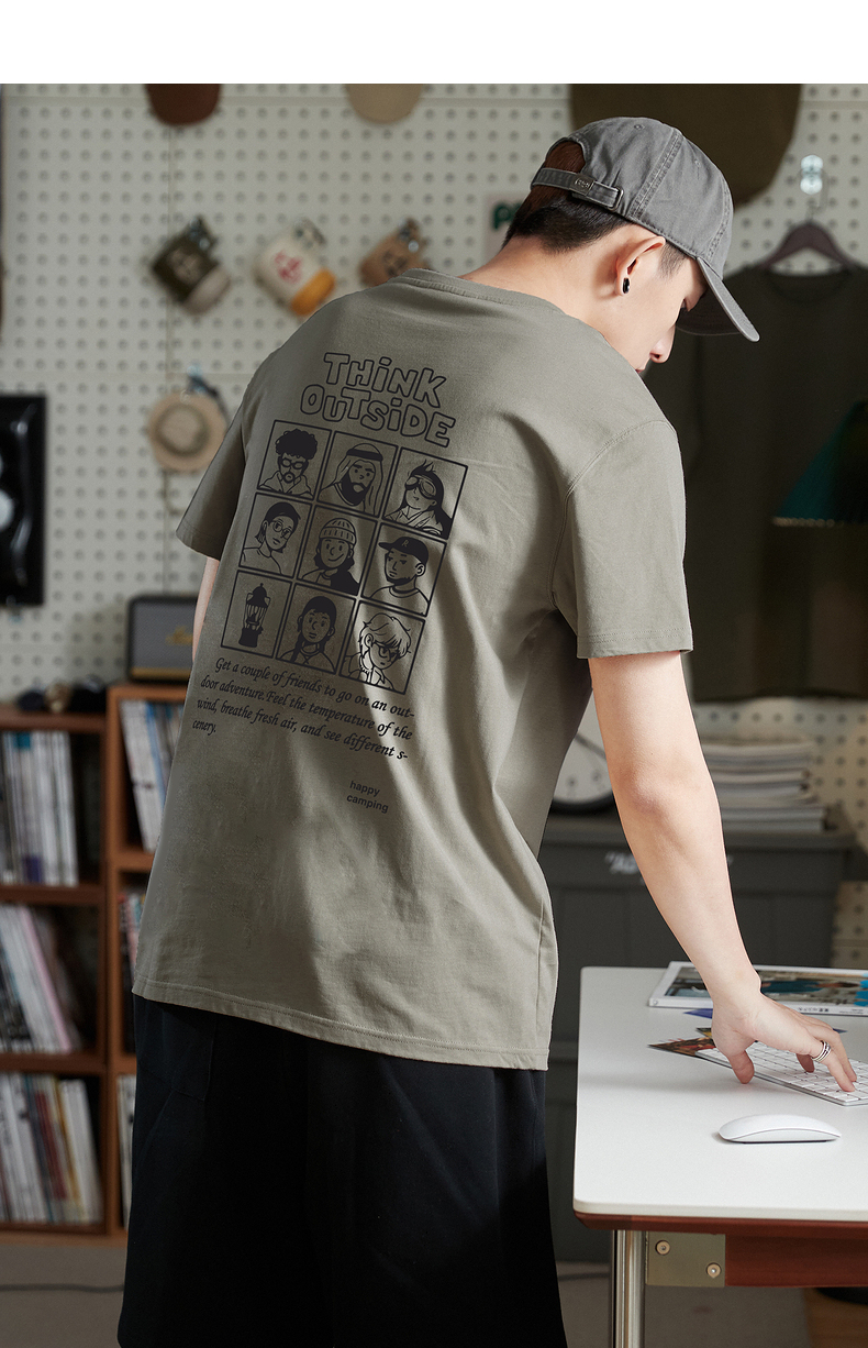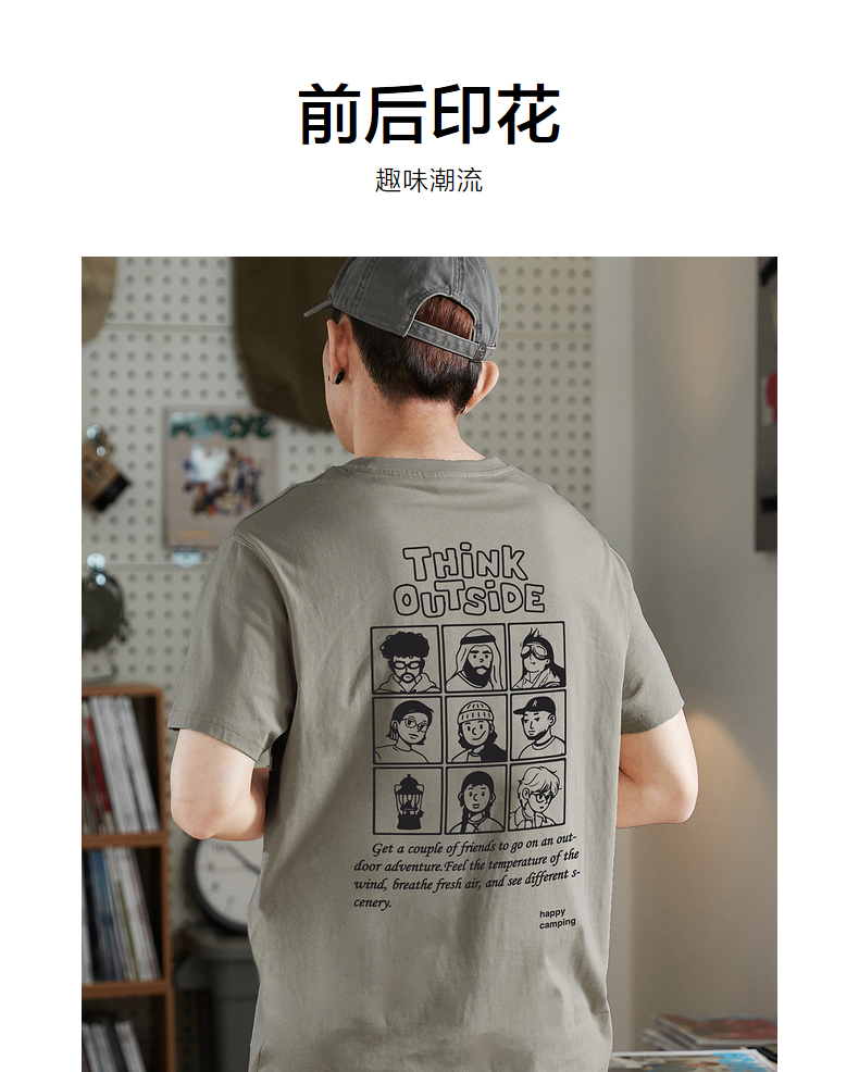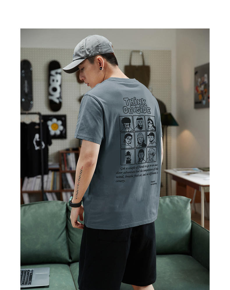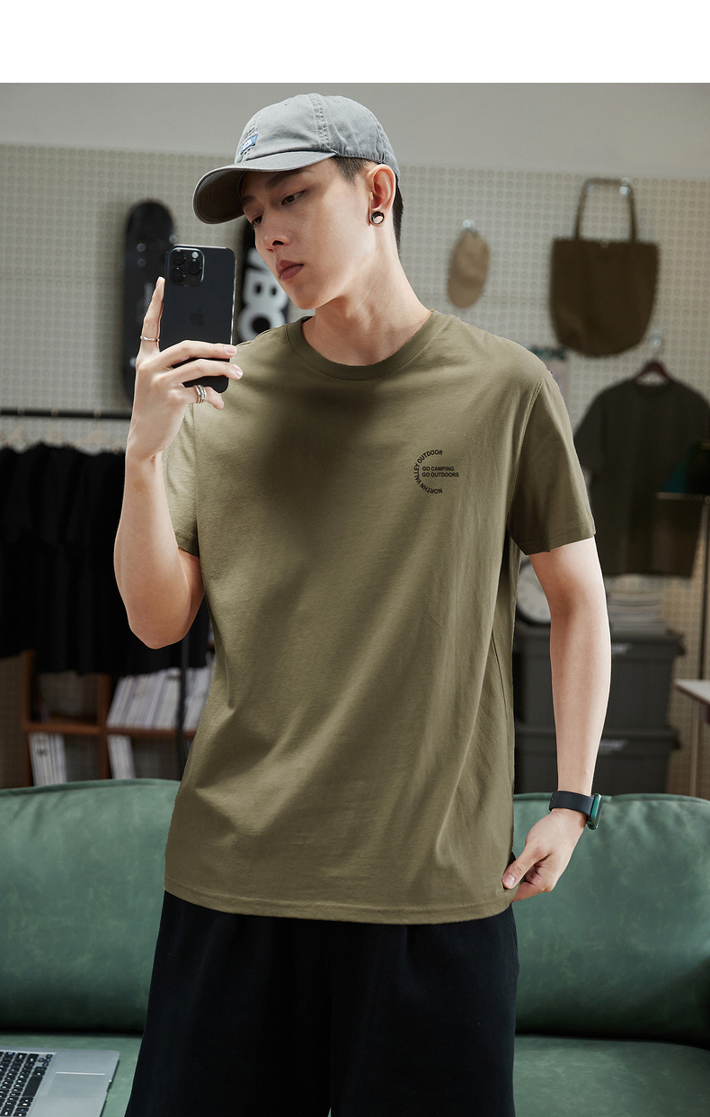唐獅2023年夏季新款純棉短袖t恤男潮後背印花休閒夏裝上衣T恤