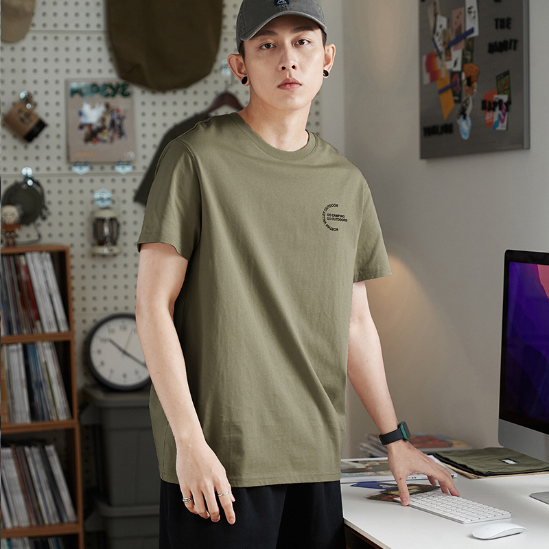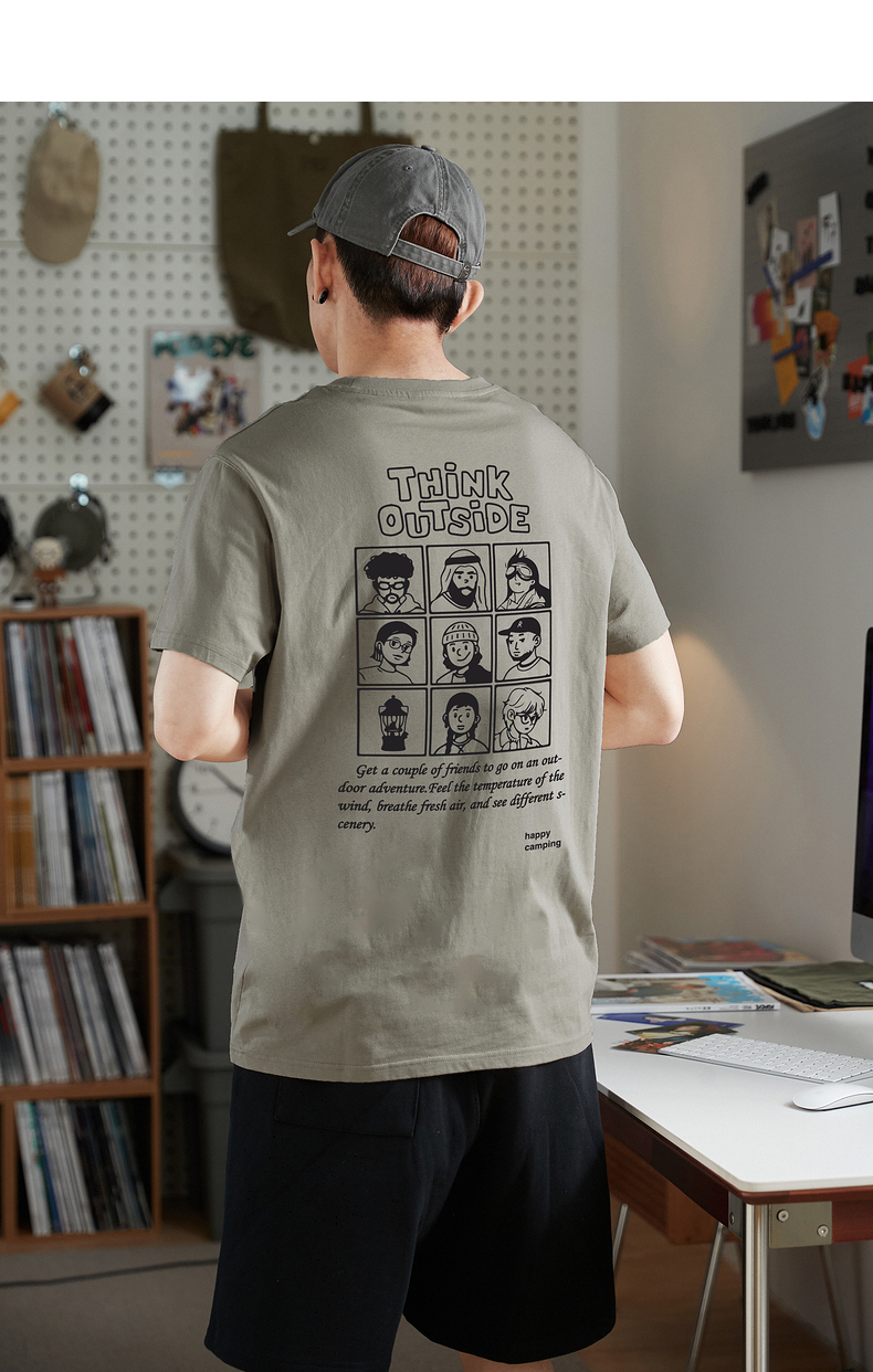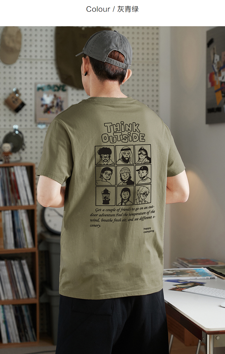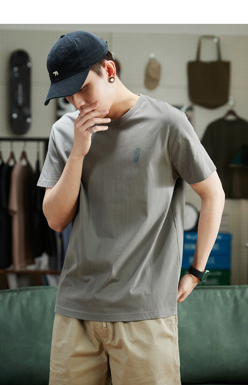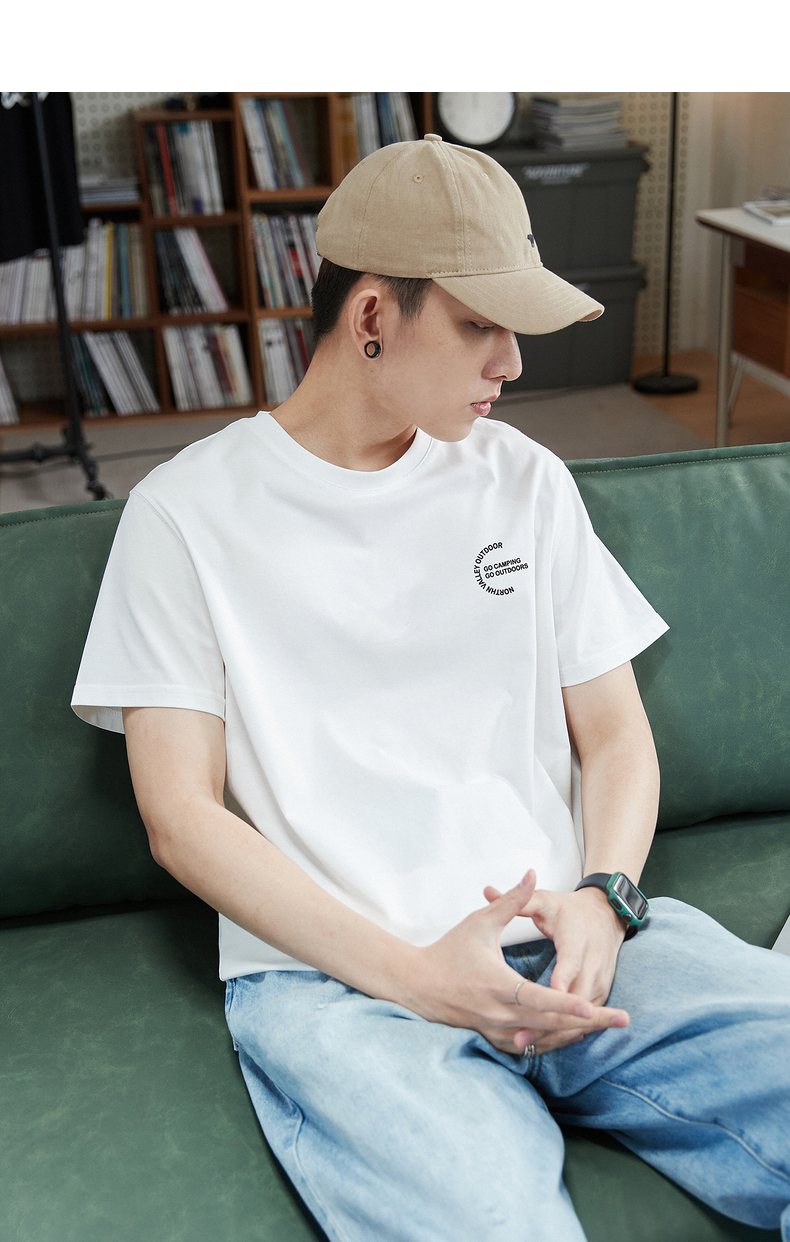 唐獅2023年夏季新款純棉短袖t恤男潮後背印花休閒夏裝上衣T恤