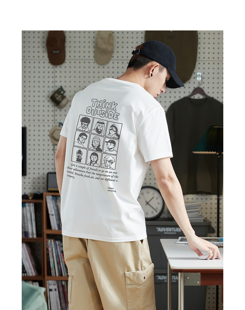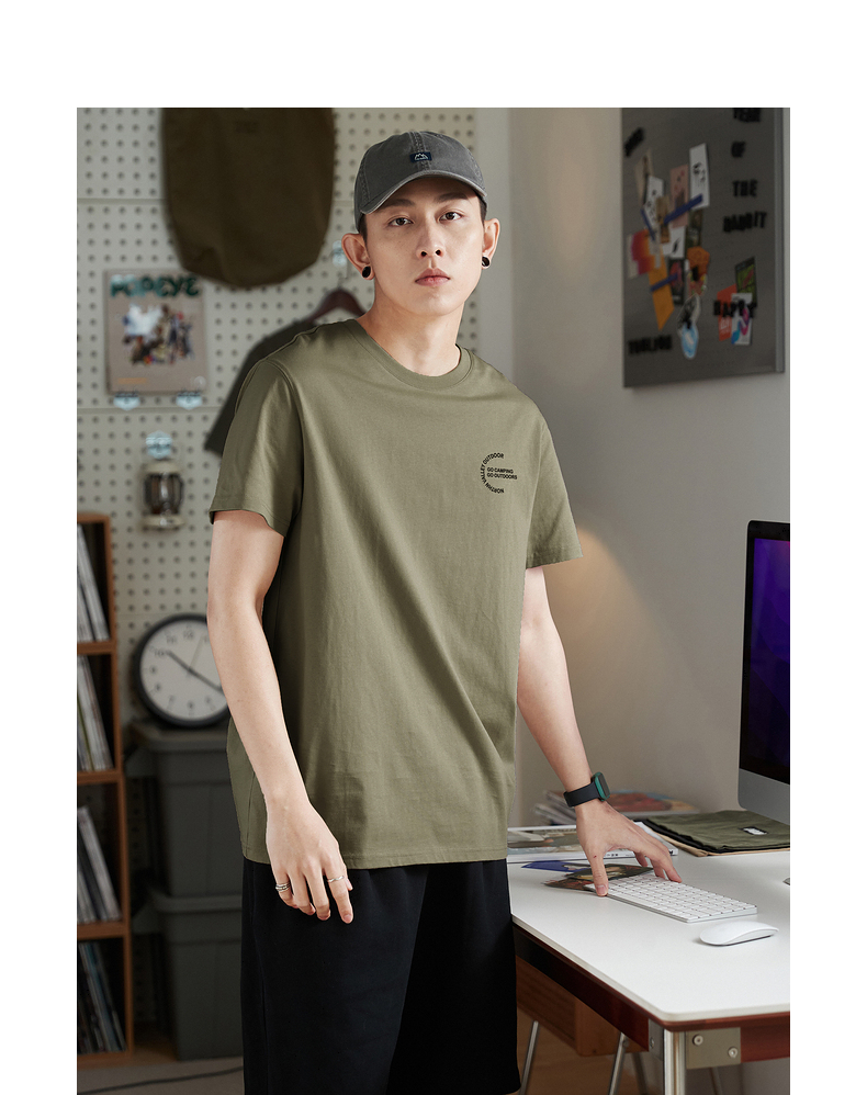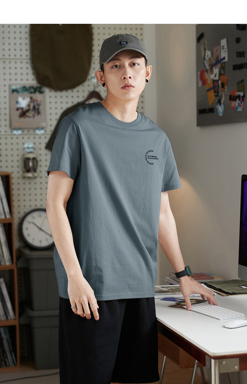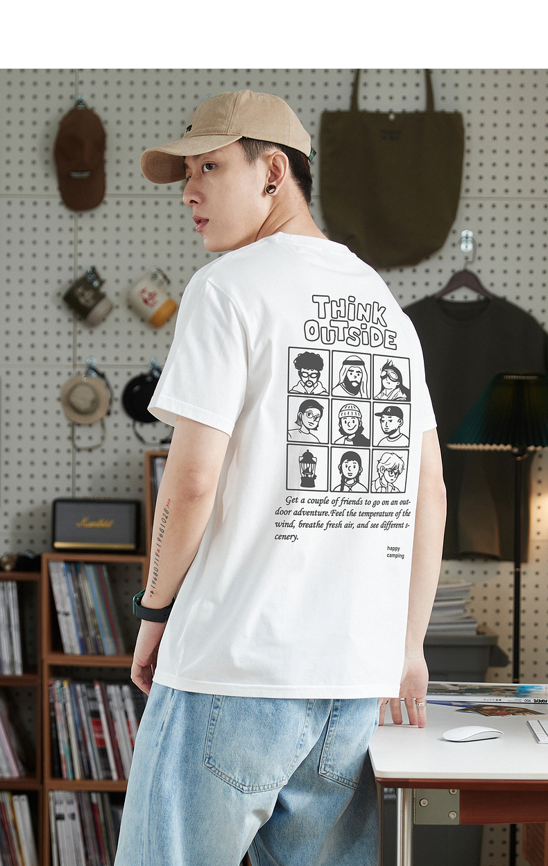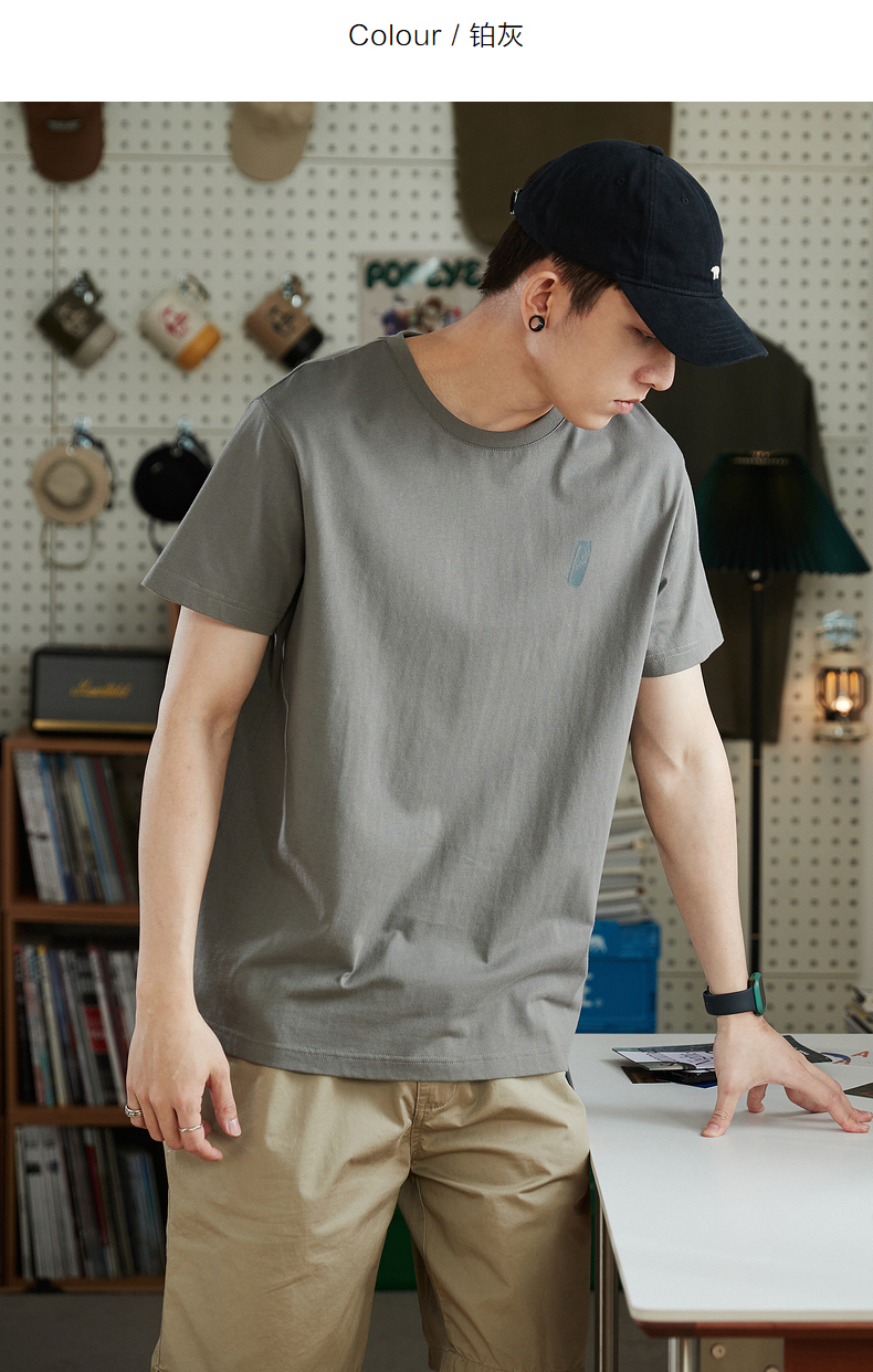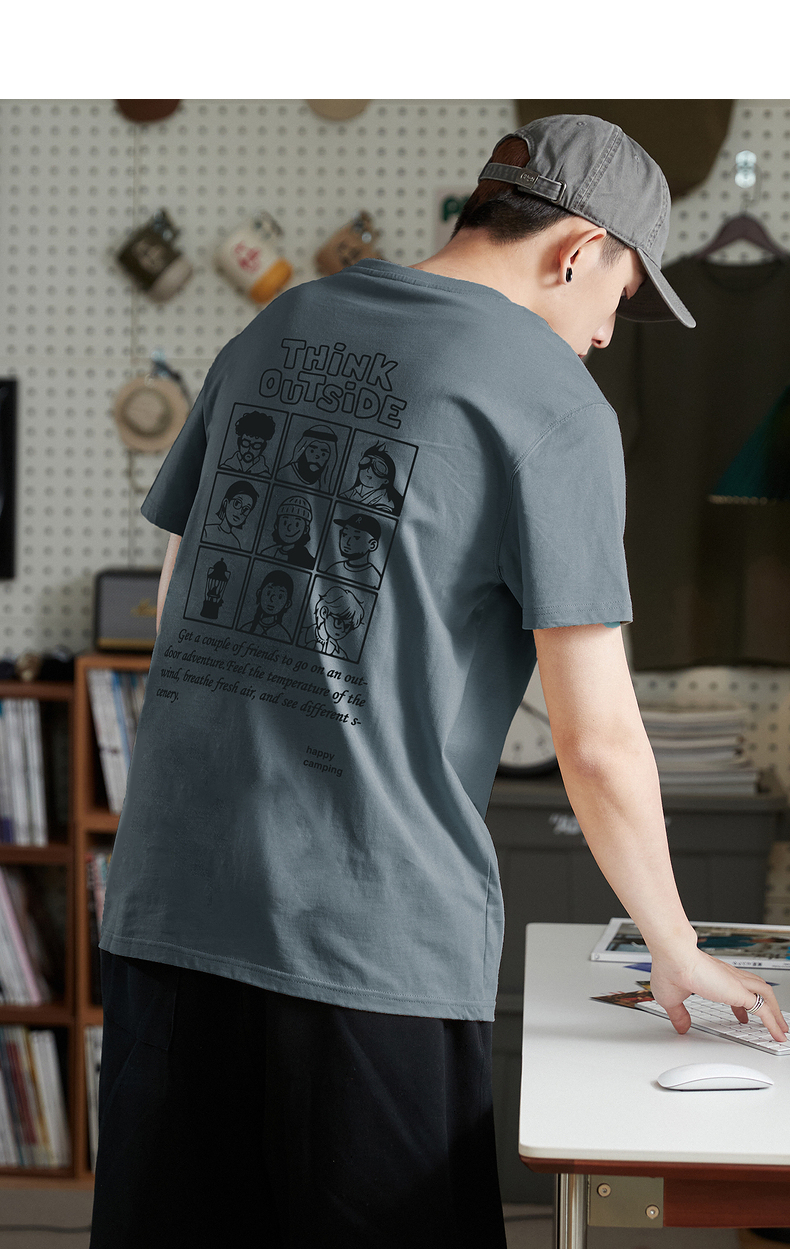 唐獅2023年夏季新款純棉短袖t恤男潮後背印花休閒夏裝上衣T恤
