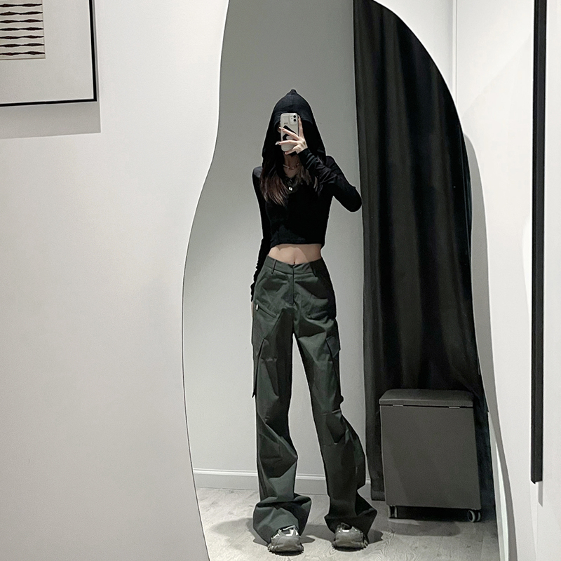 175加長版高個子180灰色機能美式工裝褲女夏季高腰甜酷休閒寬褲