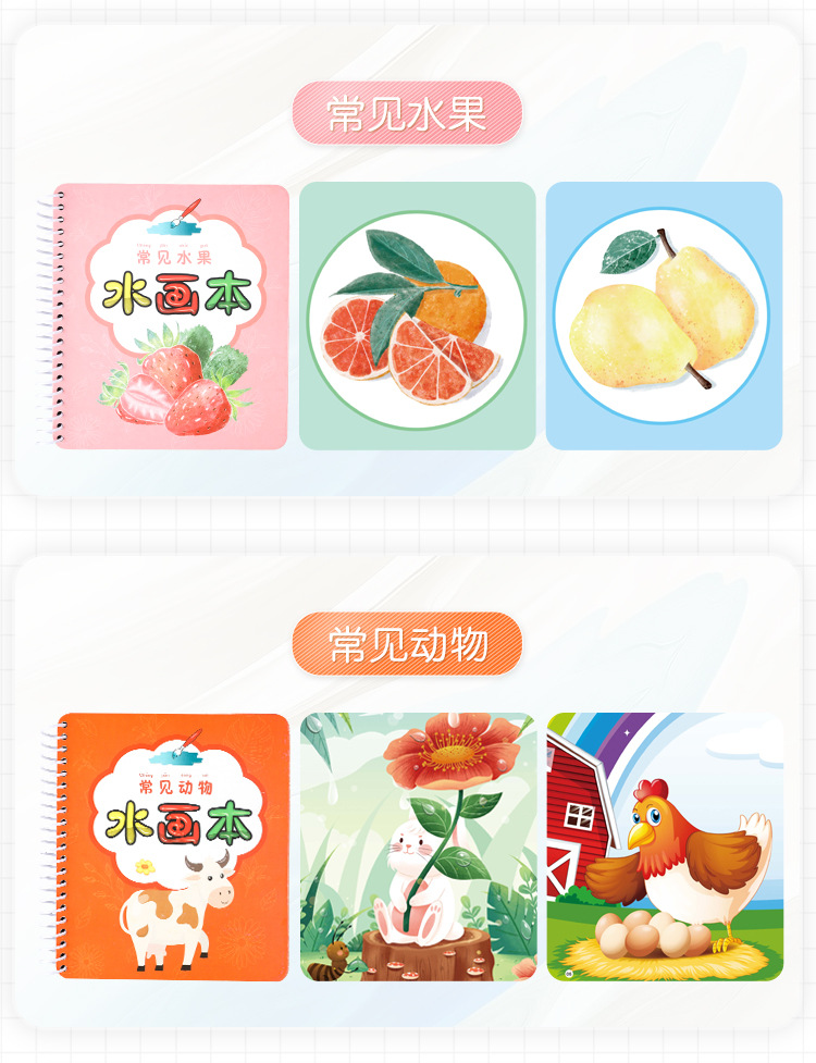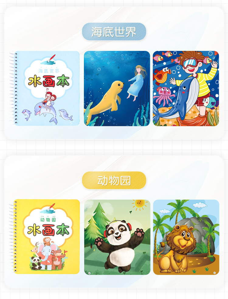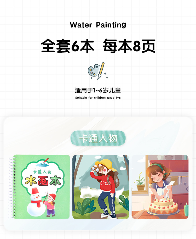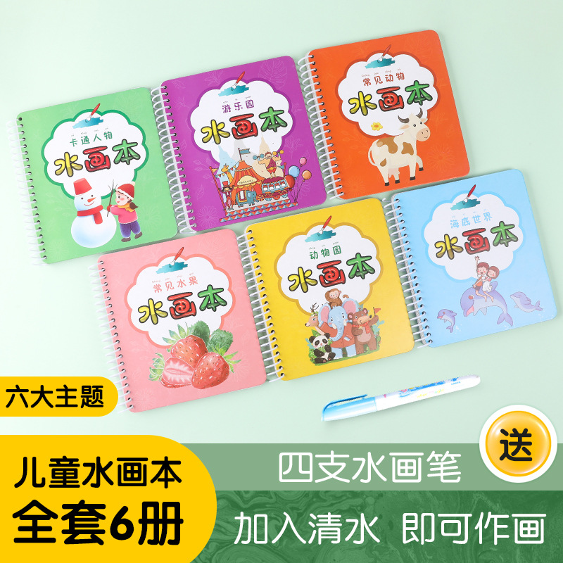 颜色 (卡通人物)系列 不含水画笔,(海底世界)系列 不含水画笔,(动物园)系列 不含水画笔,(常见水果)系列 不含水画笔,(常见动物)系列 不含水画笔,(游乐园)系列 不含水画笔,(卡通人物)系列 含1根水画笔,(海底世界)系列 含1支水画笔,(动物园)系列 含1支水画笔,(常见水果)系列 含1支水画笔,(常见动物)系列 含1支水画笔,(游乐园)系列 含1支水画笔,全套6本 配4支笔