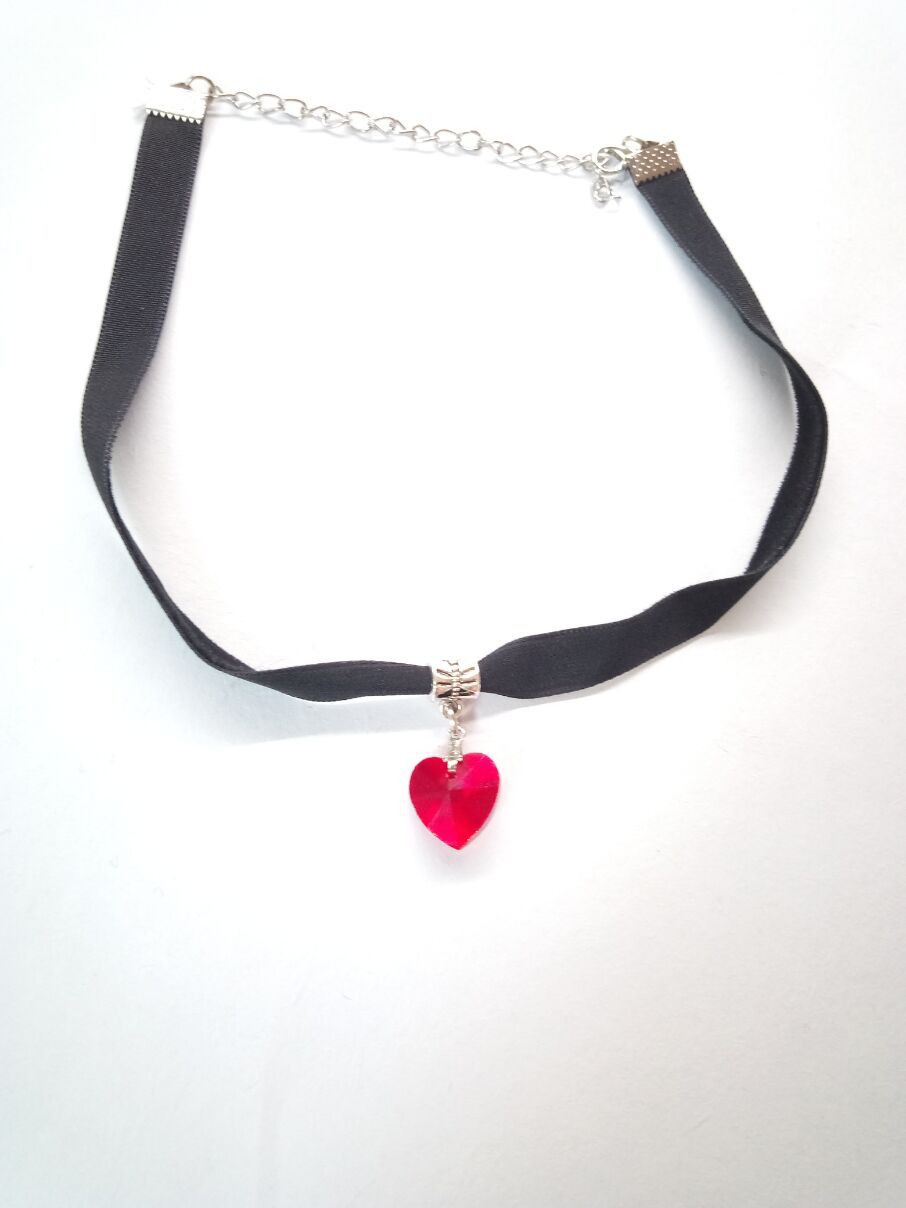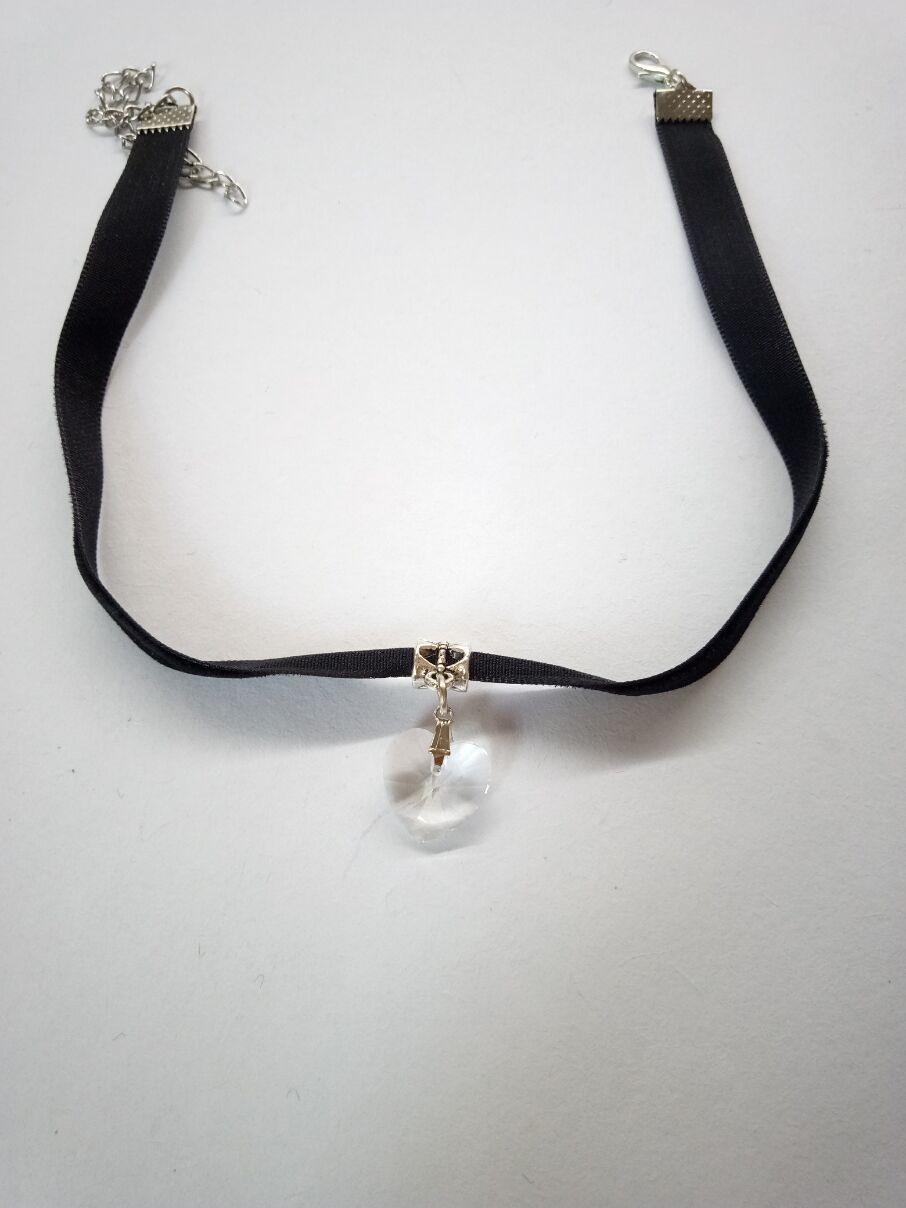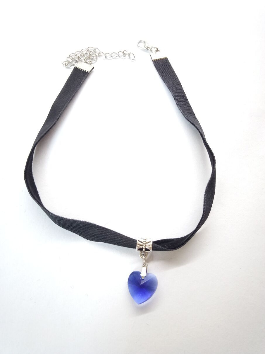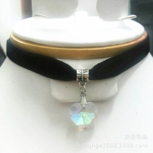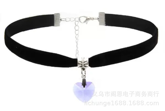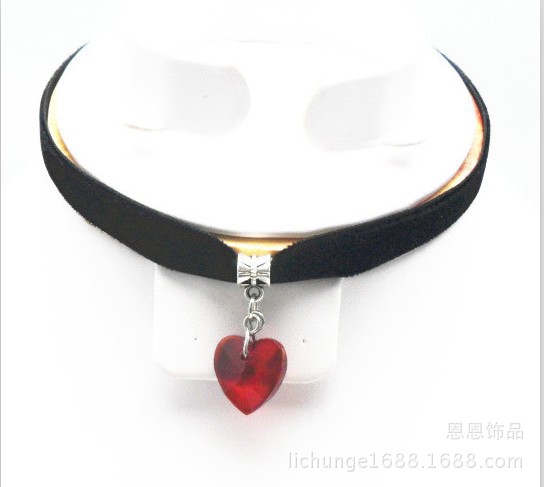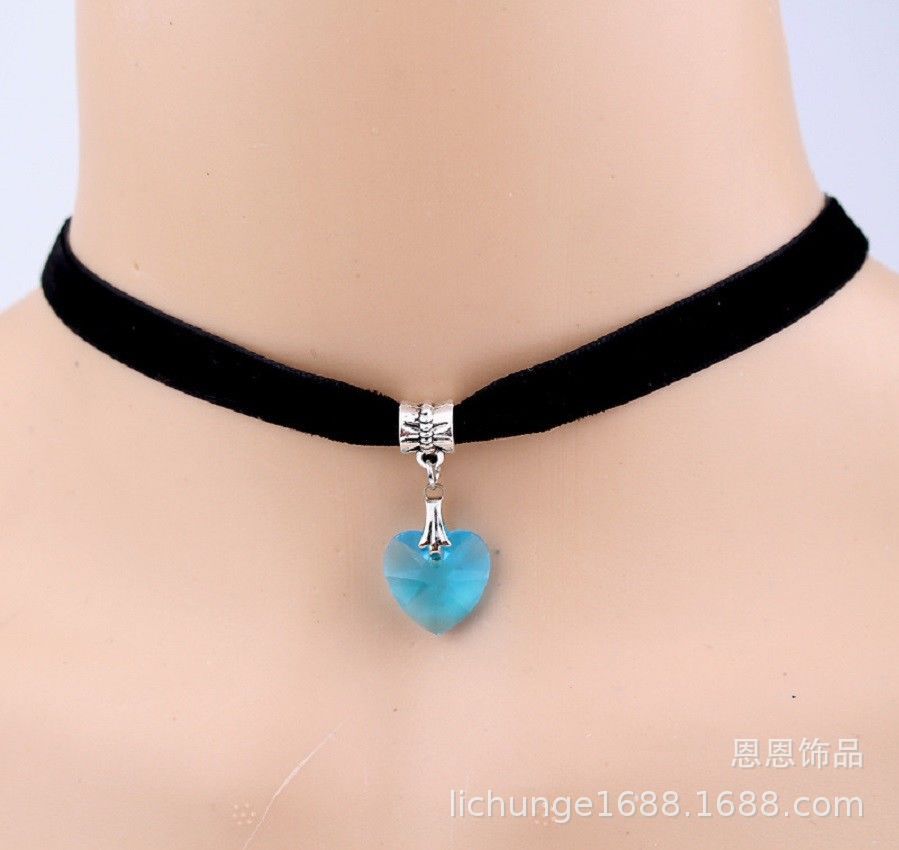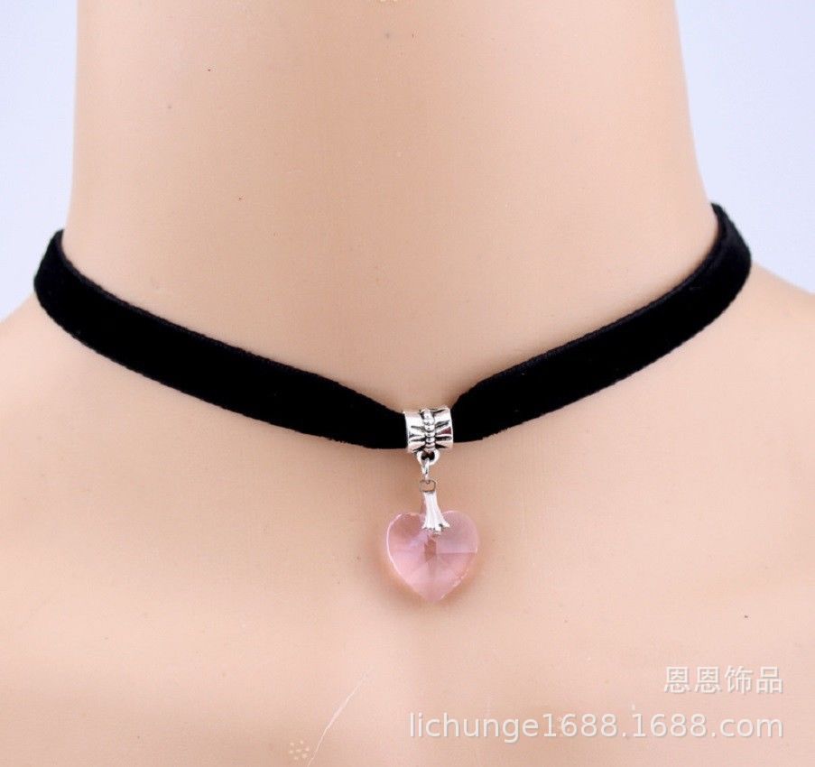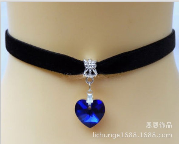 欧美时尚绒布吊坠水晶爱心保色项链 多色水昌心型绒布项饰首饰