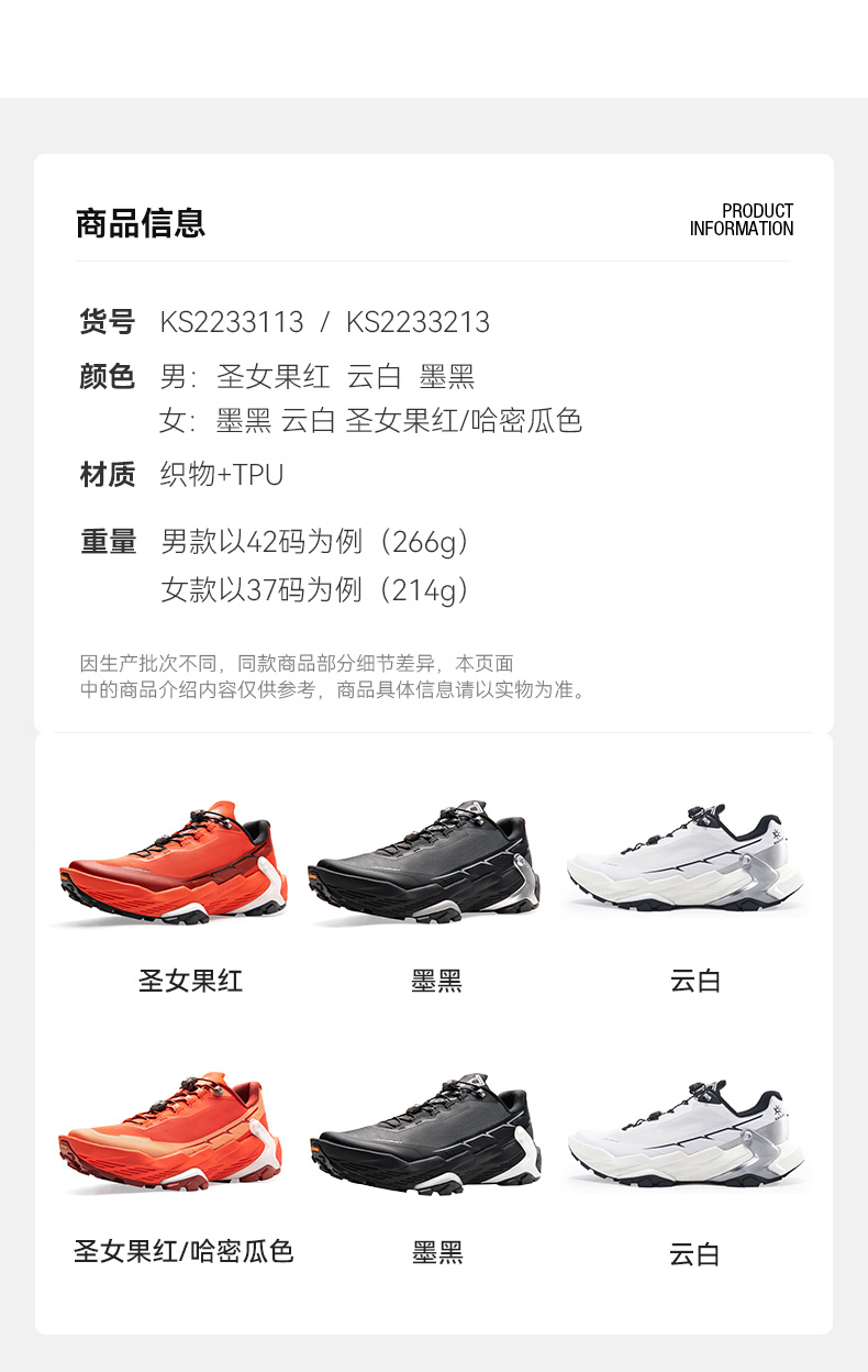 顏色分類 KS2233113男-墨黑 KS2233113男-雲白 KS2233113男-銀河綠/墨黑/銅綠色 KS2233113男-火焰紅/雲白/墨黑 KS2313105男-聖女果紅 KS2313105男-墨黑 KS2313105男-蜜糖棕/深淵綠 KS2313105男-潛水藍/墨黑 KS2313105男-雲白/日落橙 KS2313205女-聖女果紅/哈密瓜色 KS2233213女-螢光桃紅/帝王藍/芒果 KS2313205女-漂白砂/古巴沙色 KS2313205女-雲白/日落橙 KS2313205女未漂源色/午夜藍/FUGA橙 KS2233213女-墨黑 KS2233213女-雲白 KS2233213女-火焰紅/雲白/墨黑