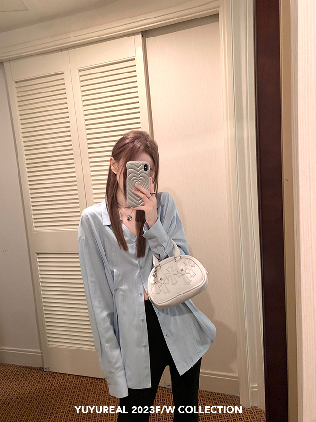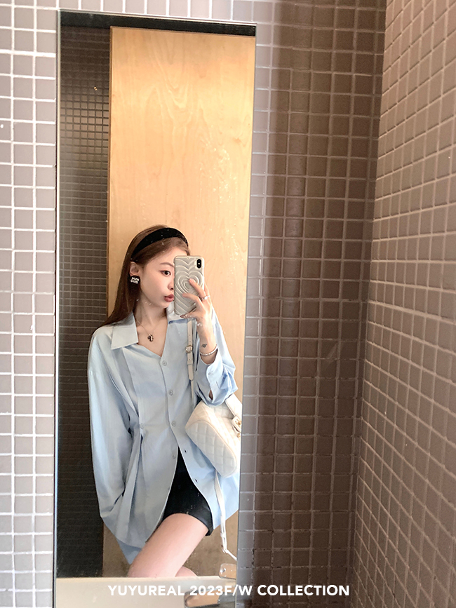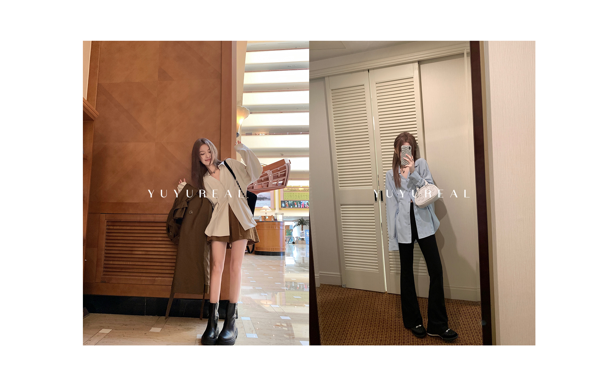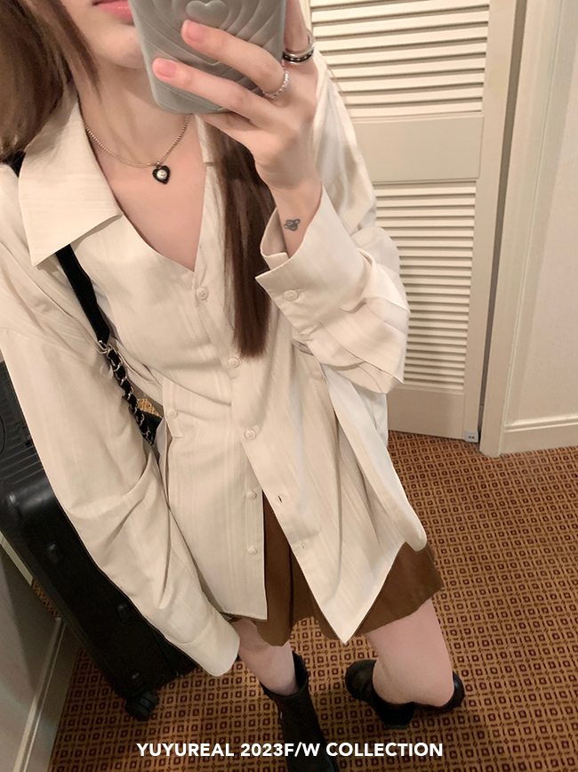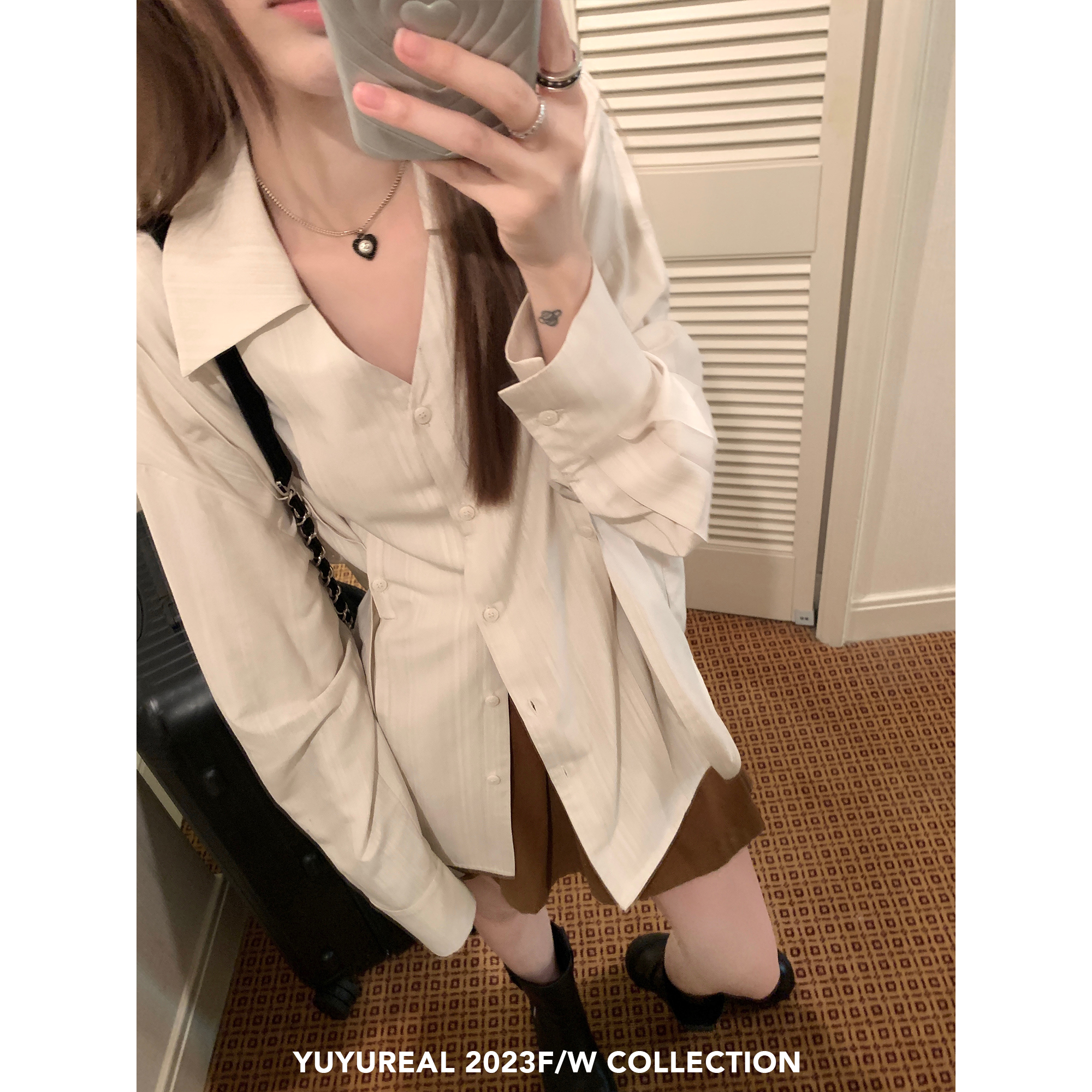 YUYUREAL- 自在襯衫控 暗紋肌理感收腰襯衫設計感小眾襯衫女上衣