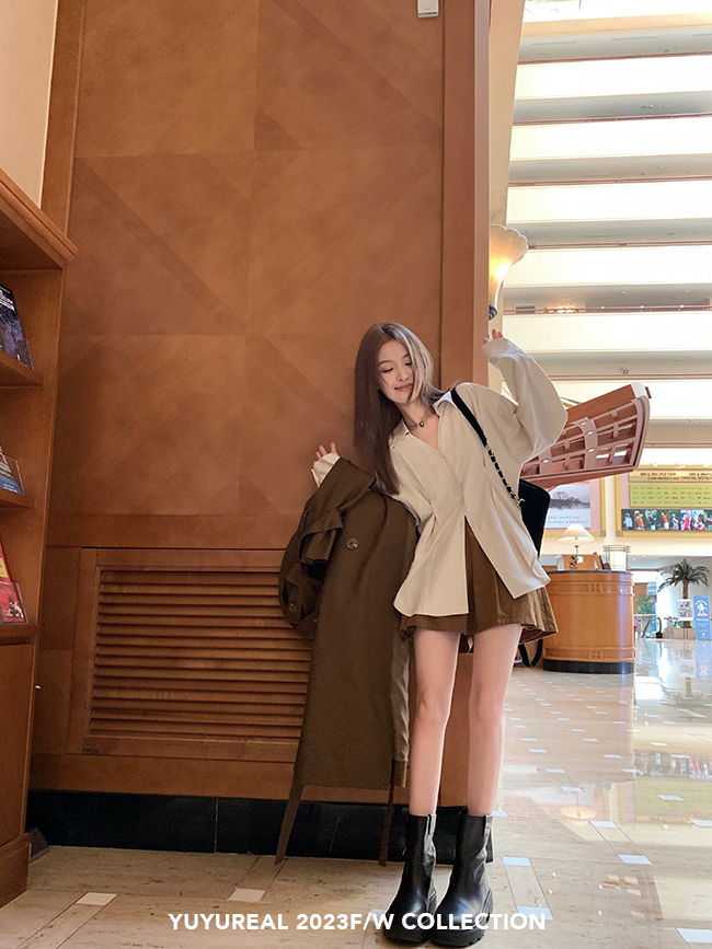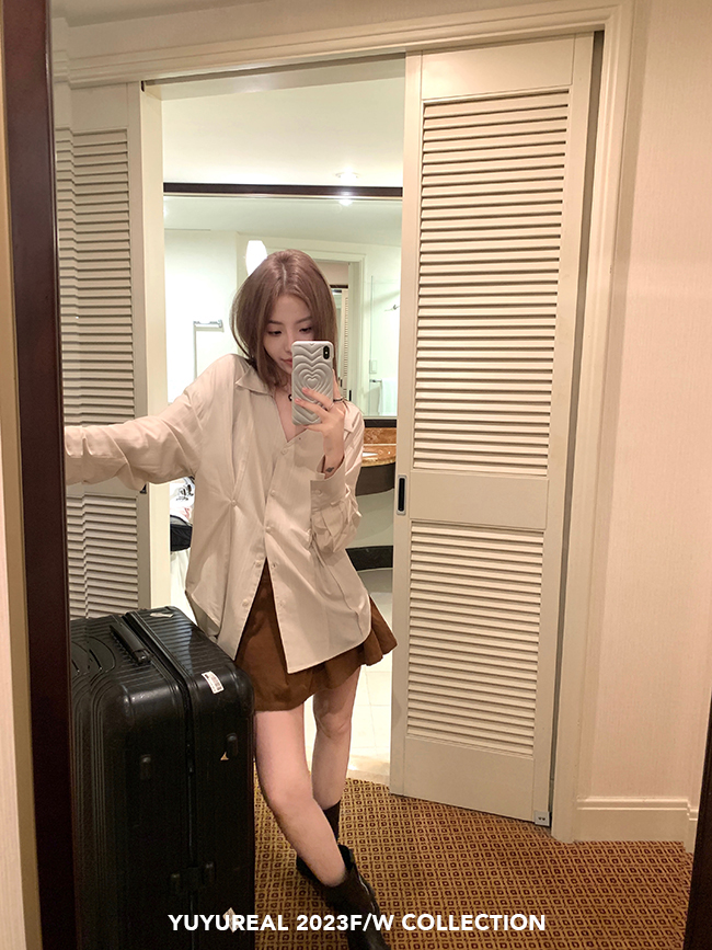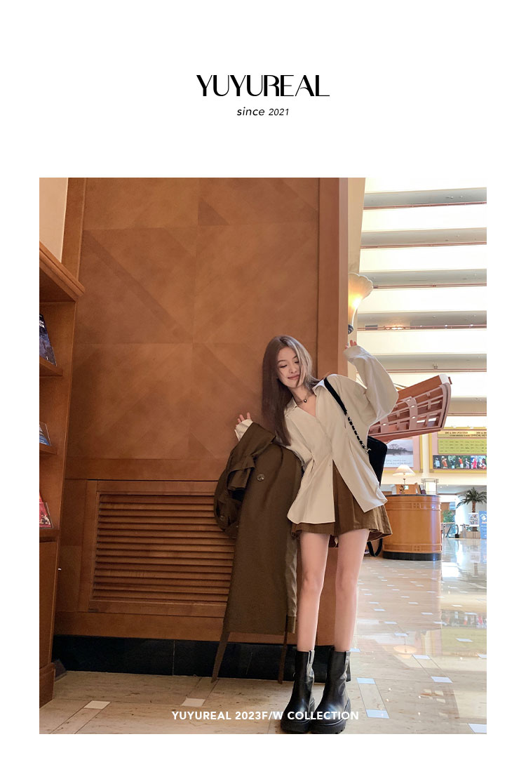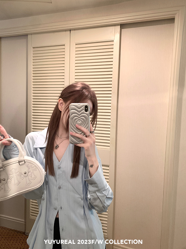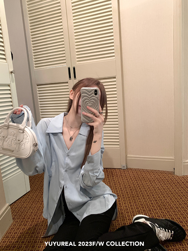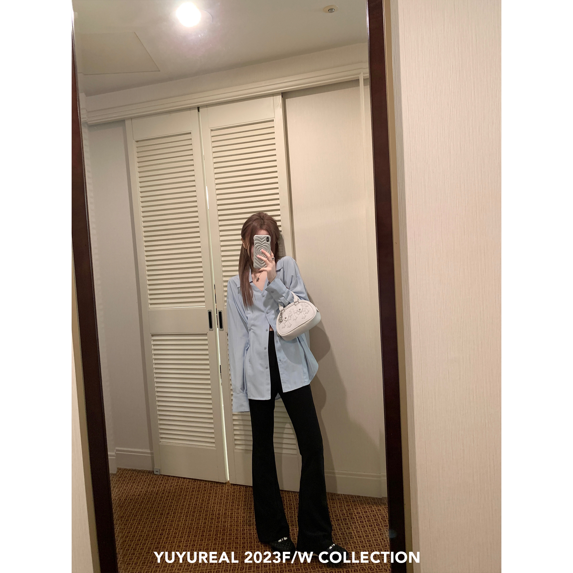 YUYUREAL- 自在襯衫控 暗紋肌理感收腰襯衫設計感小眾襯衫女上衣