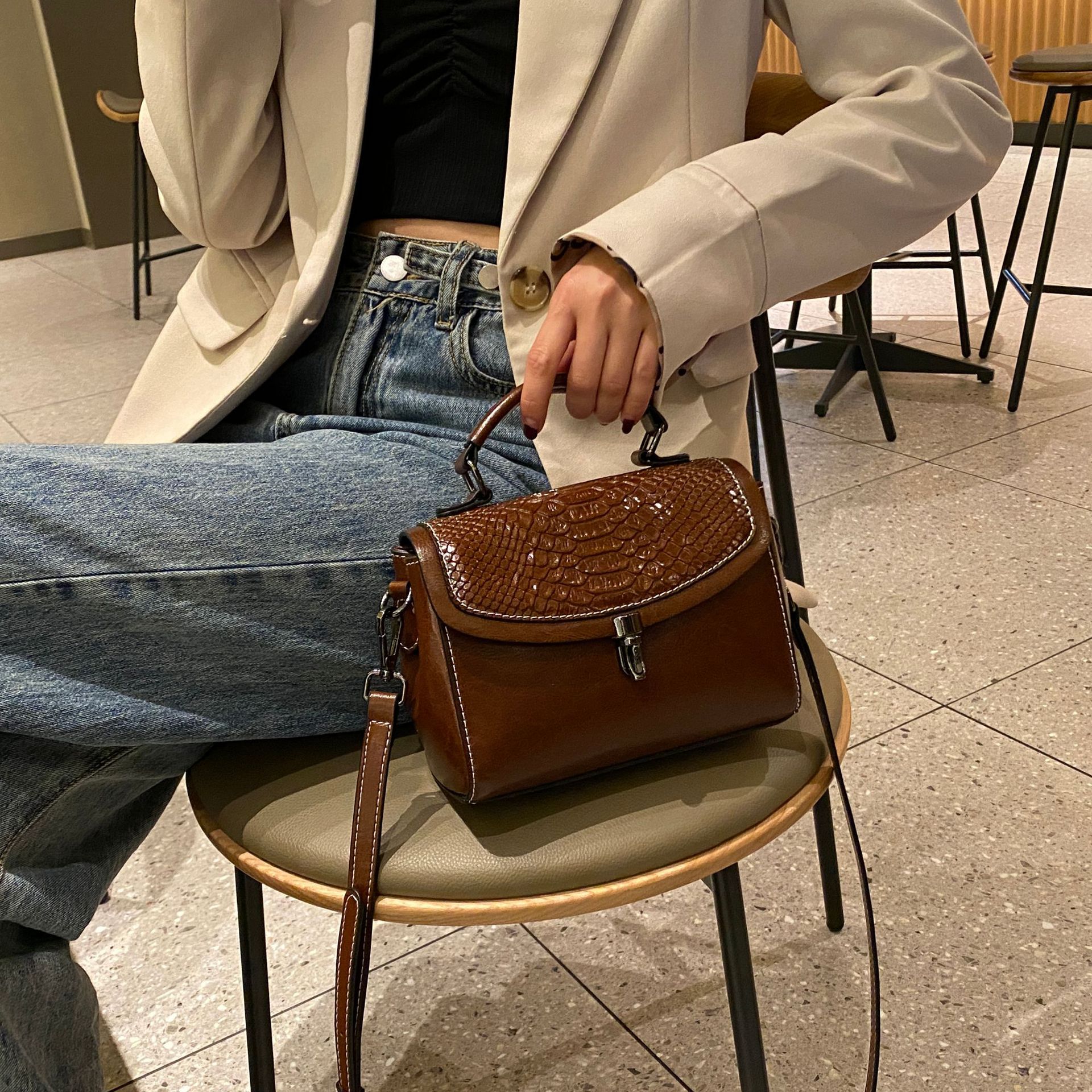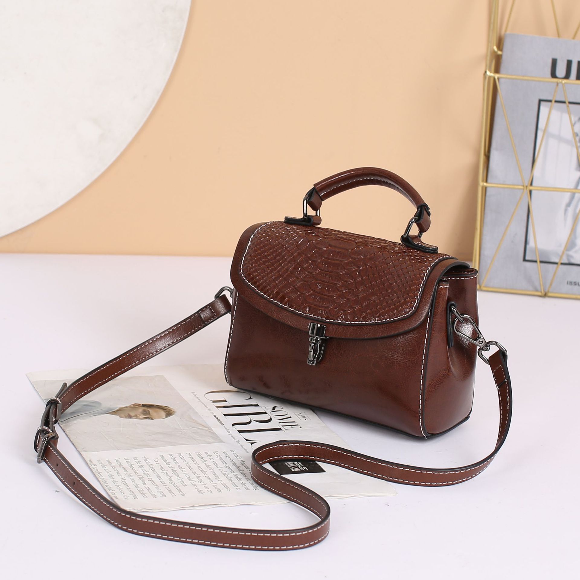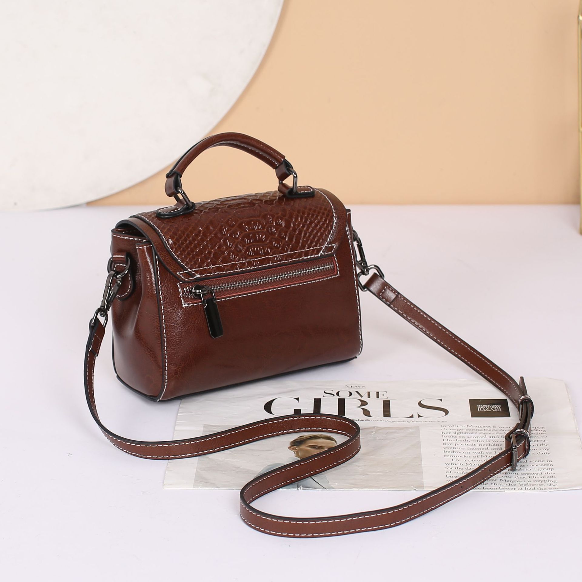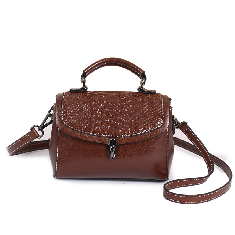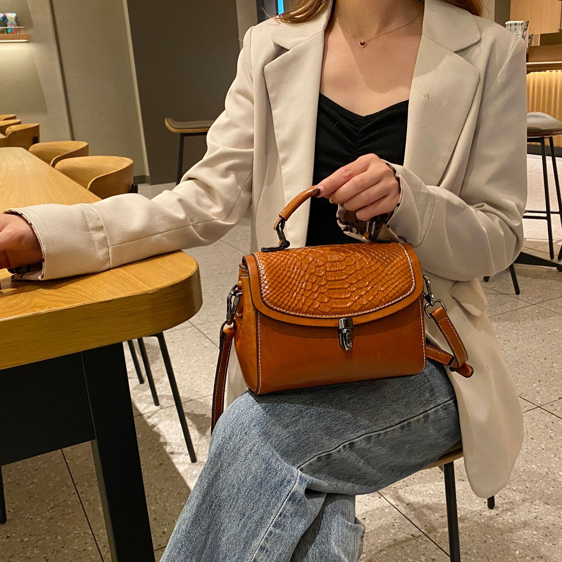跨境鳄鱼纹皮手提包 二层牛皮单肩斜挎女包 工厂批发油蜡皮翻盖包