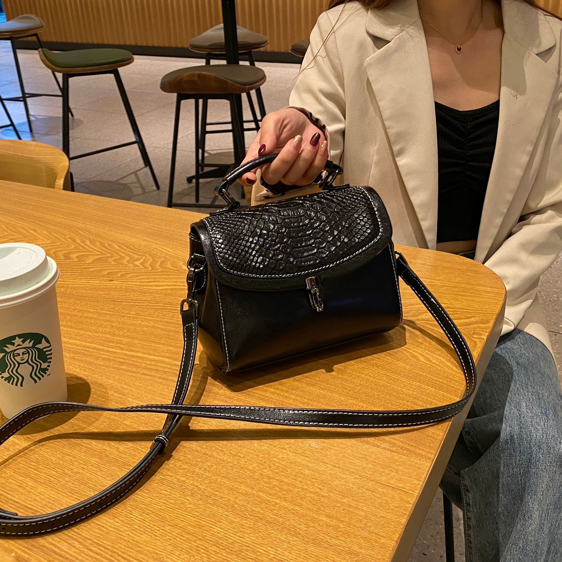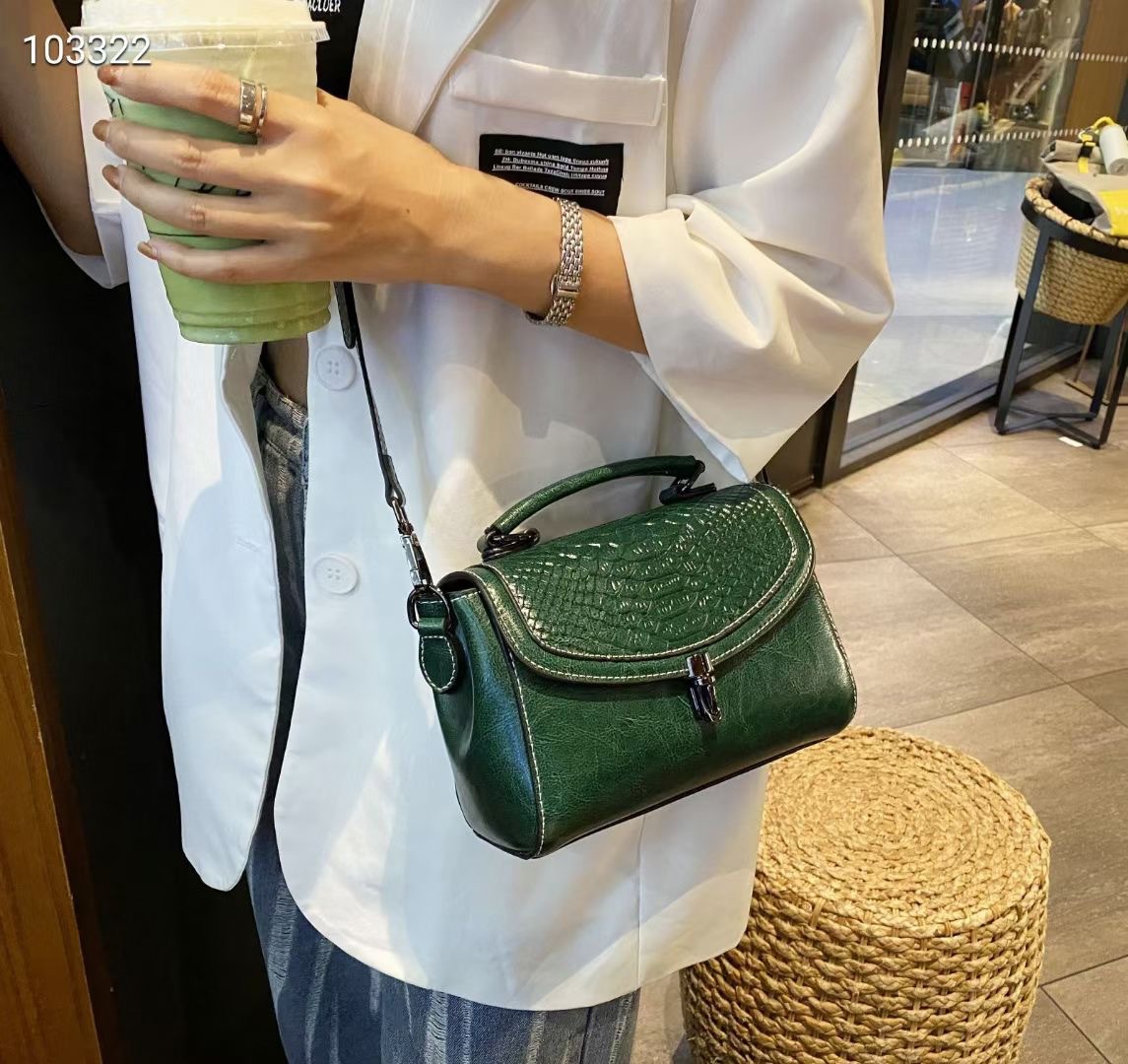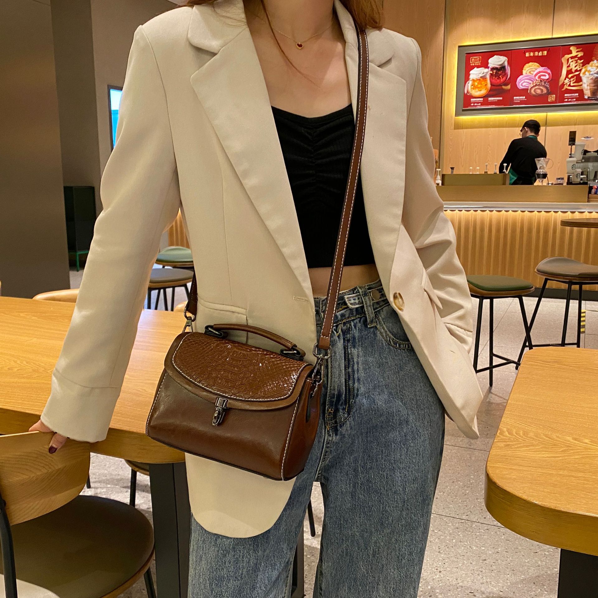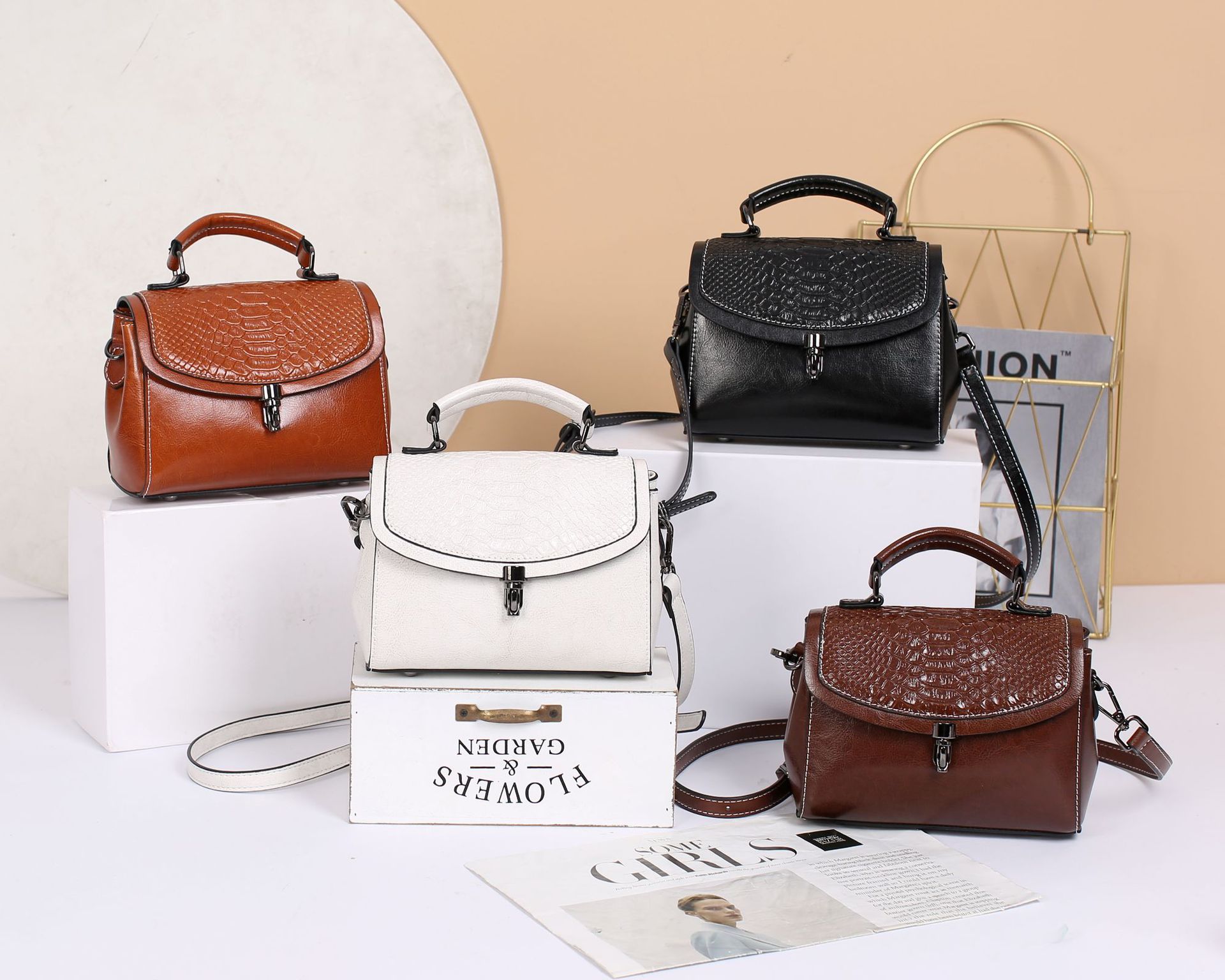跨境鳄鱼纹皮手提包 二层牛皮单肩斜挎女包 工厂批发油蜡皮翻盖包