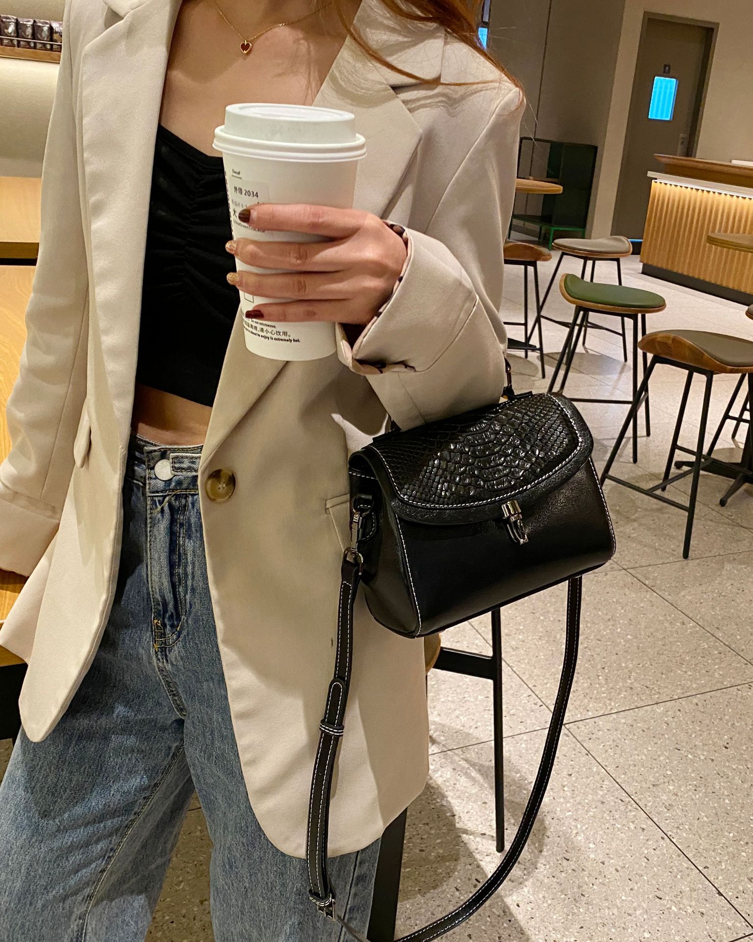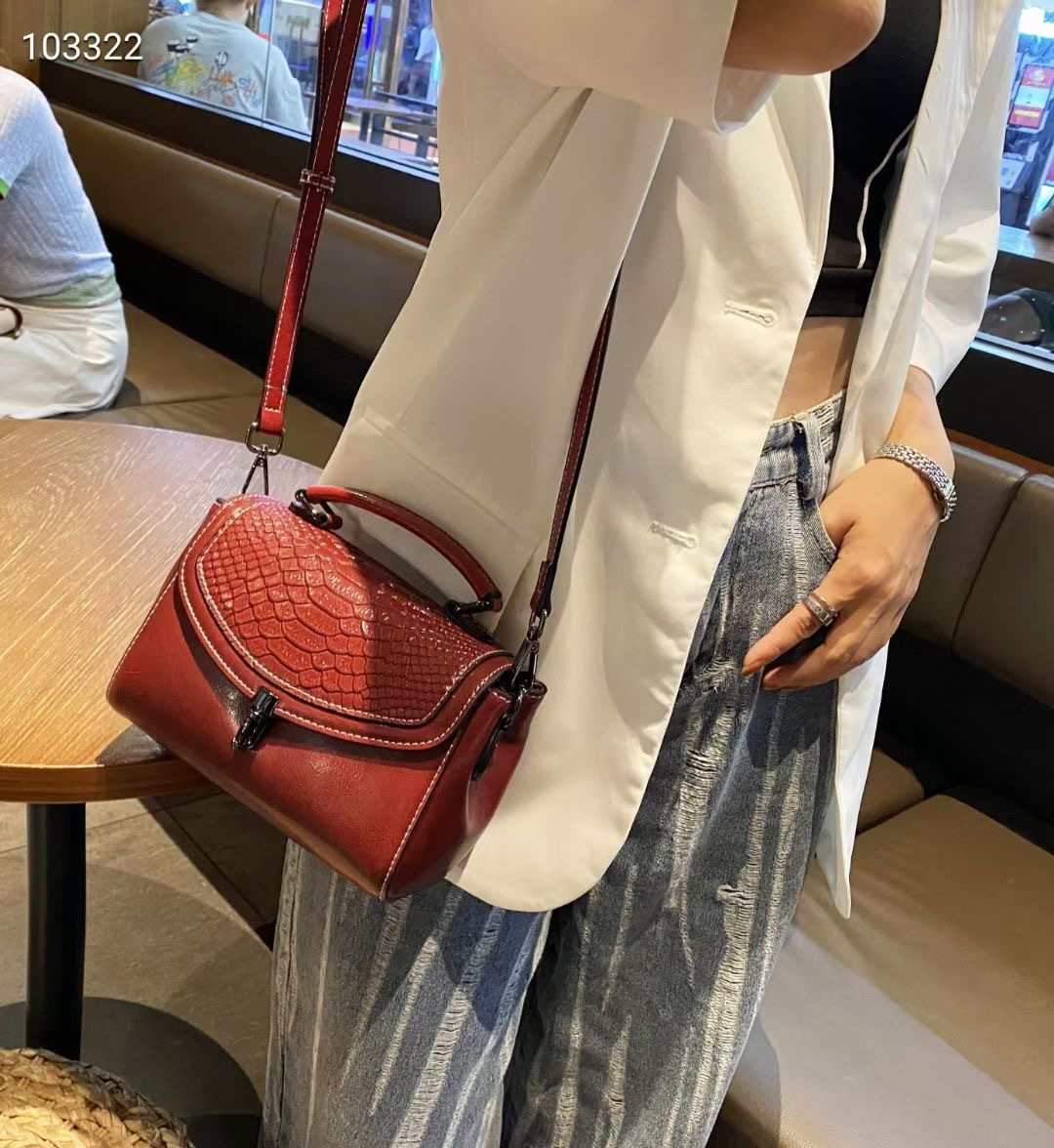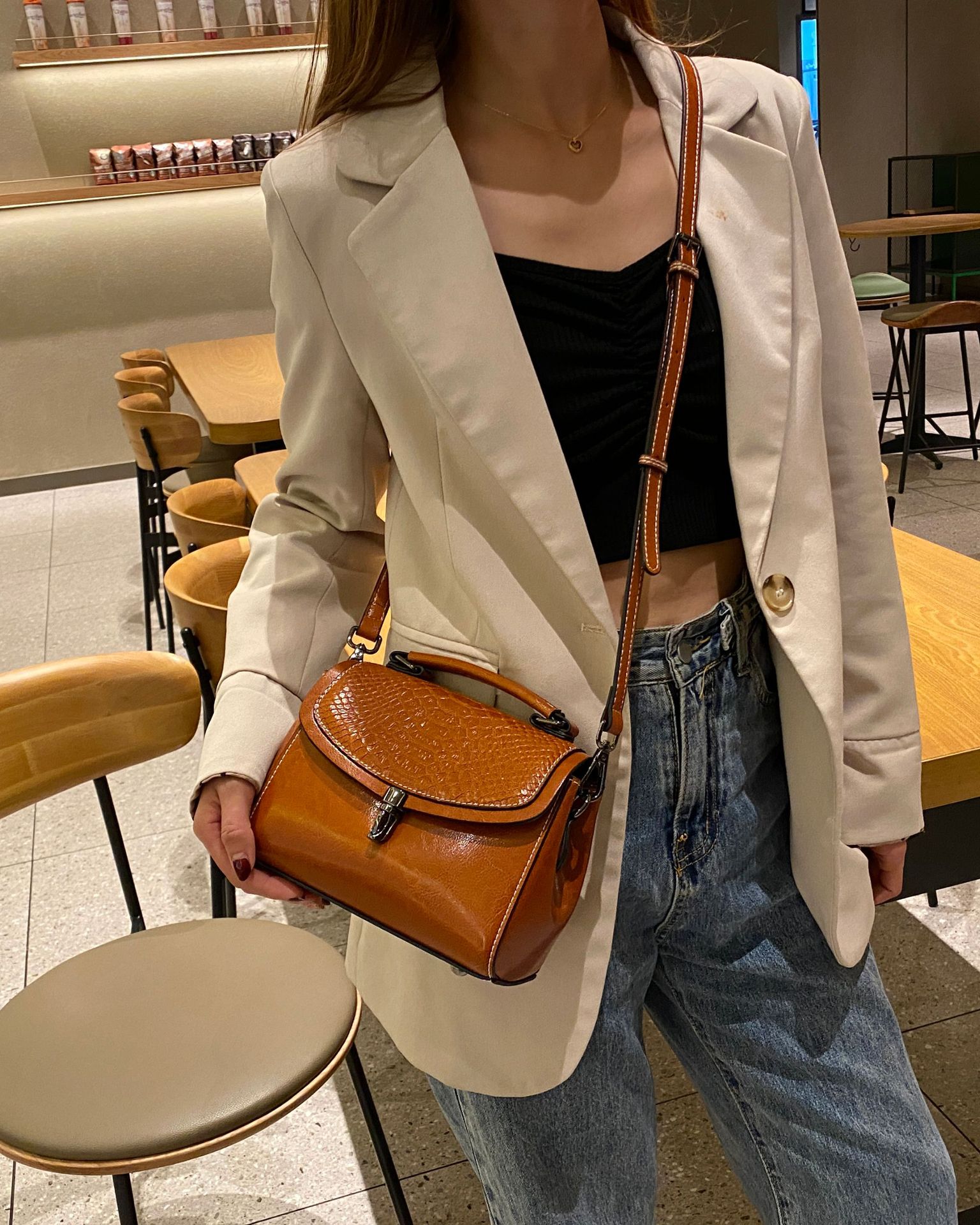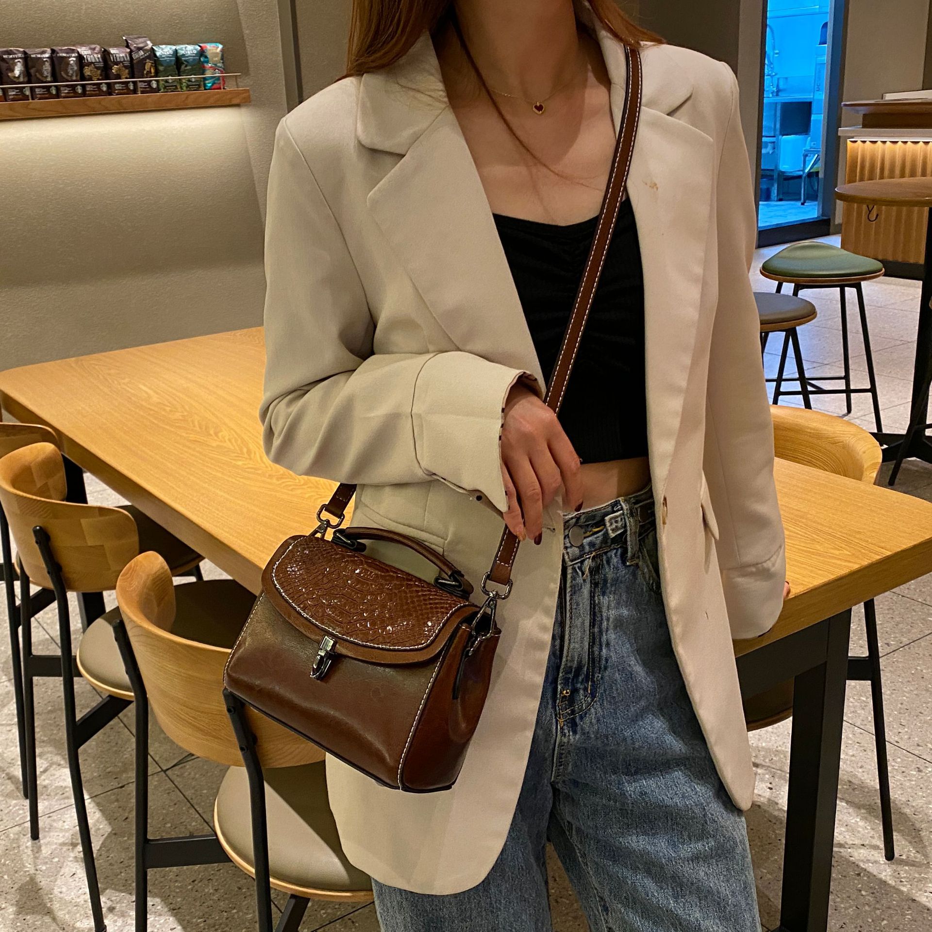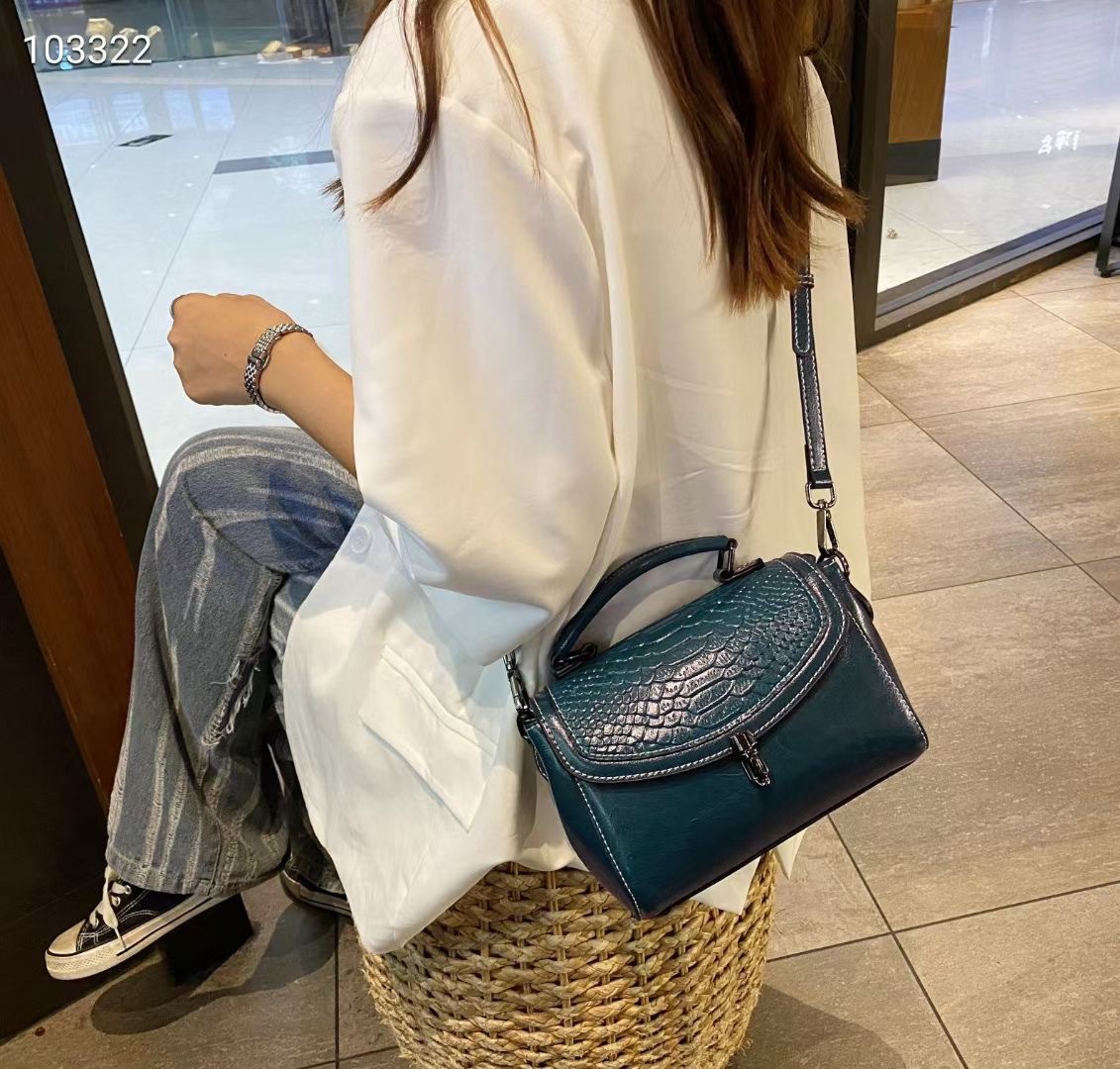 跨境鳄鱼纹皮手提包 二层牛皮单肩斜挎女包 工厂批发油蜡皮翻盖包