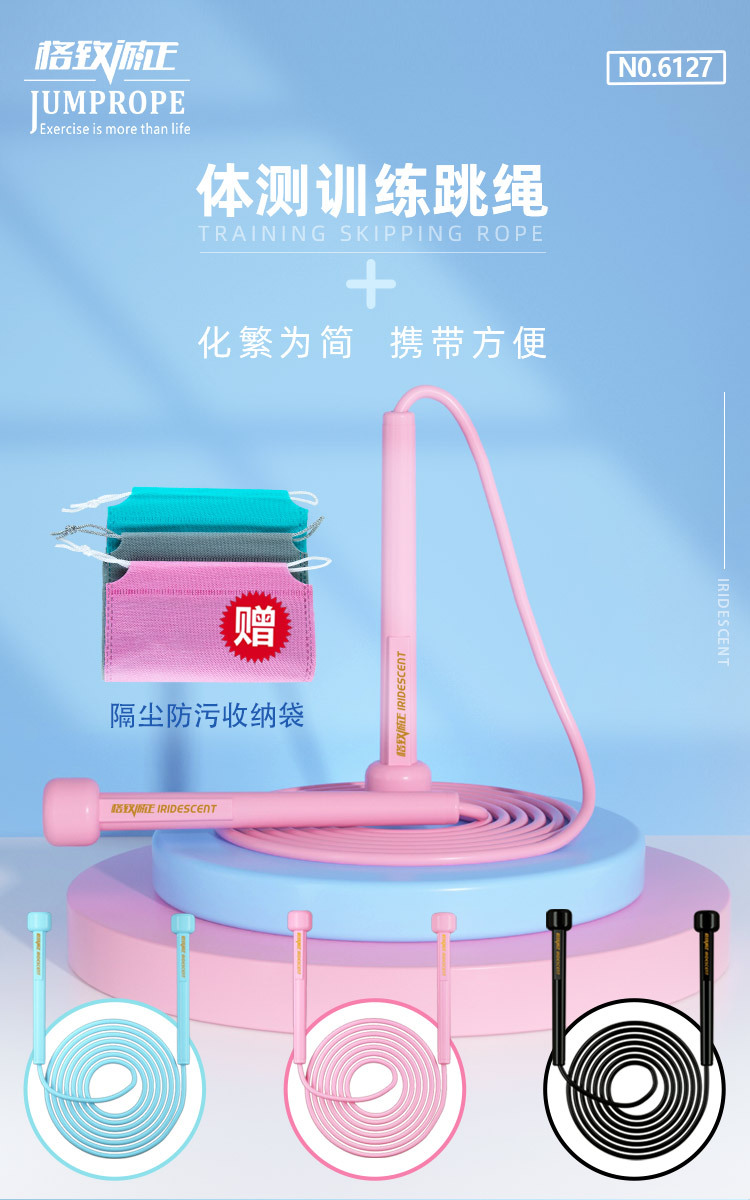 格致6127健身跳绳沙式跳绳赠收纳袋轻便可收纳学生考试训练跳绳