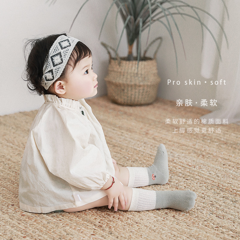 宝宝袜子春秋新生婴儿袜子初生婴幼儿0-6个月松口无骨儿童中筒袜