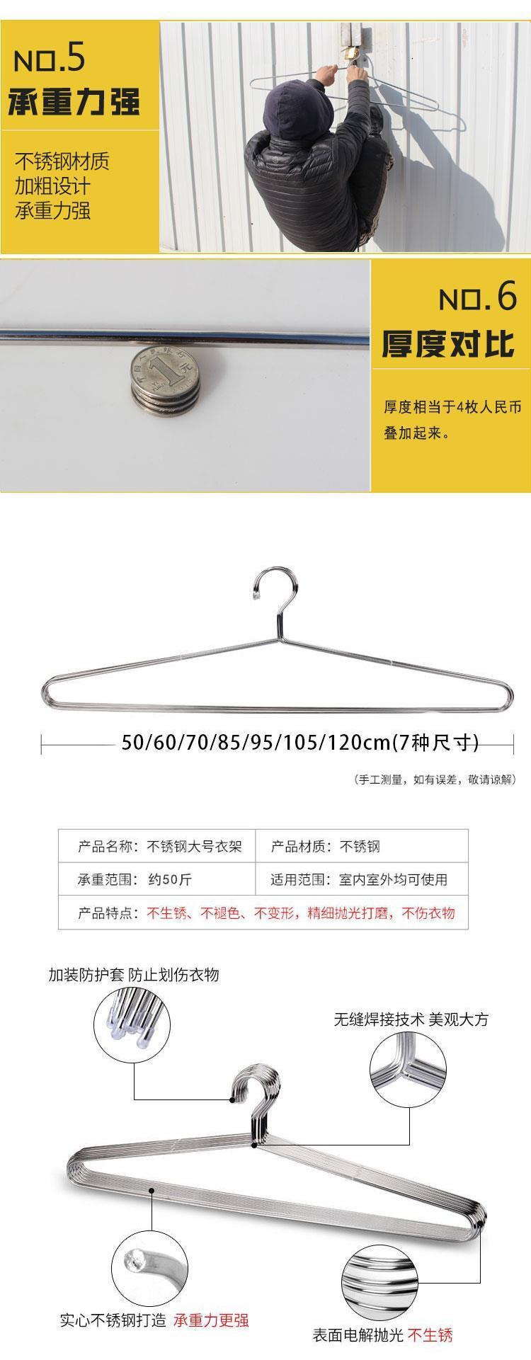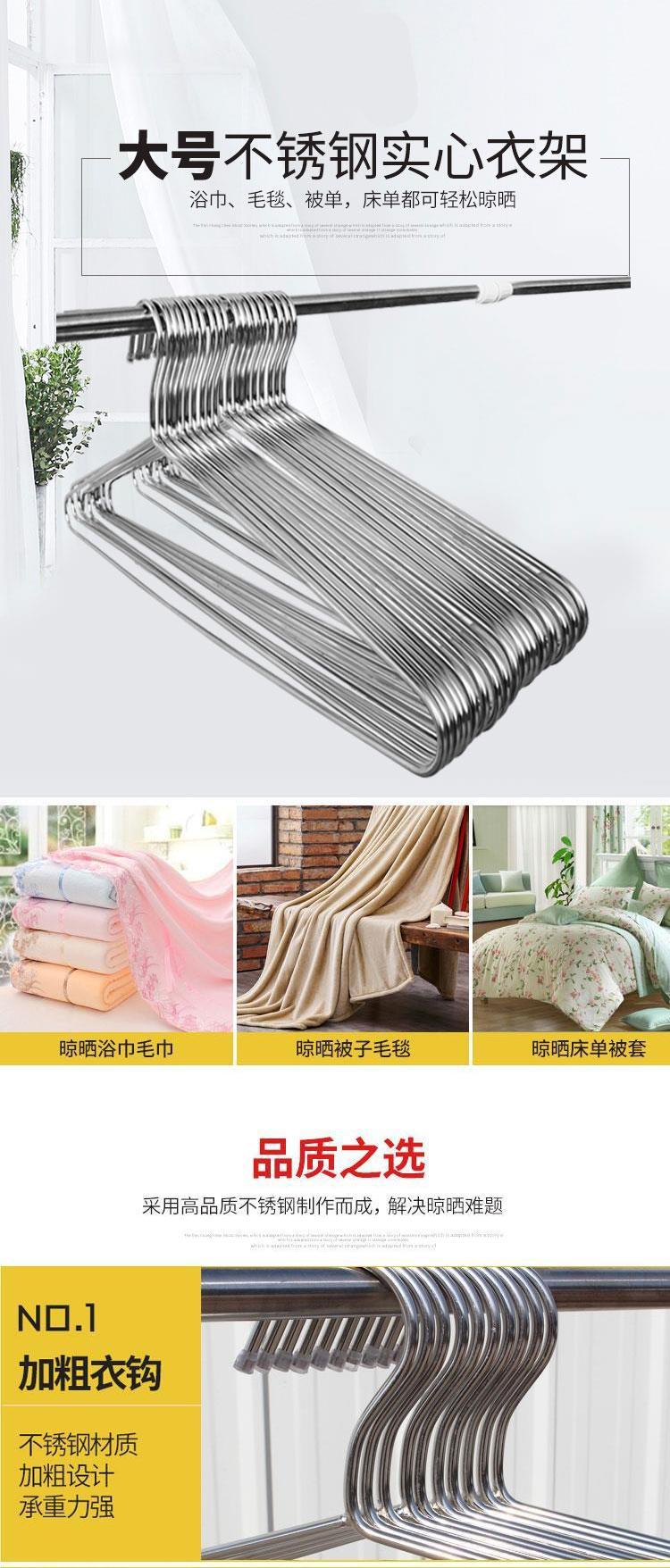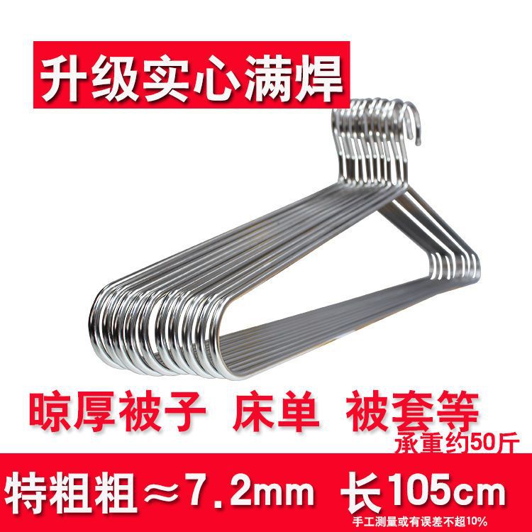不锈钢大衣架加粗实心晒被子床单加大号衣撑晾晒浴巾衣架大长被套