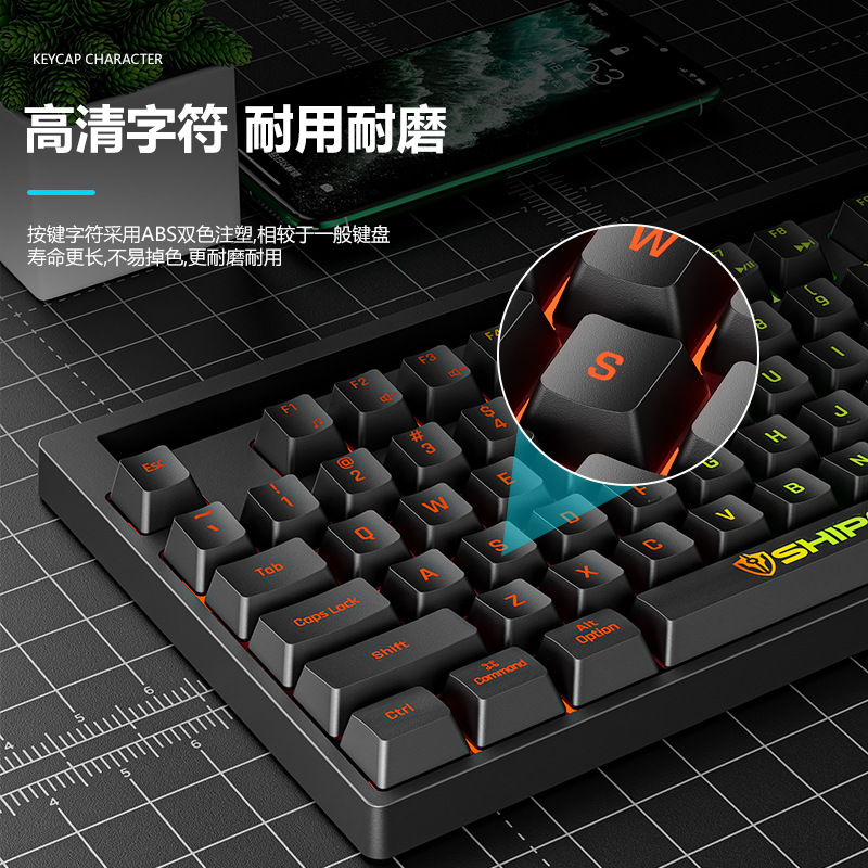 十八渡机械手感键盘有线87键字体发光笔记本电脑电竞游戏办公打字