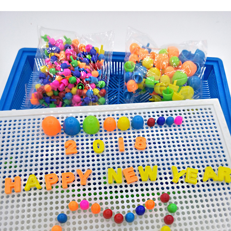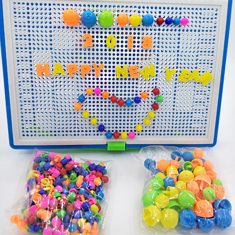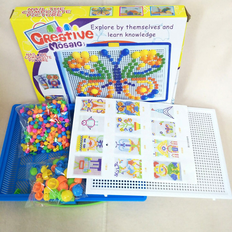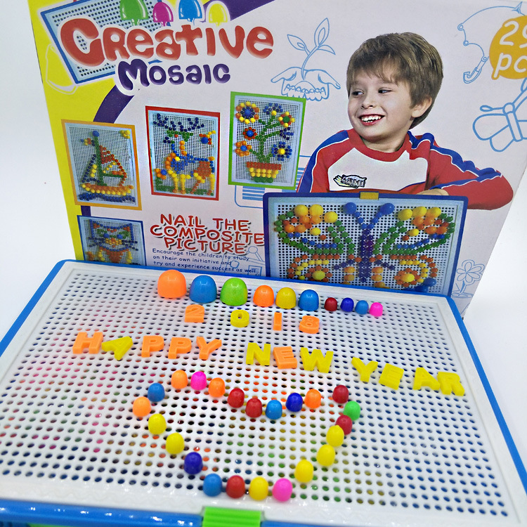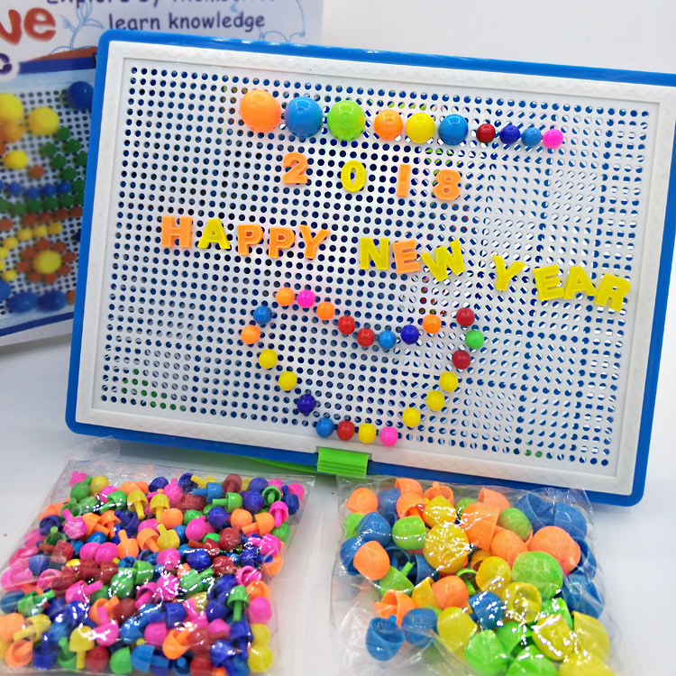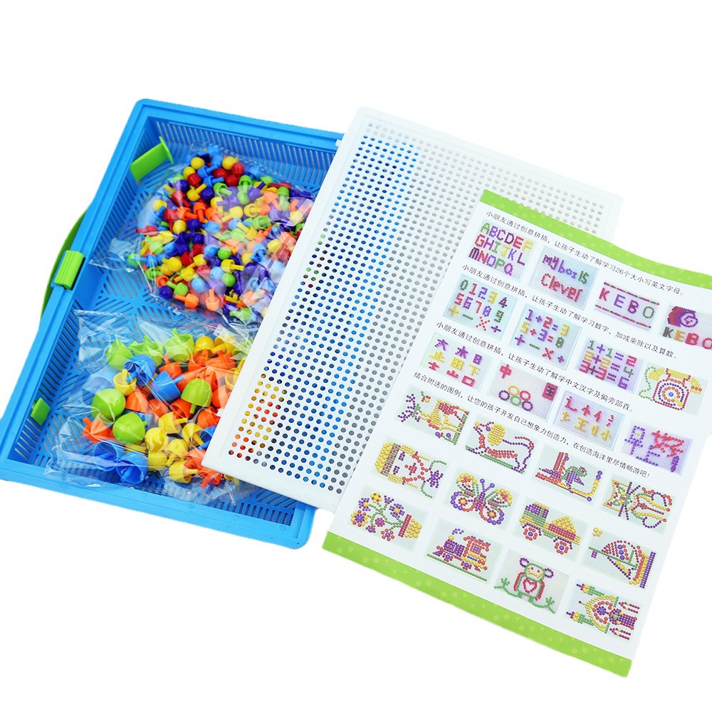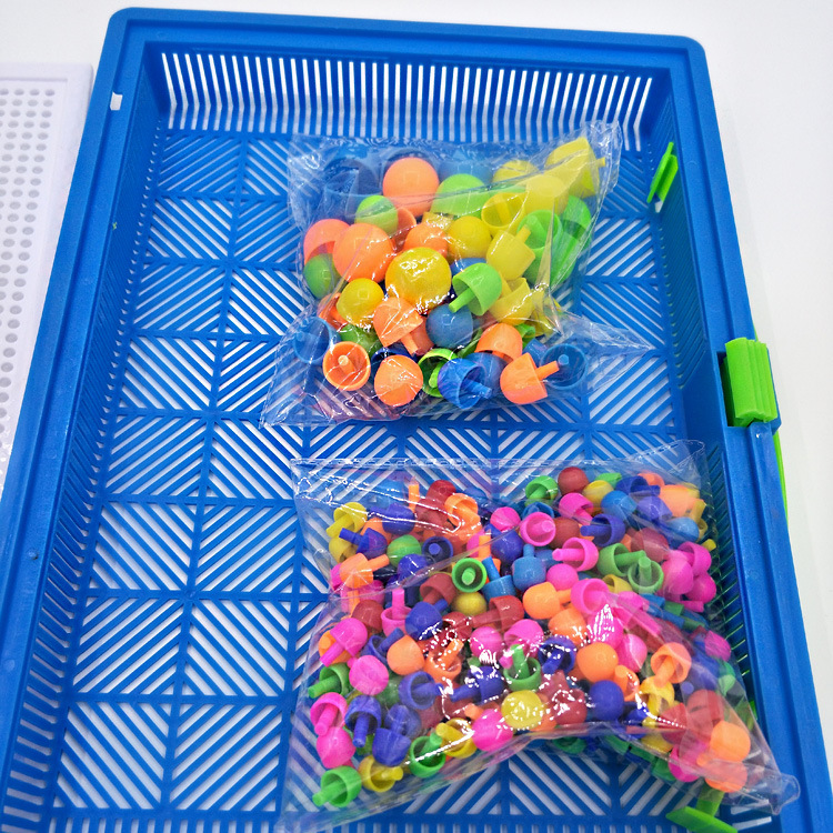 创意296粒蘑菇钉儿童智力组合拼插板玩具拼图积木 早教益智 盒