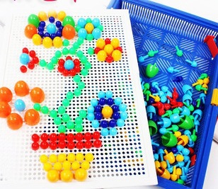 拼插是一种宝宝喜爱的玩具,也是开发宝宝智力的好工具,是爸爸妈妈为孩子成长必备的玩具。够锻炼他们的手的灵活性及手眼协调能力,蘑菇钉中的排列,接合,环形,对称等都对孩子的智力有好处。拼插蘑菇钉时,孩子一定要涉及到比例,对称等问题,这就有利于孩子数概念的早期培养。积木有利于孩子发挥想象,综合运用不同的积木共同搭建实物造型,有利于他们想象力和创造力的培养。而且蘑菇钉的拼插是一个耐心和细致的工作。可以磨练孩子的性格