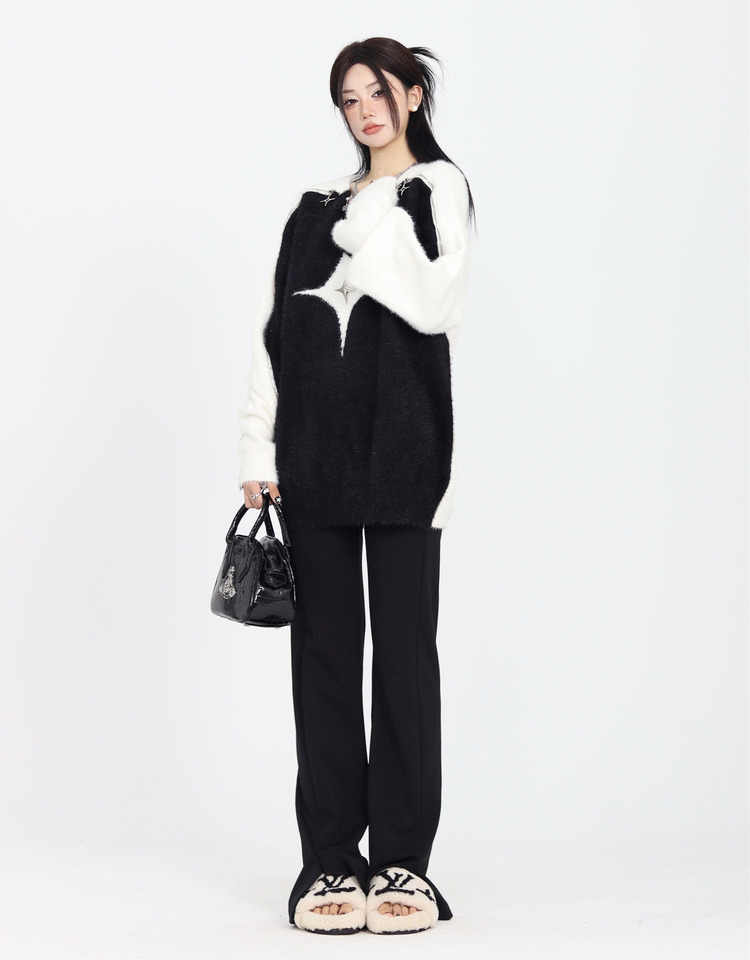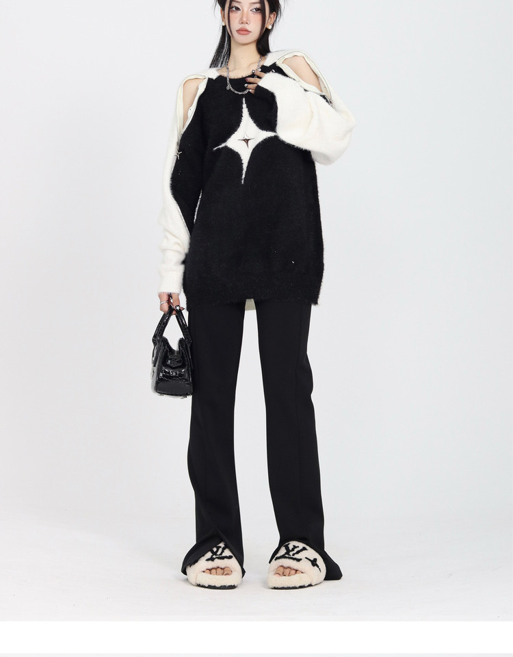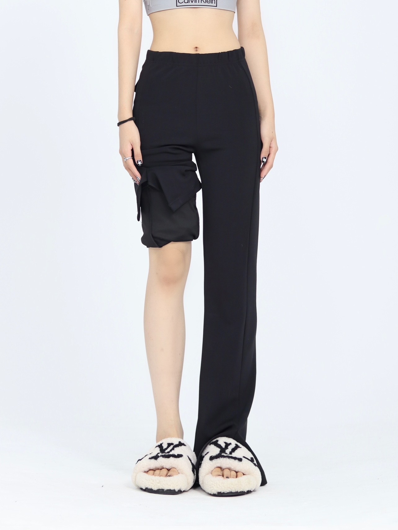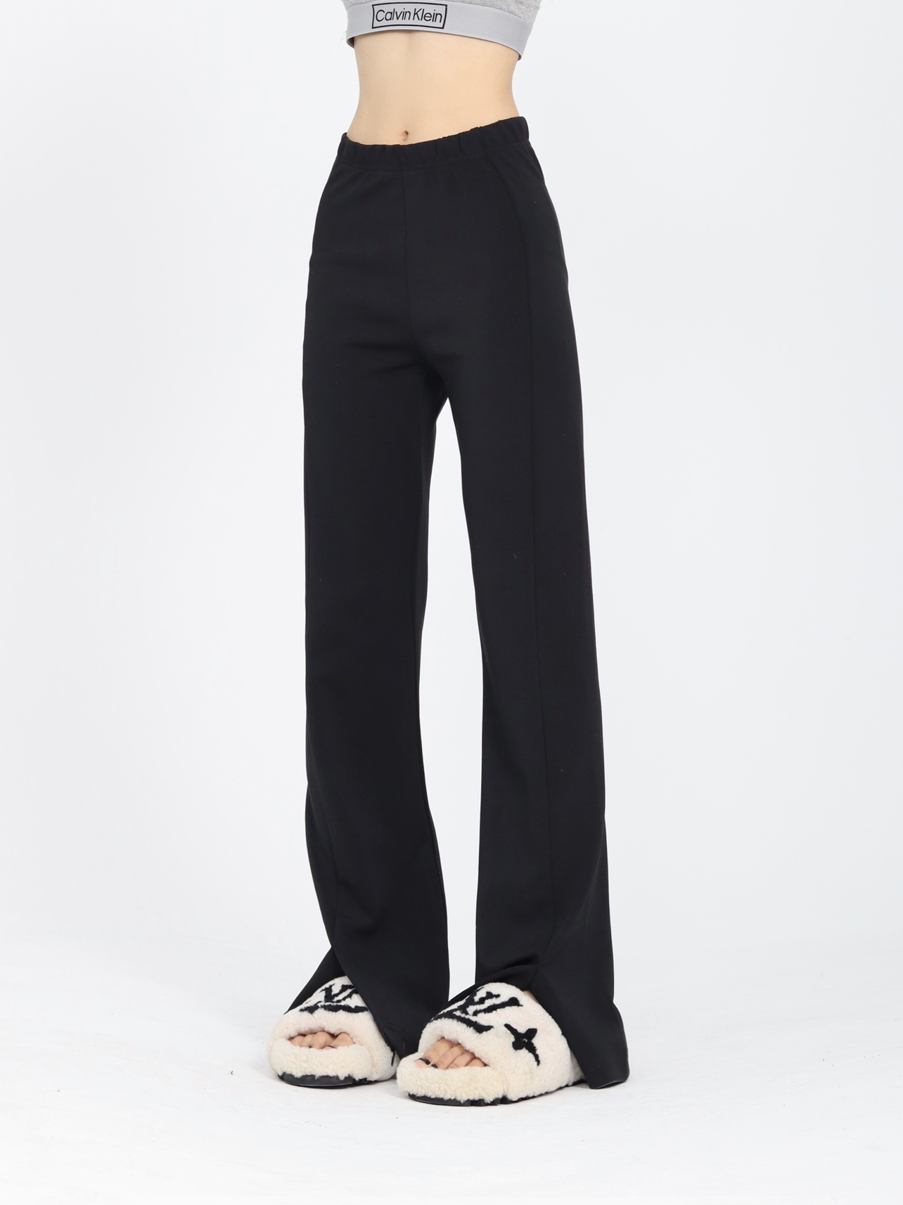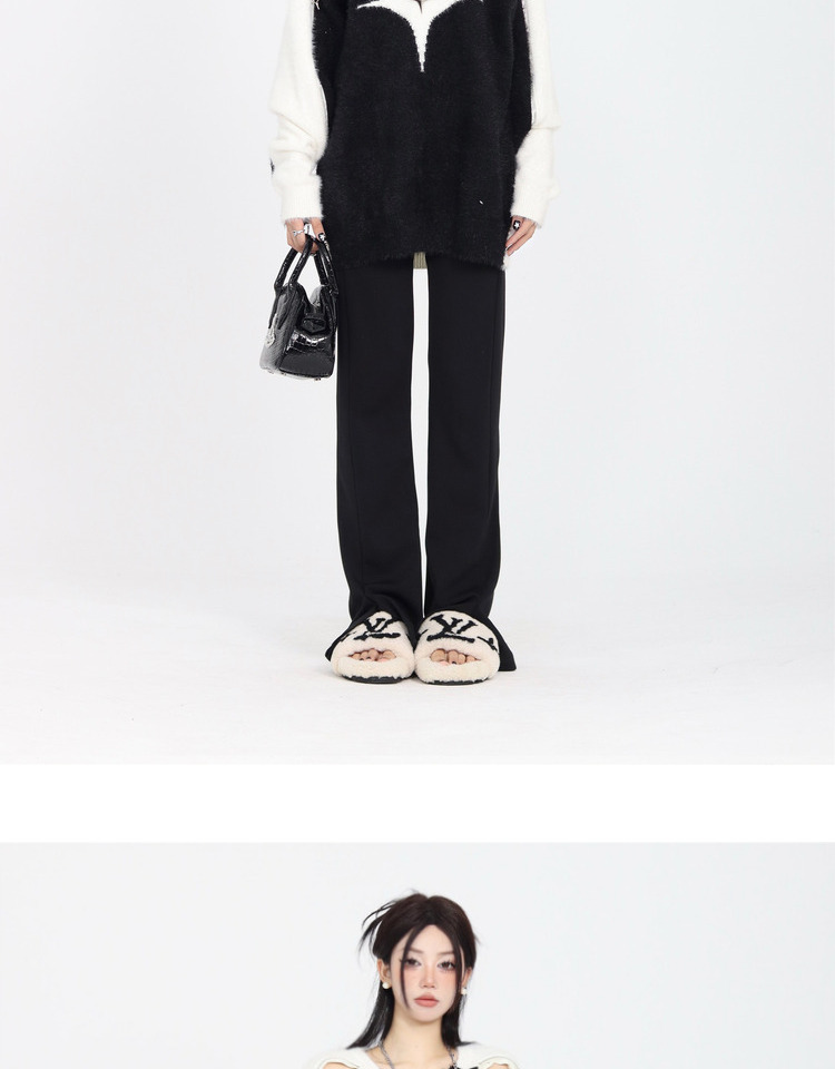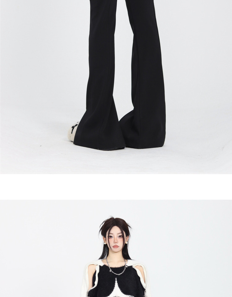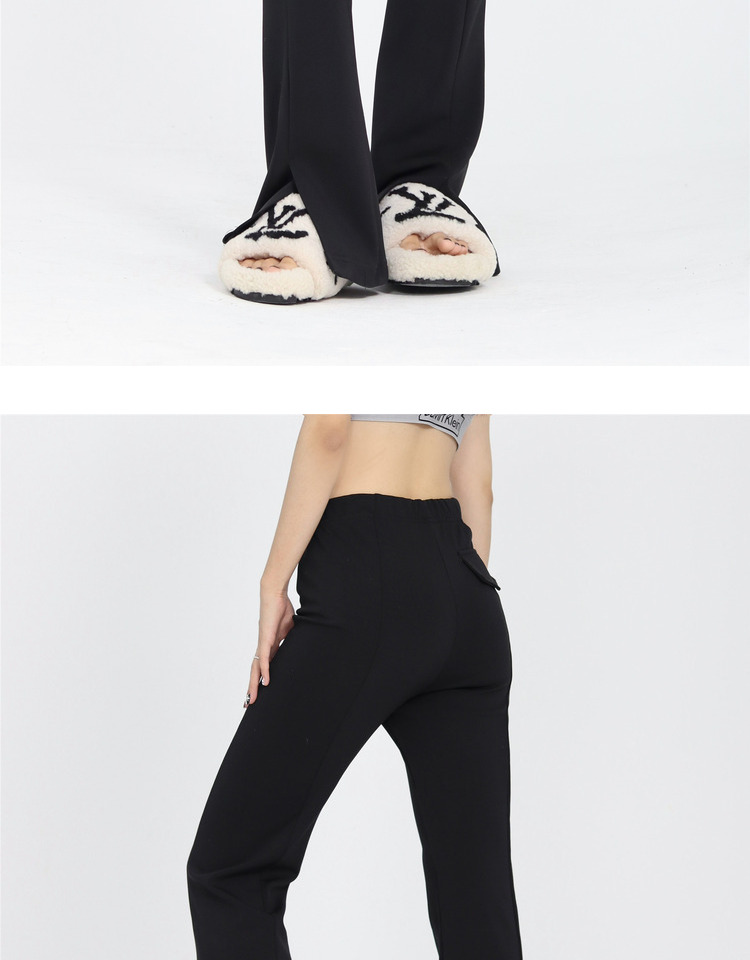 ZZHenL 巨巨巨顯瘦辣妹子彈力修身微喇叭開叉長褲垂感顯腿長休閒
