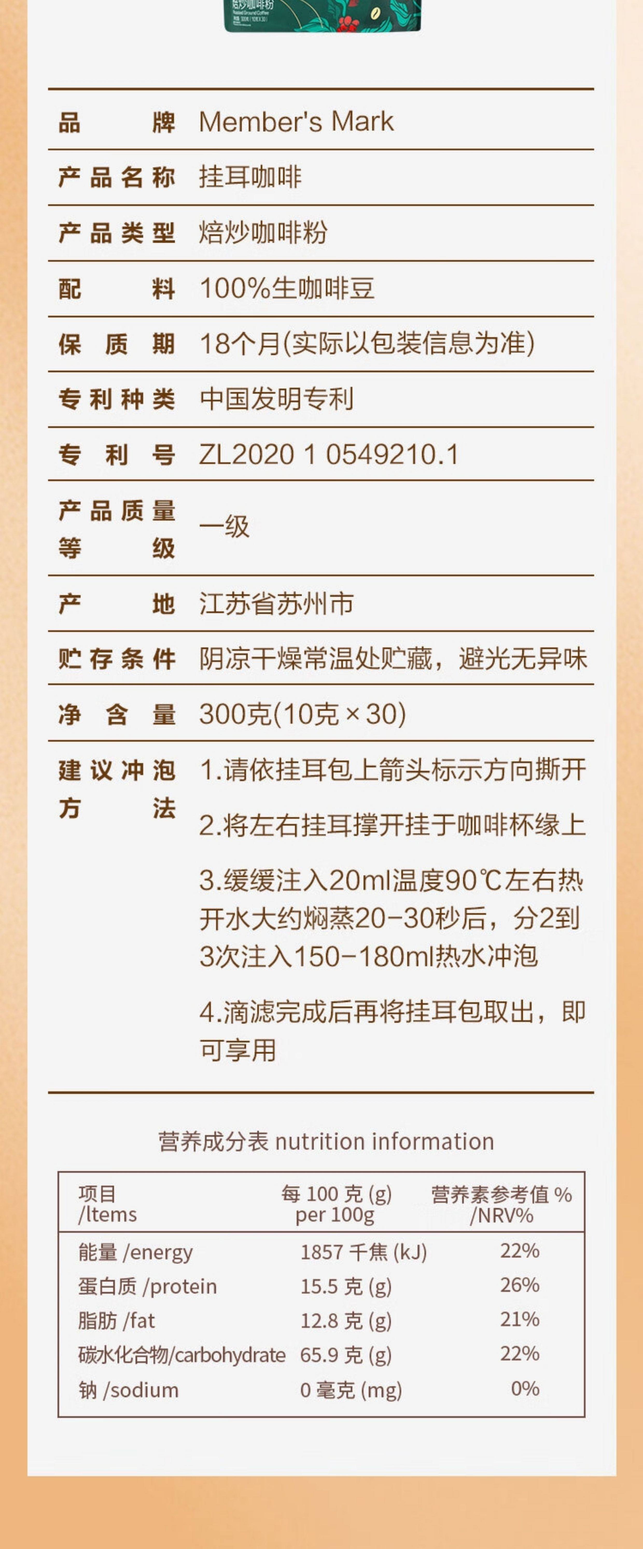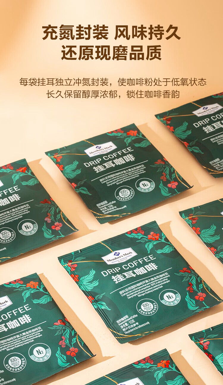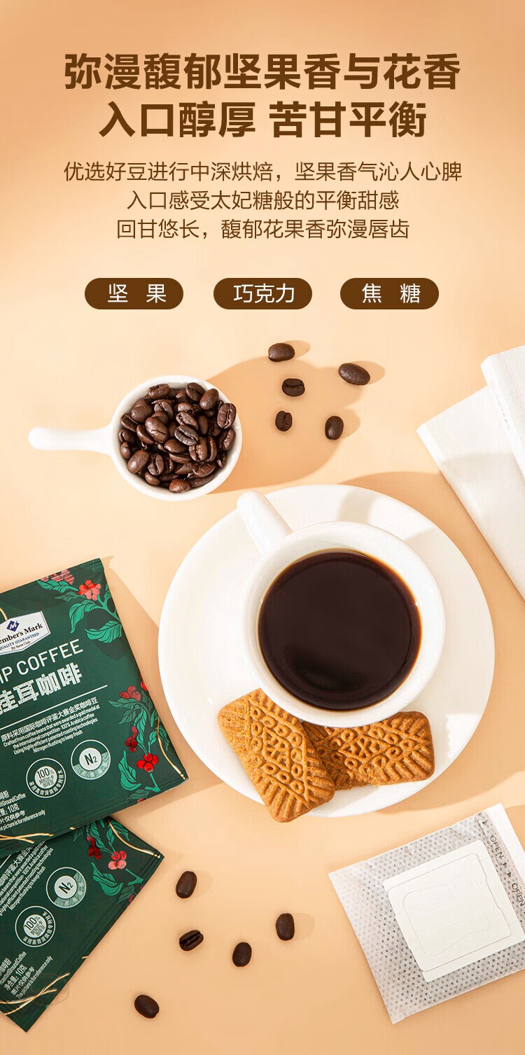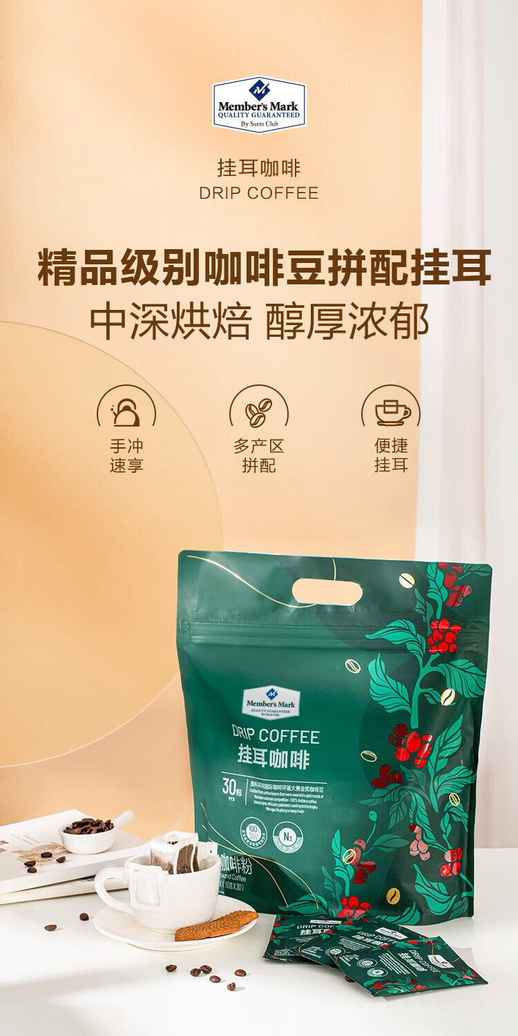 山姆會員超市耳掛咖啡速溶咖啡粉中深烘焙咖啡豆沖泡飲料袋裝30包代購
