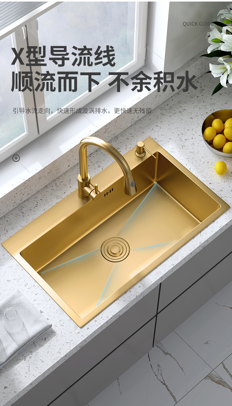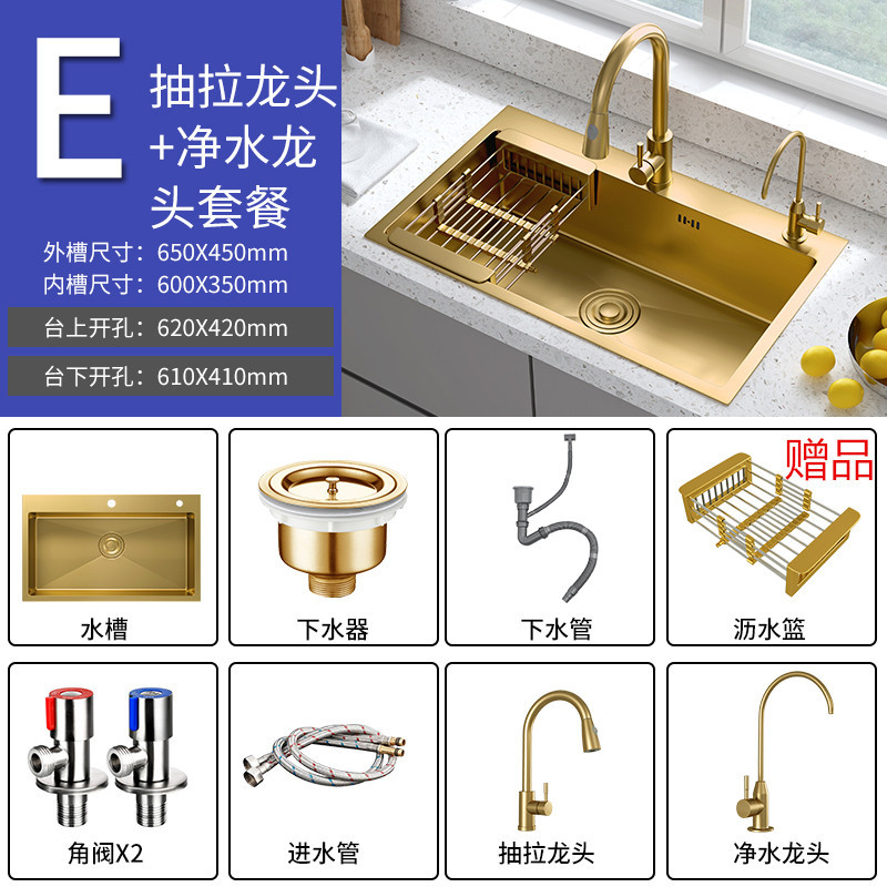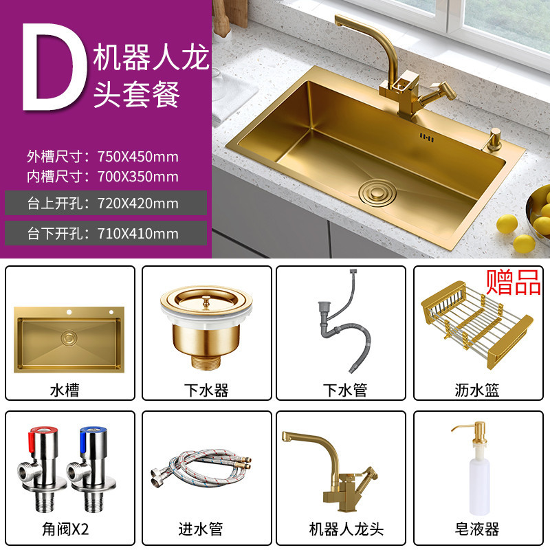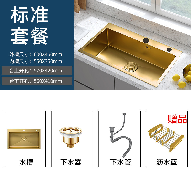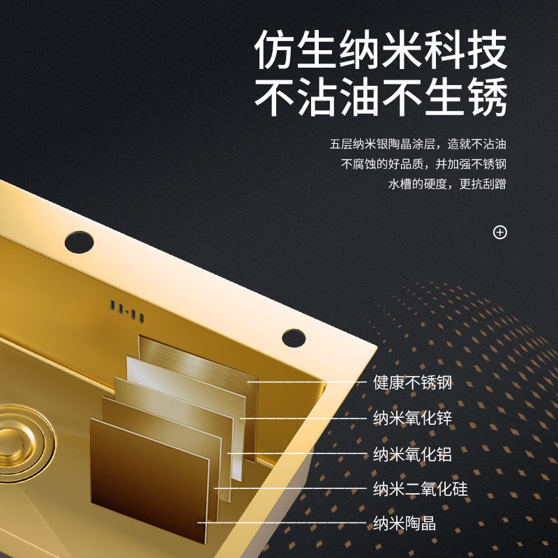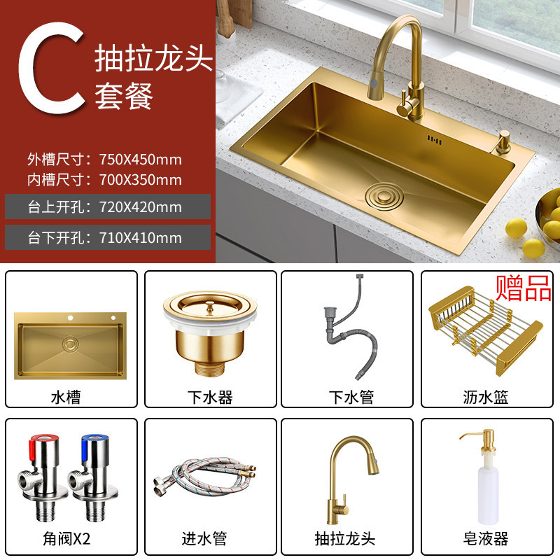 K6WY批发纳米金色304不锈钢水槽厨房台下洗菜盆大单槽手工家用洗