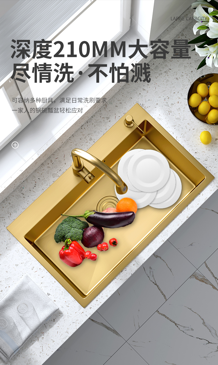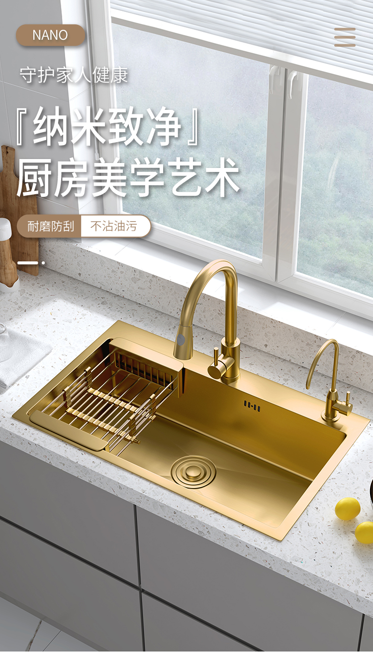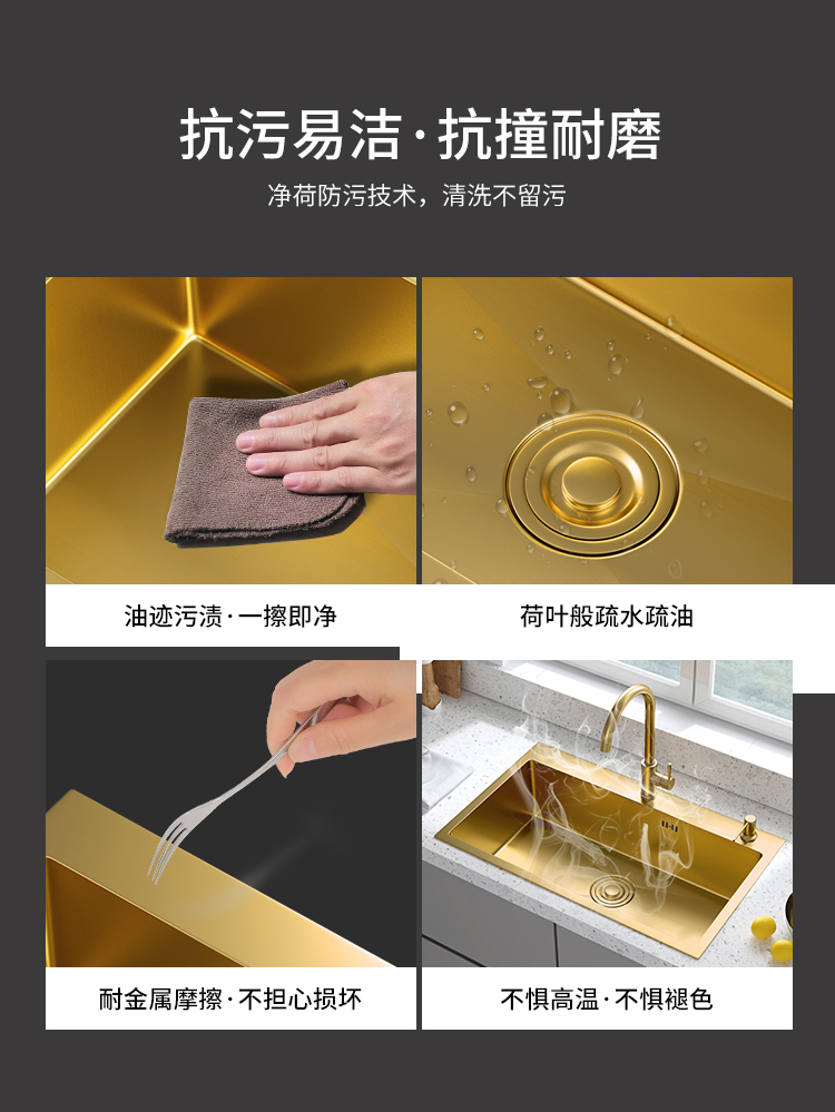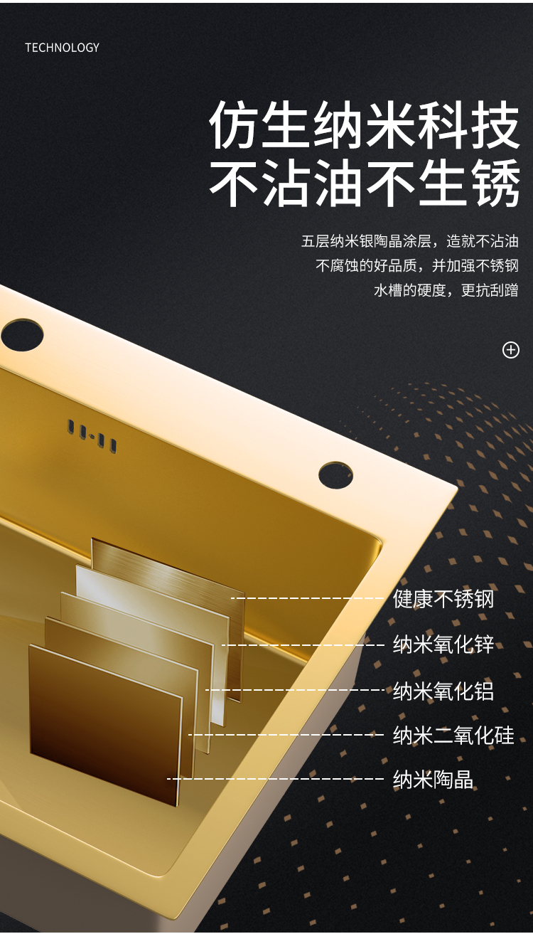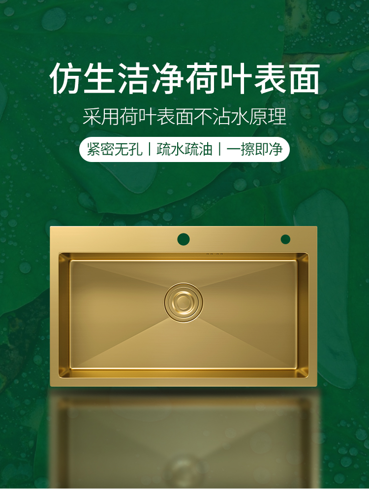 K6WY批发纳米金色304不锈钢水槽厨房台下洗菜盆大单槽手工家用洗