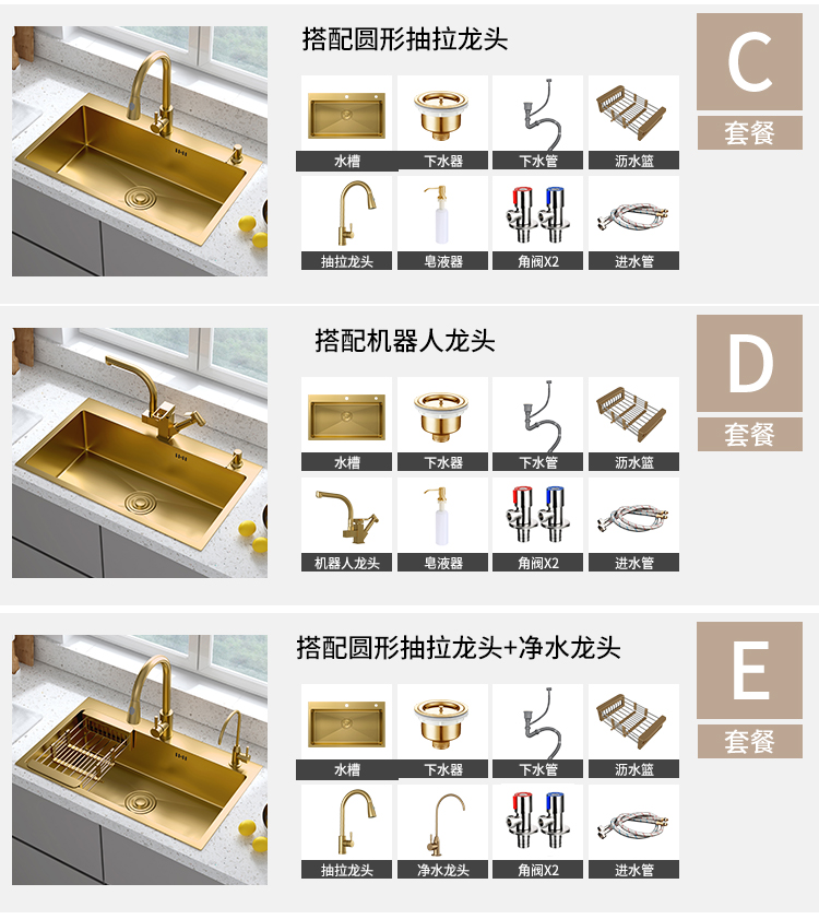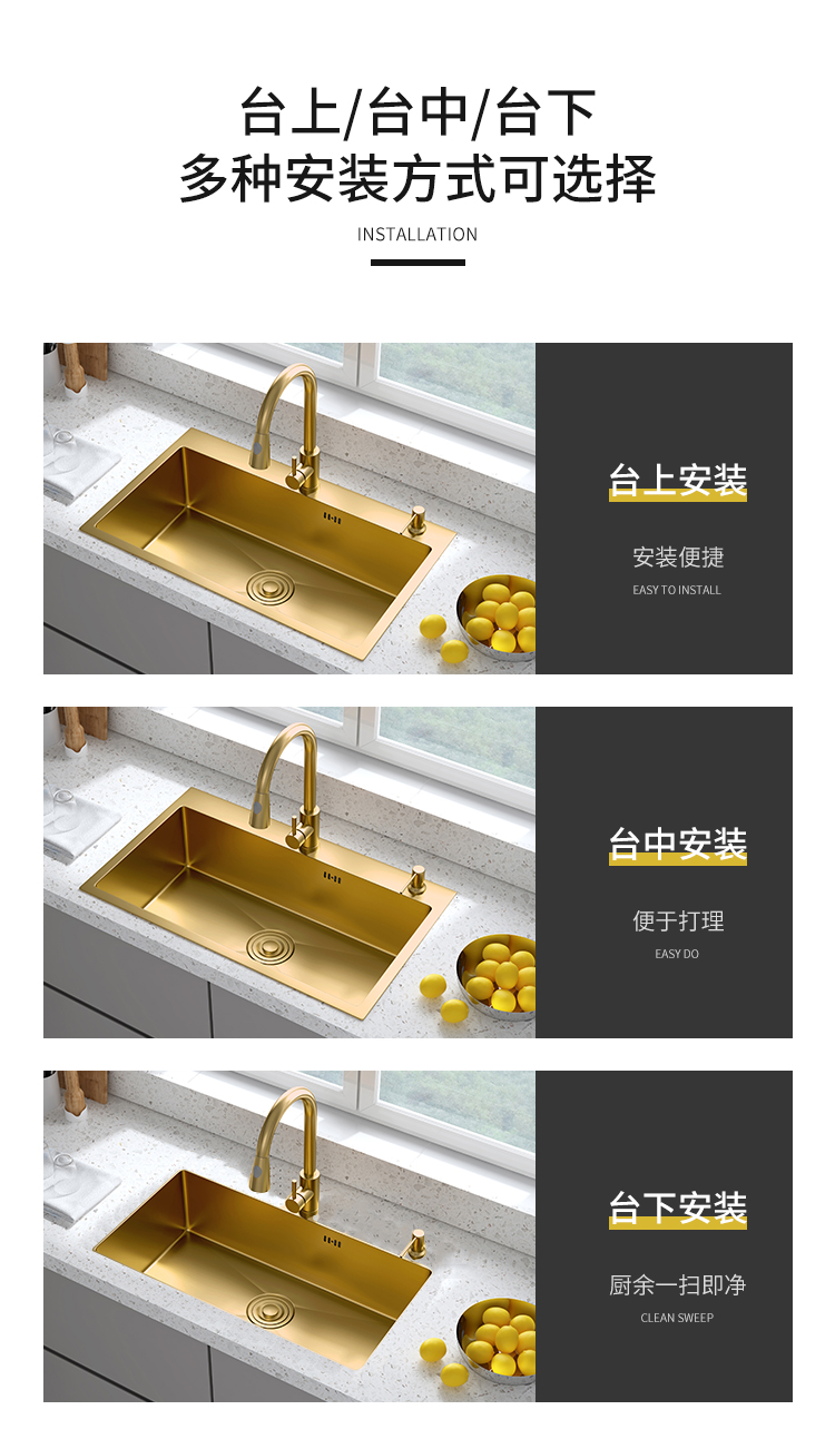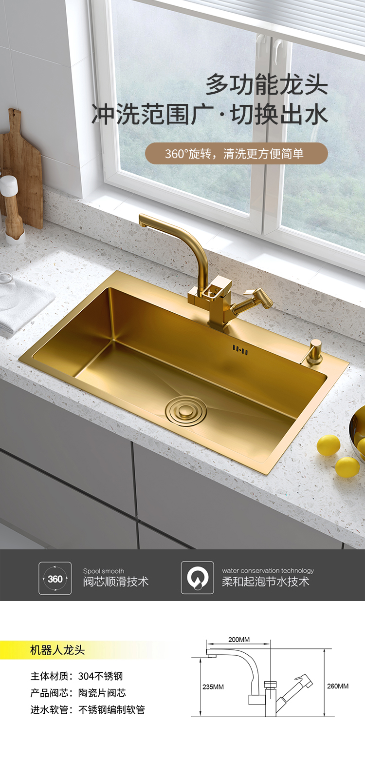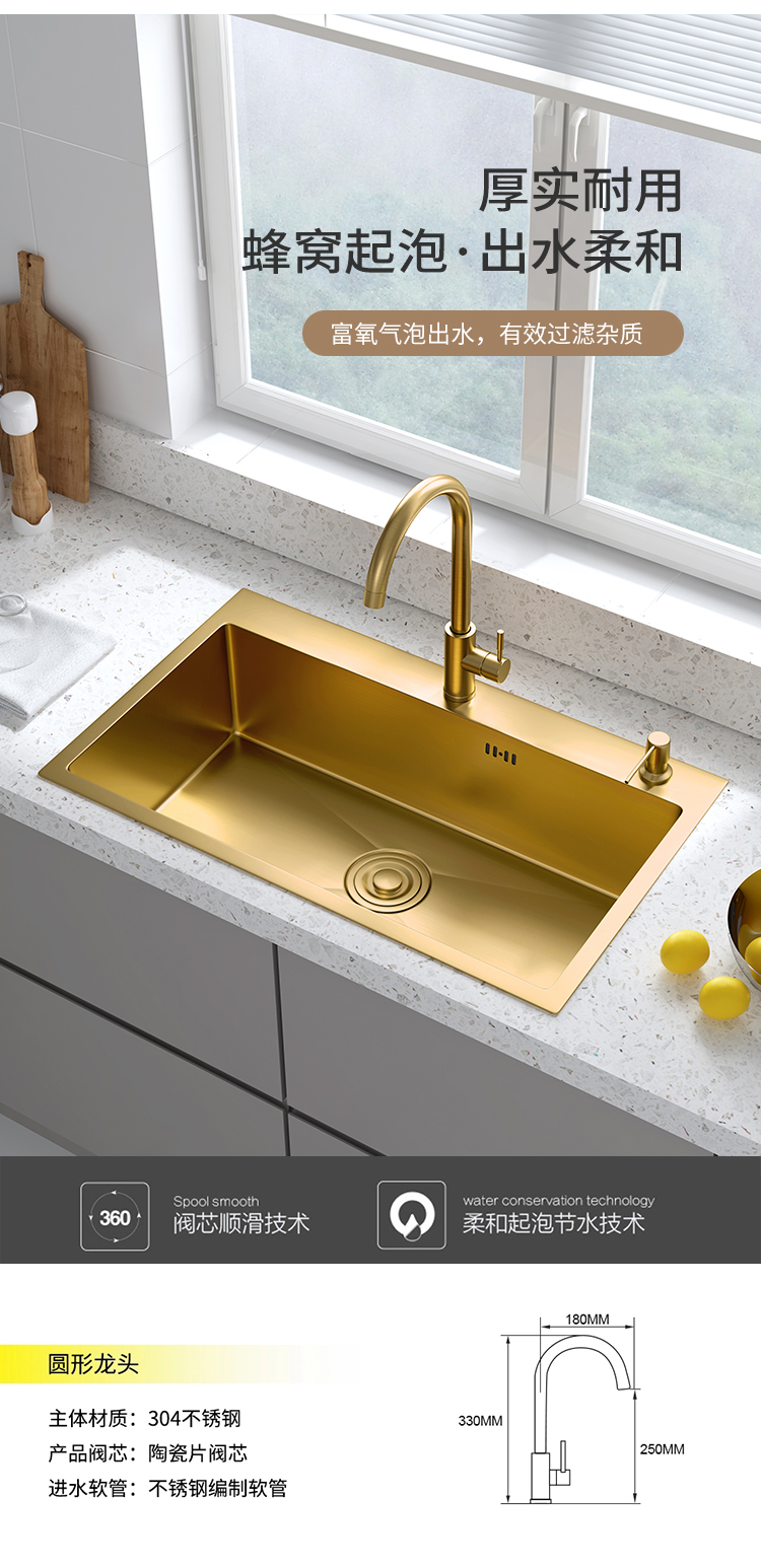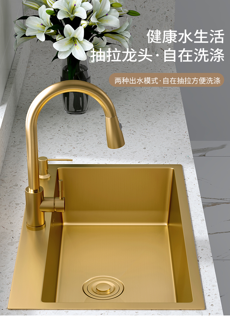 K6WY批发纳米金色304不锈钢水槽厨房台下洗菜盆大单槽手工家用洗