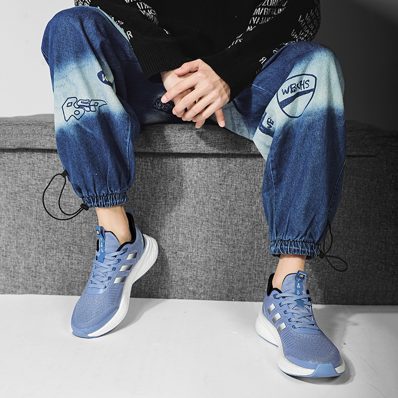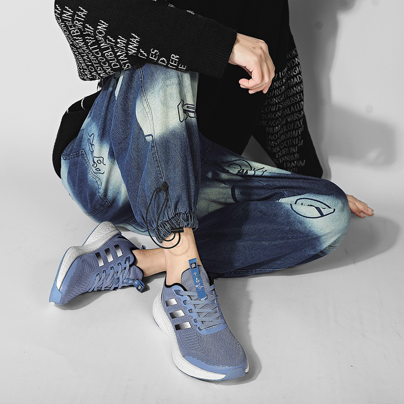 出口外貿百搭運動休閒男鞋男士輕便防滑減震跑步鞋爆米花軟底網鞋