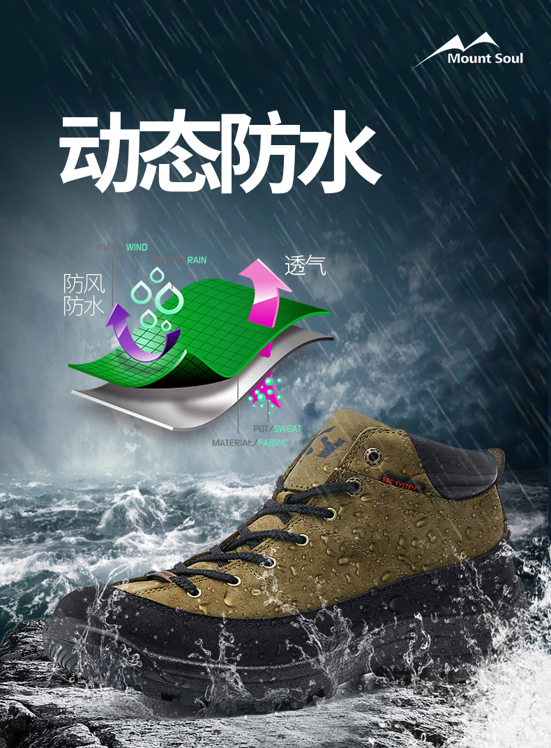 MountSoul山之魂低幫戶外男防水透氣防滑徒步鞋登山鞋旅行爬山鞋