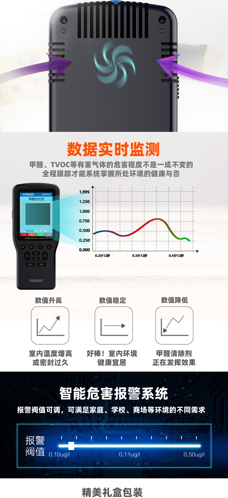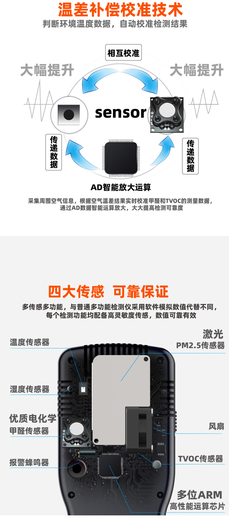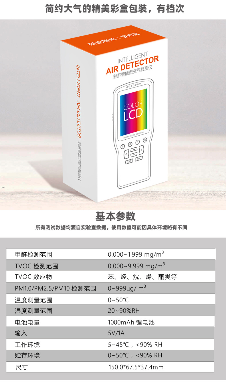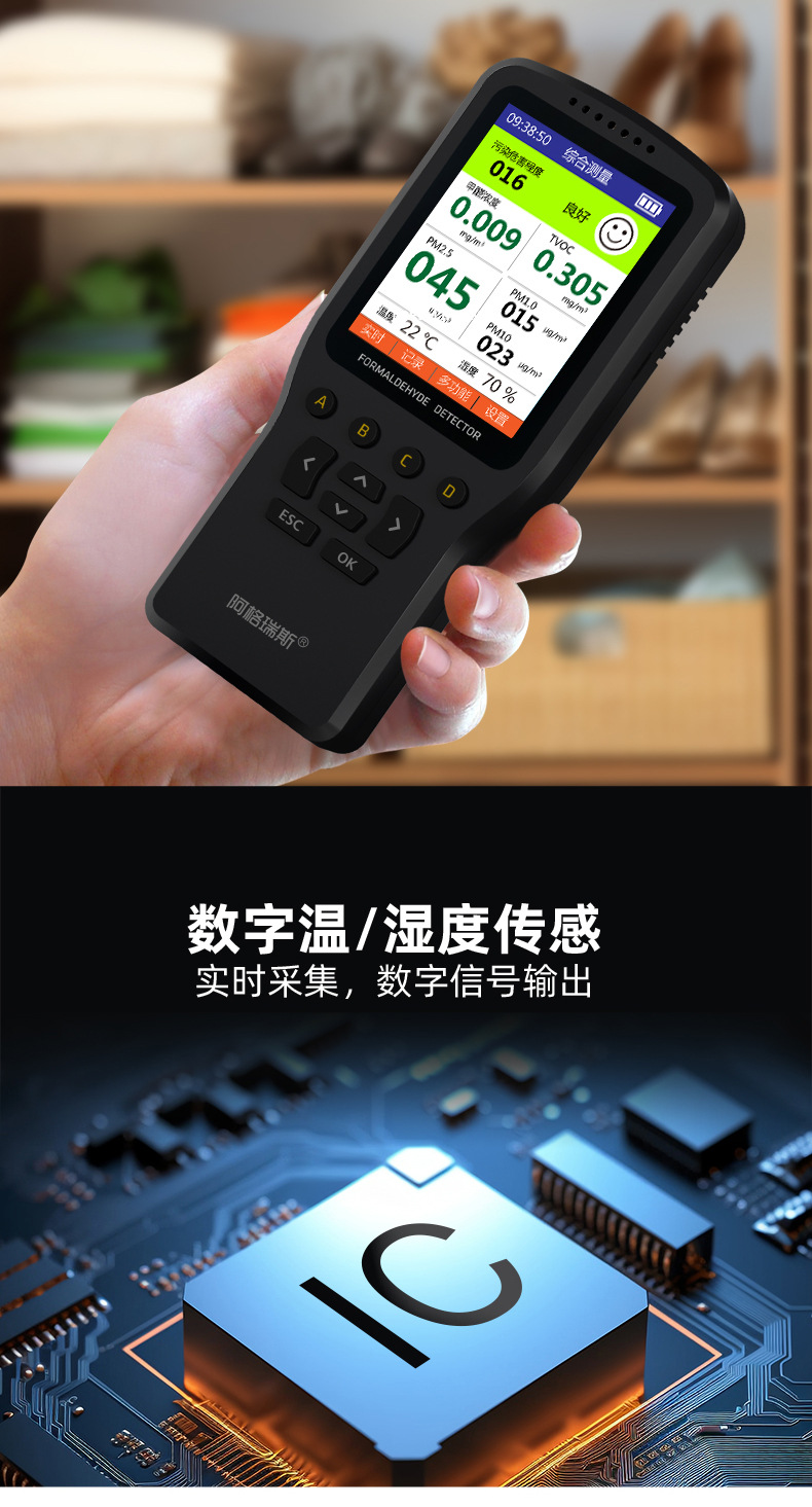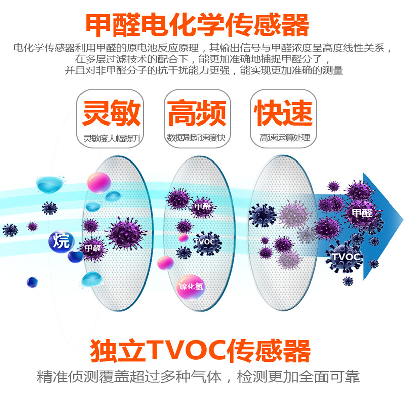 测量对象 空气中的甲醛和TVOC,PM2.5