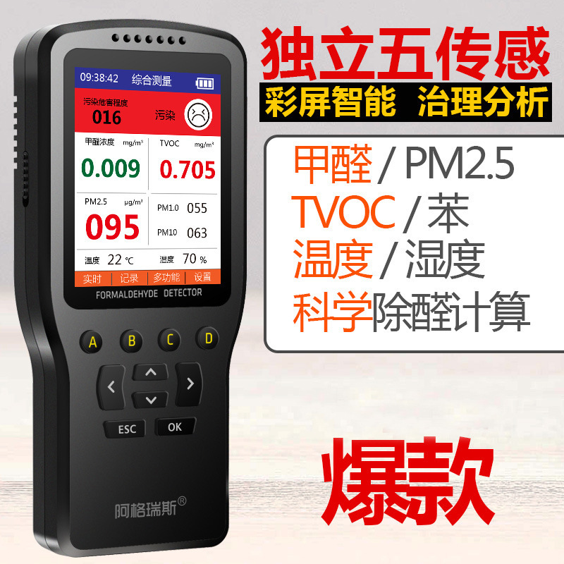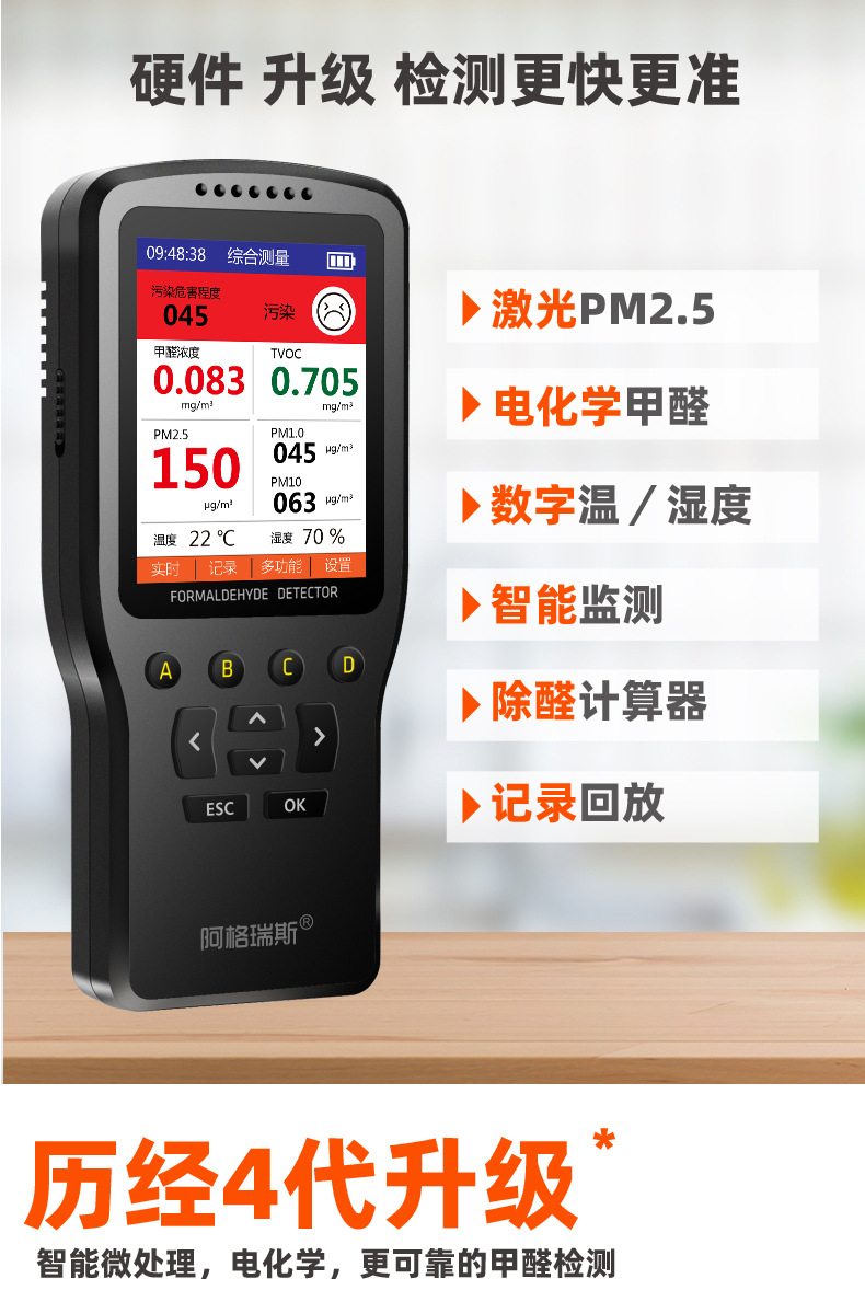 阿格瑞斯空气检测仪家用PM2.5室内专业质量监测雾霾表甲醛检测仪