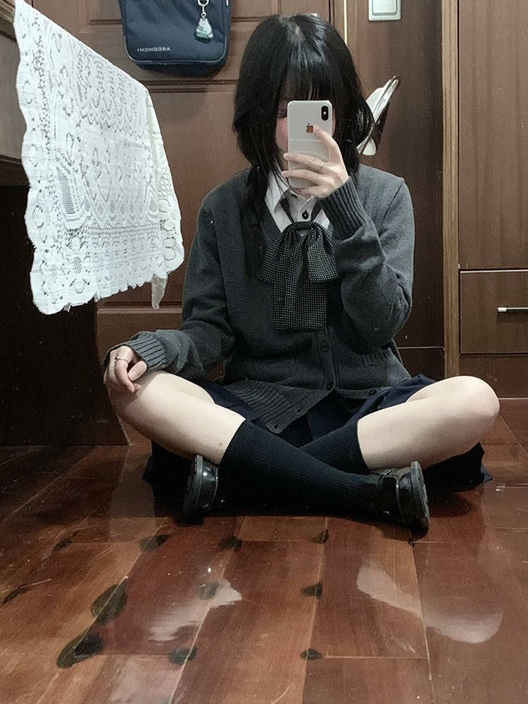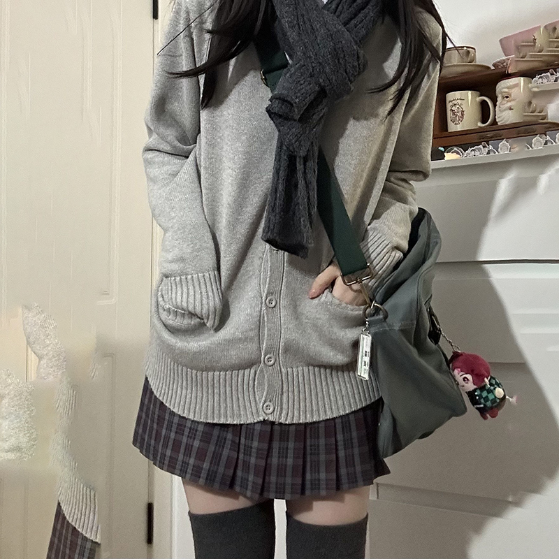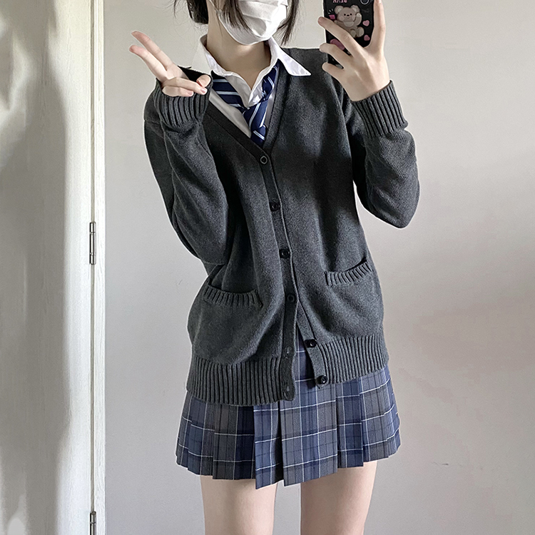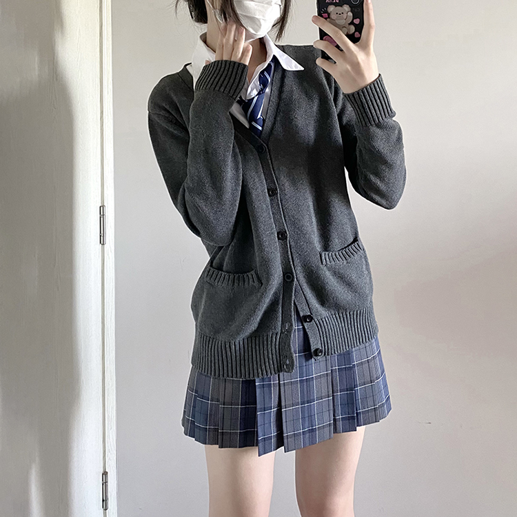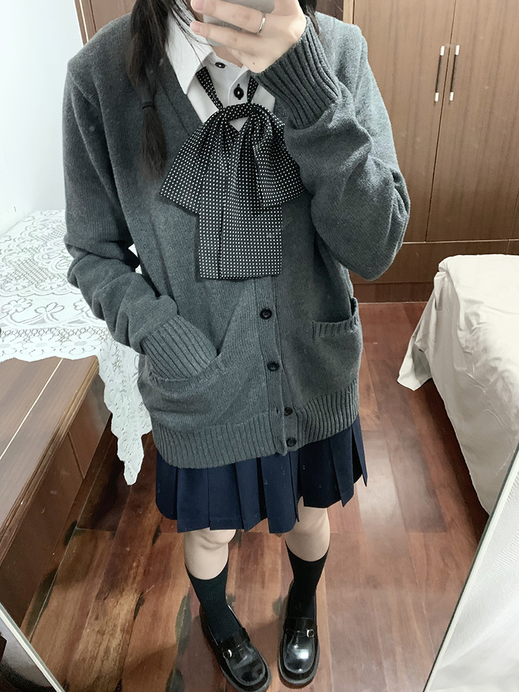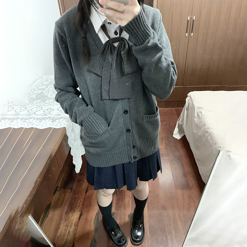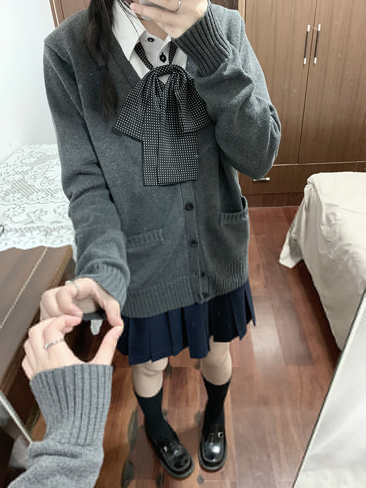 JK毛衣開衫外套女秋季日系學院風制服校供感深灰長袖針織上衣