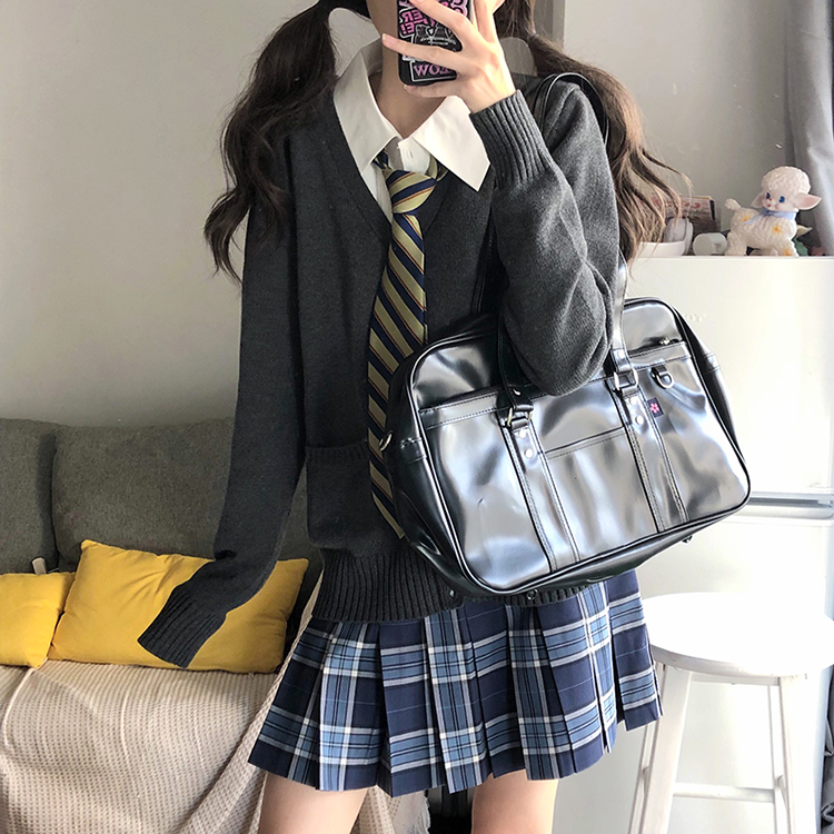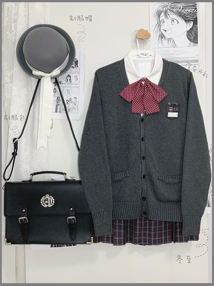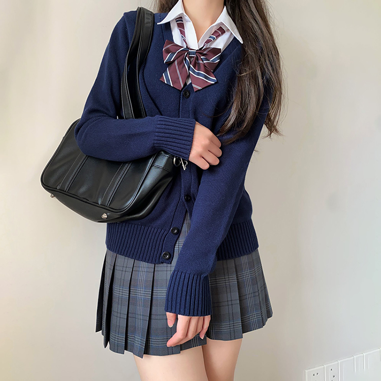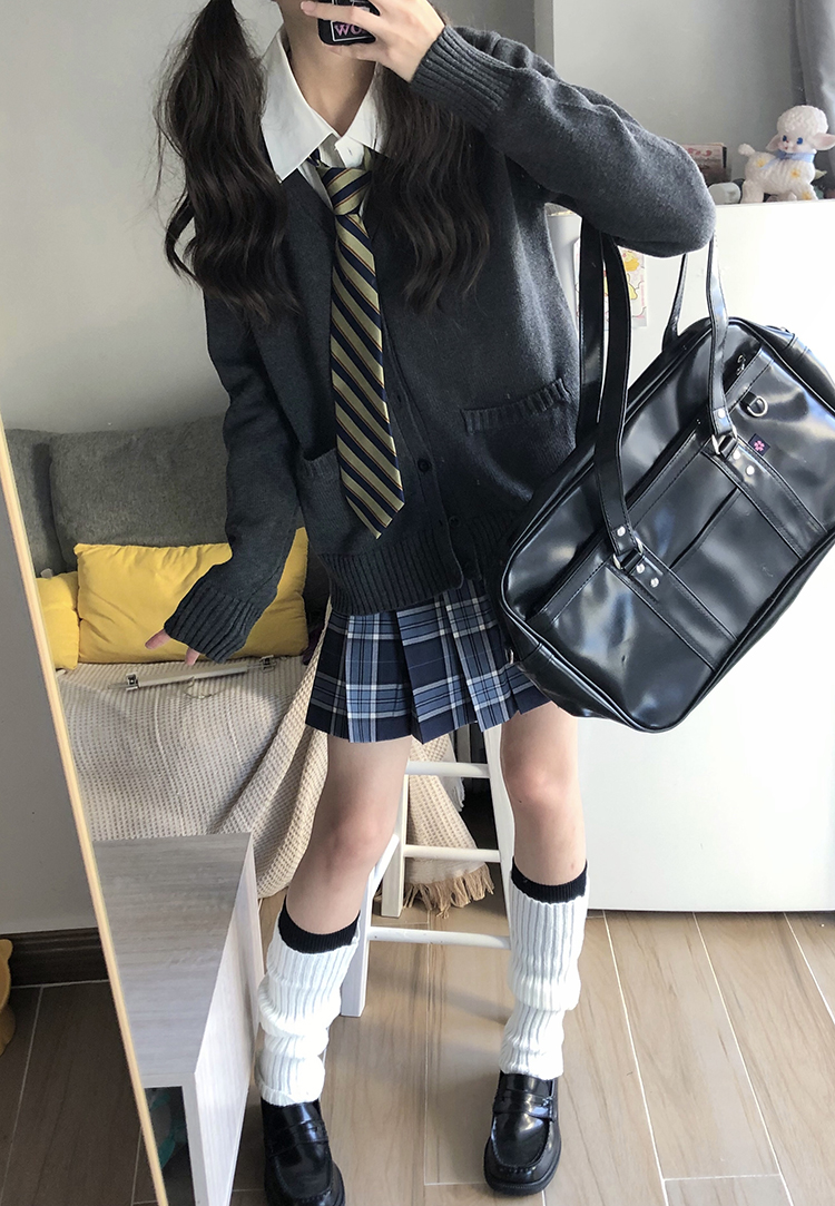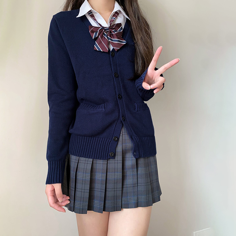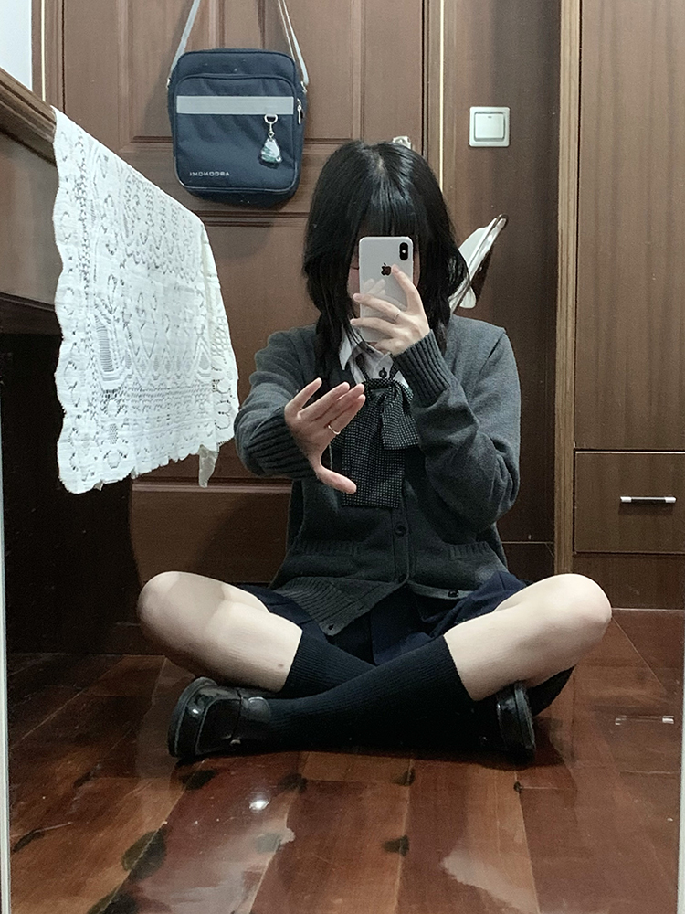 JK毛衣開衫外套女秋季日系學院風制服校供感深灰長袖針織上衣