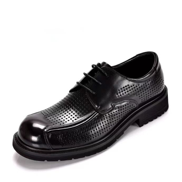 撤櫃夏季年 百麗男鞋涼鞋頭層牛皮透氣鏤空涼皮鞋正裝大頭鞋包頭