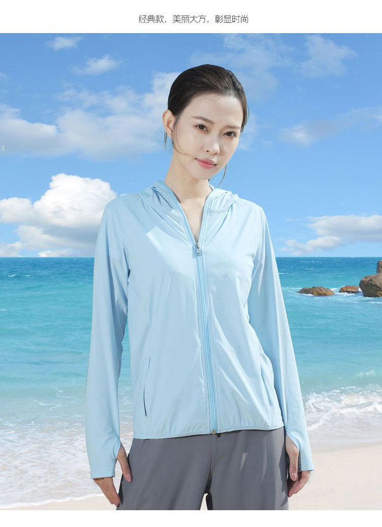 戶外大尺碼冰絲抗UV防曬服專業修身防曬衣女款2023新款女時尚夏