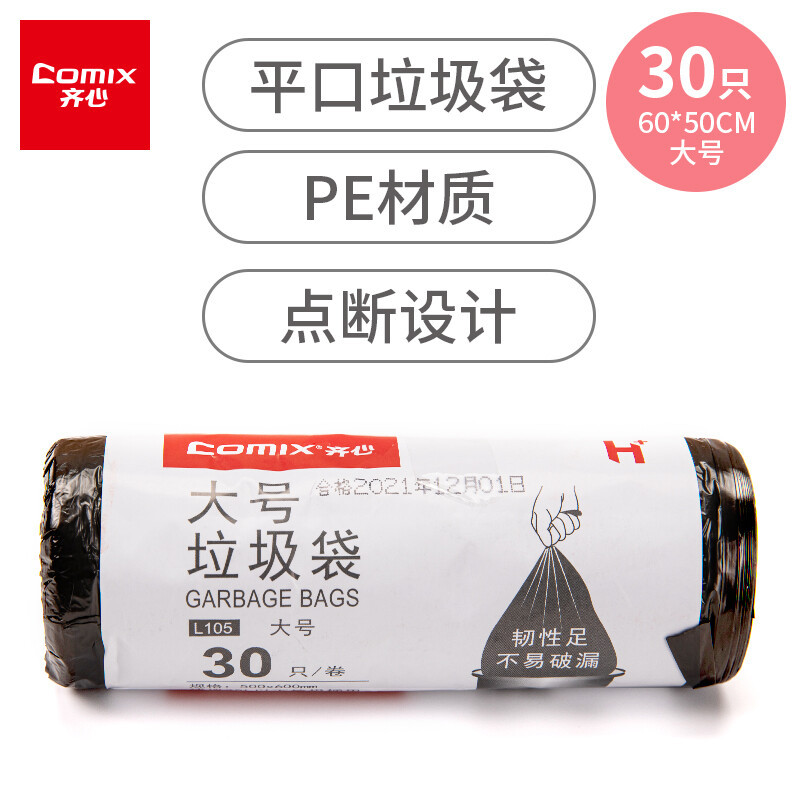 齐心商务办公室用平口式垃圾袋一次性大号加厚背心式垃圾袋批发