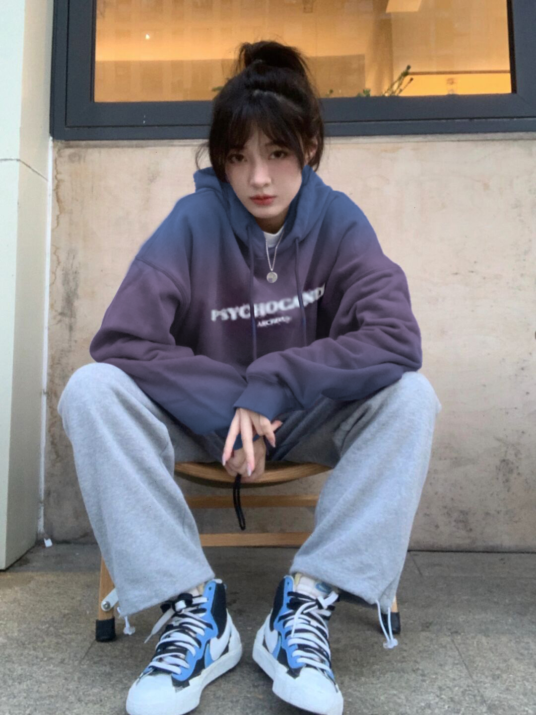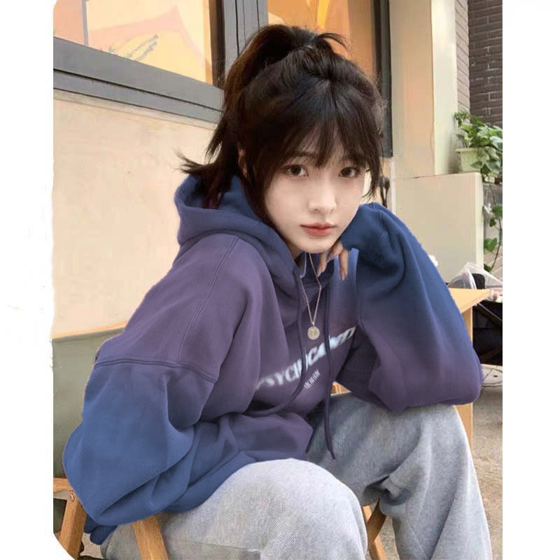 漸層紫色衛衣女春秋2023新款爆款設計感小眾oversize上衣連帽外套