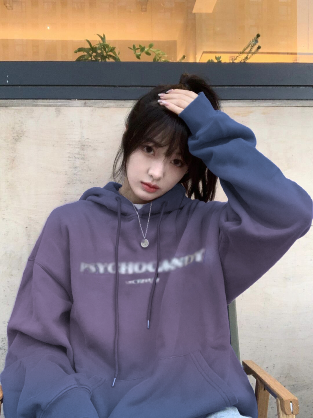 紫色卫衣外套女春秋2023新款爆款oversize美式宽松慵懒小个子上衣