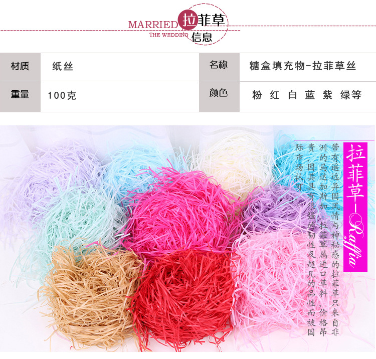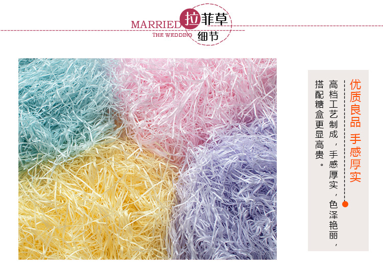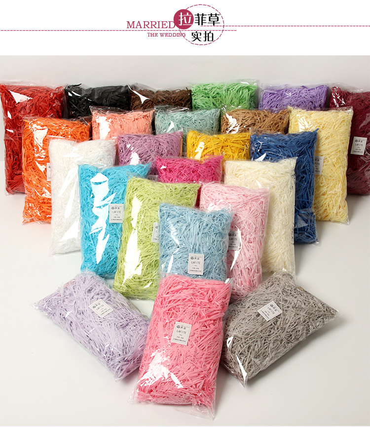 现货100g/包拉菲草大量批发喜糖盒鸡窝草 水果礼盒填充物碎纸丝