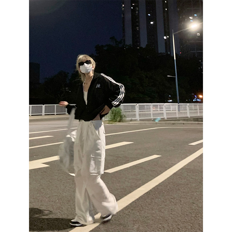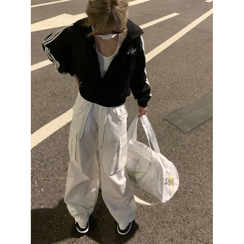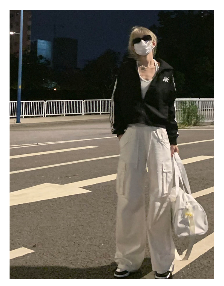 NECOYEP2023美式秋季男女復古高街白色街頭寬鬆休閒褲百搭工裝褲